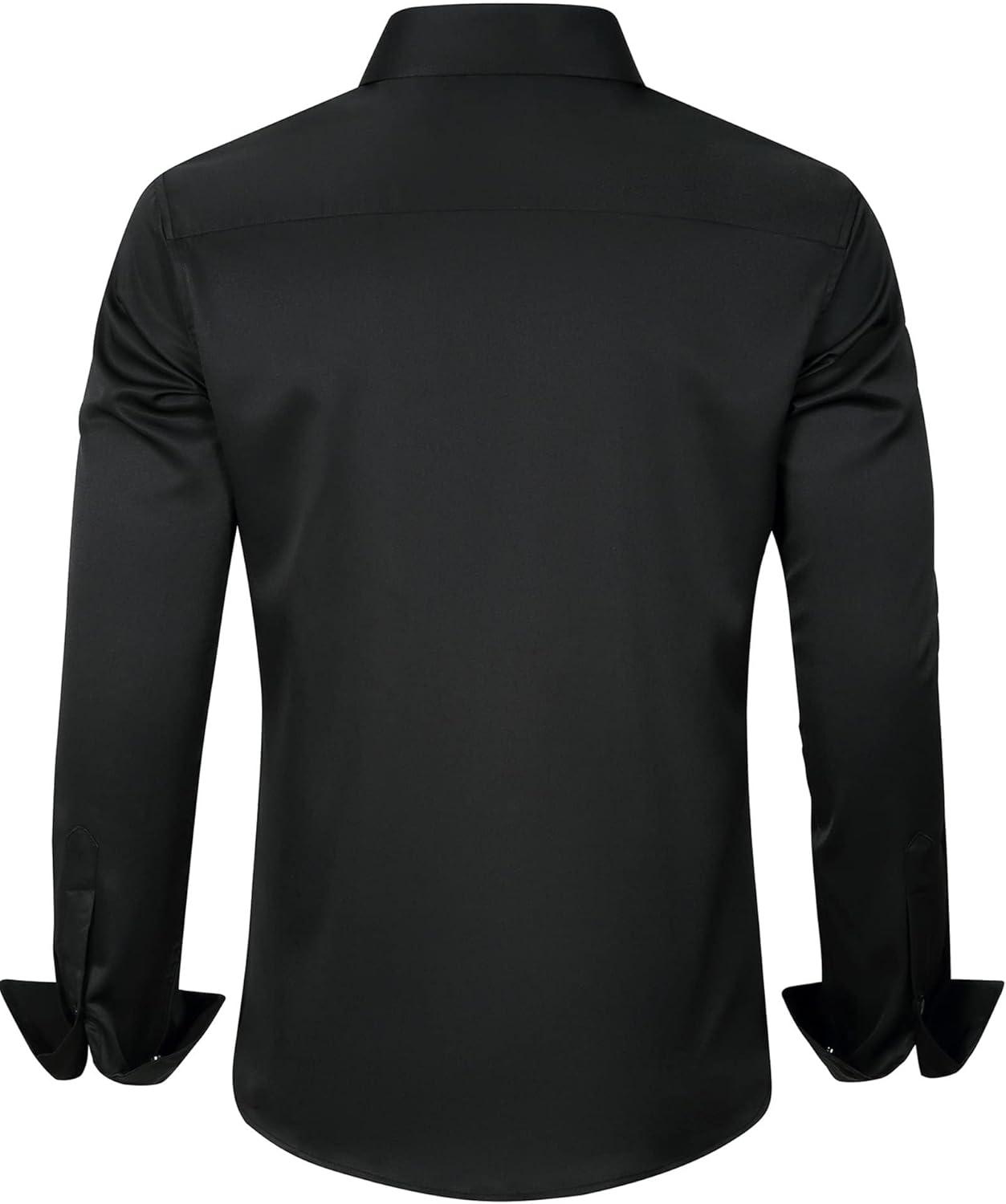 J.VER Boy's Long Sleeve Dress Shirts Solid Stretch Wrinkle-Free Shirt Kids Casual Button Down Shirts(Black)