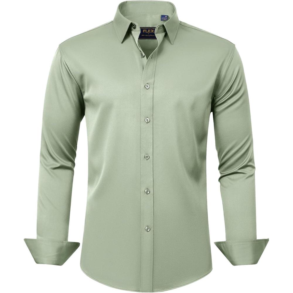 J.VER Boy’s Long Sleeve Dress Shirts Solid Stretch Wrinkle-Free Shirt Kids Casual Button Down Shirts(Sage Green)