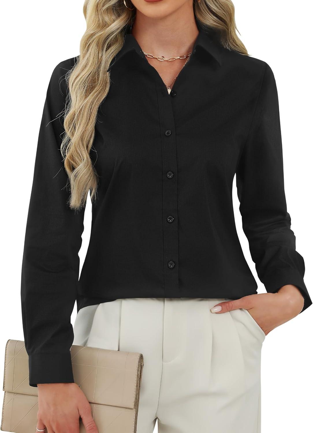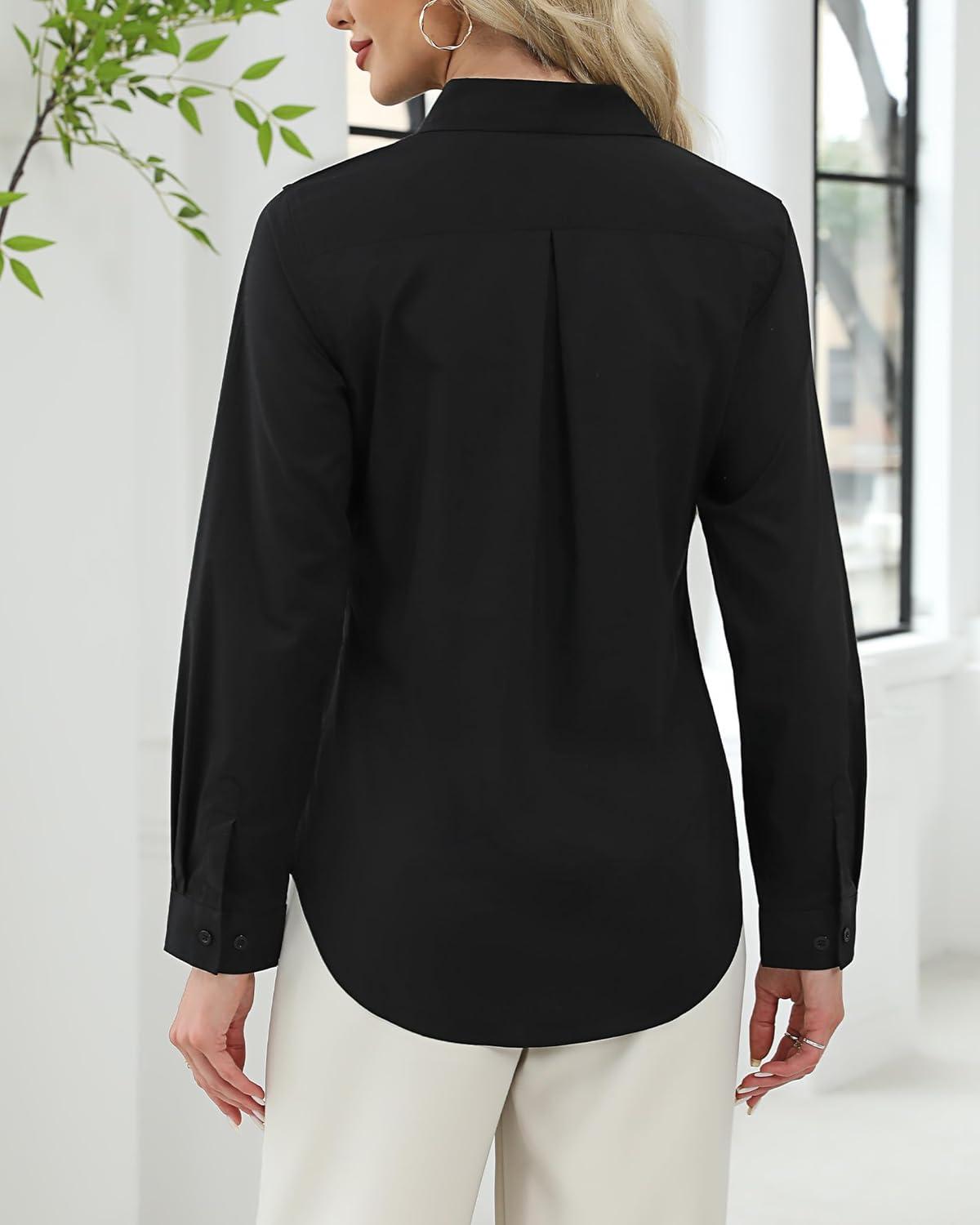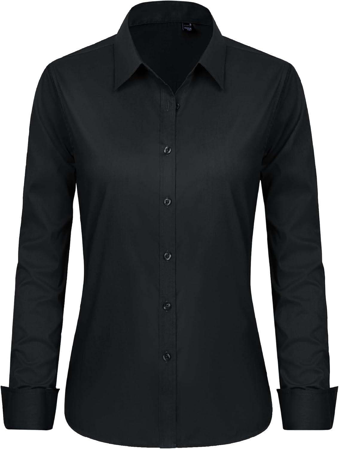 J.VER Button Down Shirts for Women Stretch Collared Cotton Long Sleeve Dress Shirt Business Casual Blouse for Work(Black)