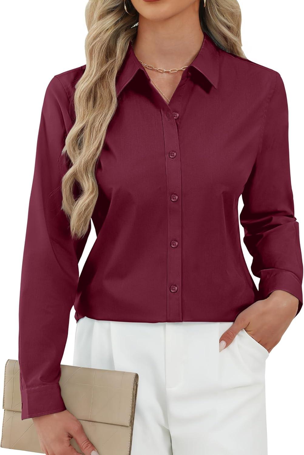 Get the J.VER Button Down Shirts for Women Stretch Collared Cotton Long Sleeve Dress Shirt Business Casual Blouse for Work(Burgundy) you’ve been eyeing at a discounted price during our seasonal sale event.