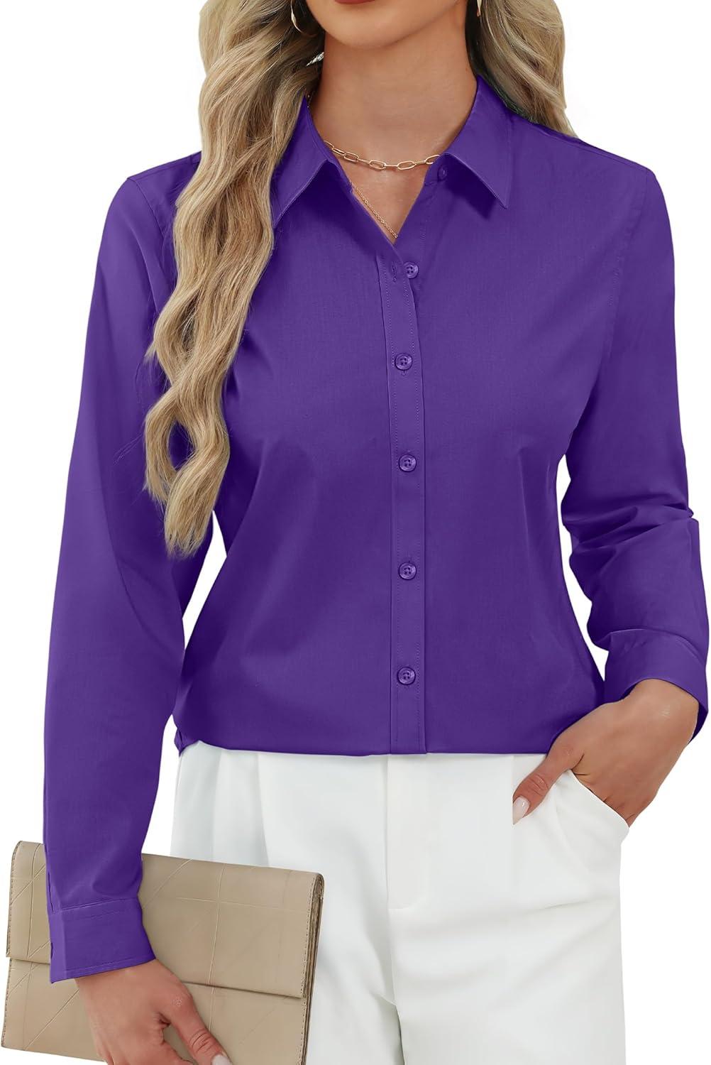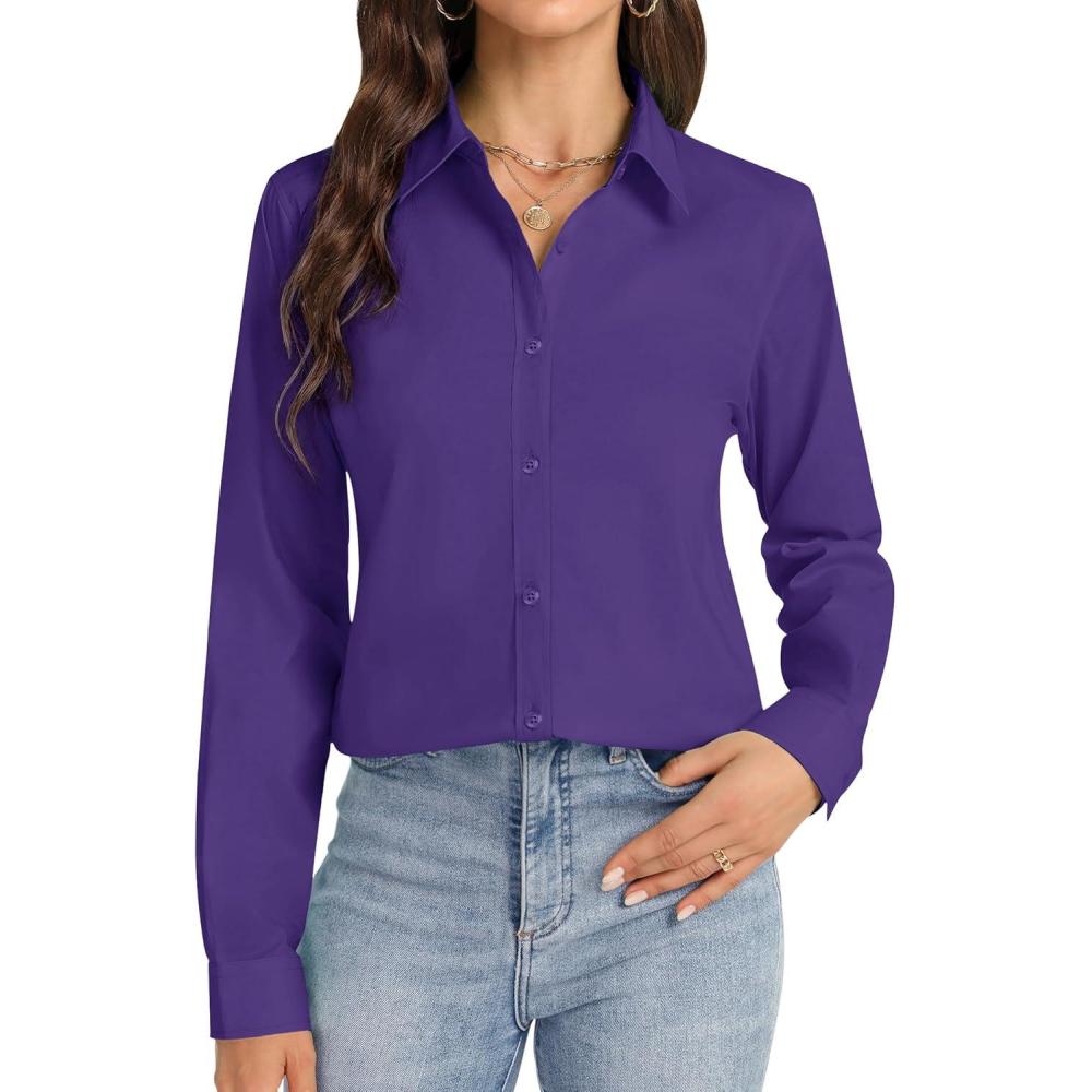 Score big savings on J.VER Button Down Shirts for Women Stretch Collared Cotton Long Sleeve Dress Shirt Business Casual Blouse for Work(Dark Purple) during our back-to-school sale. Limited quantities available.