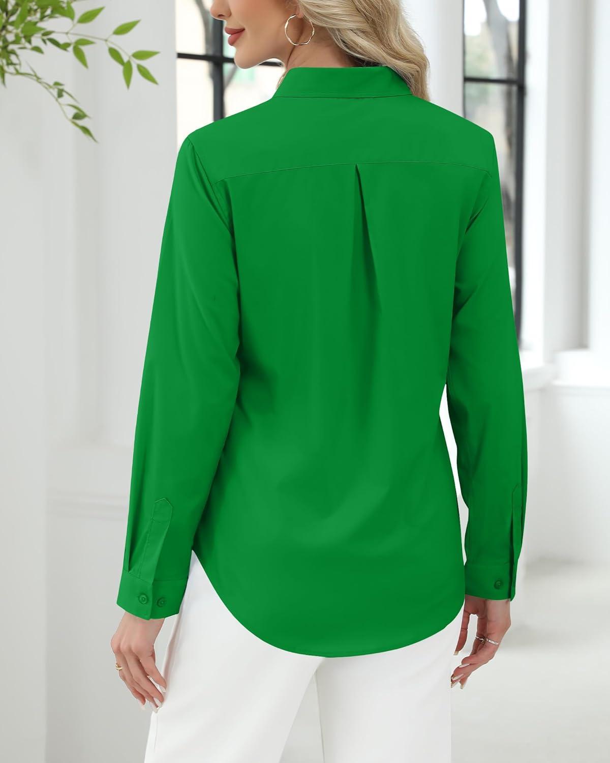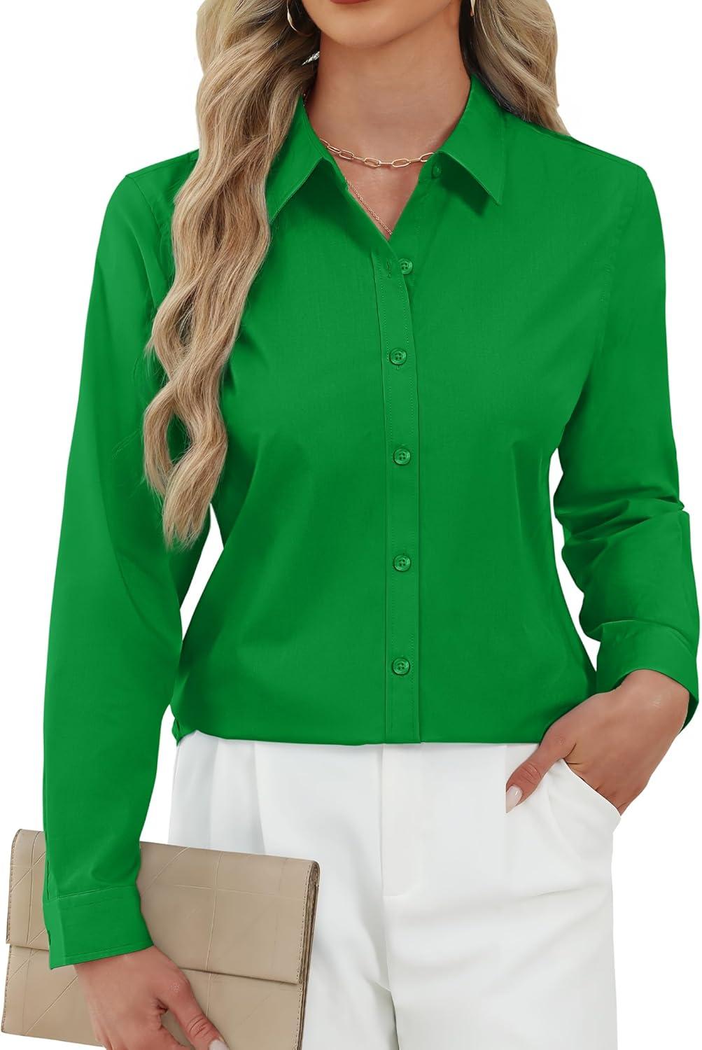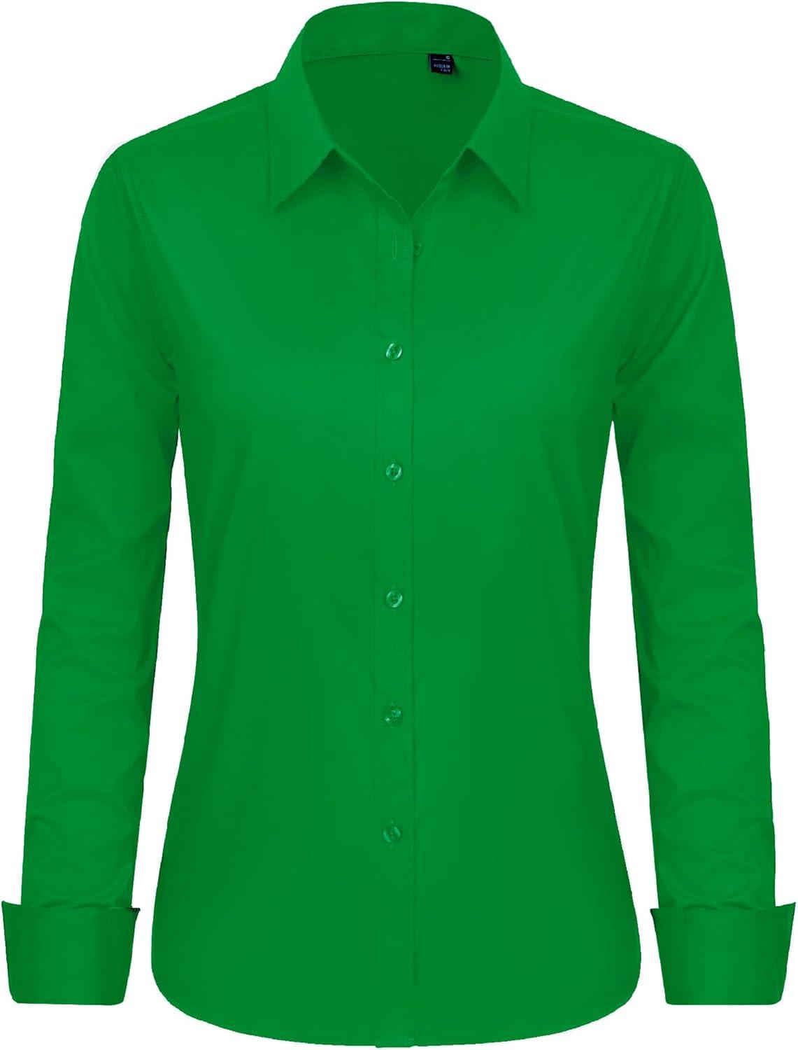 J.VER Button Down Shirts for Women Stretch Collared Cotton Long Sleeve Dress Shirt Business Casual Blouse for Work(Dark Green)