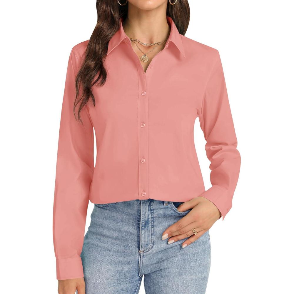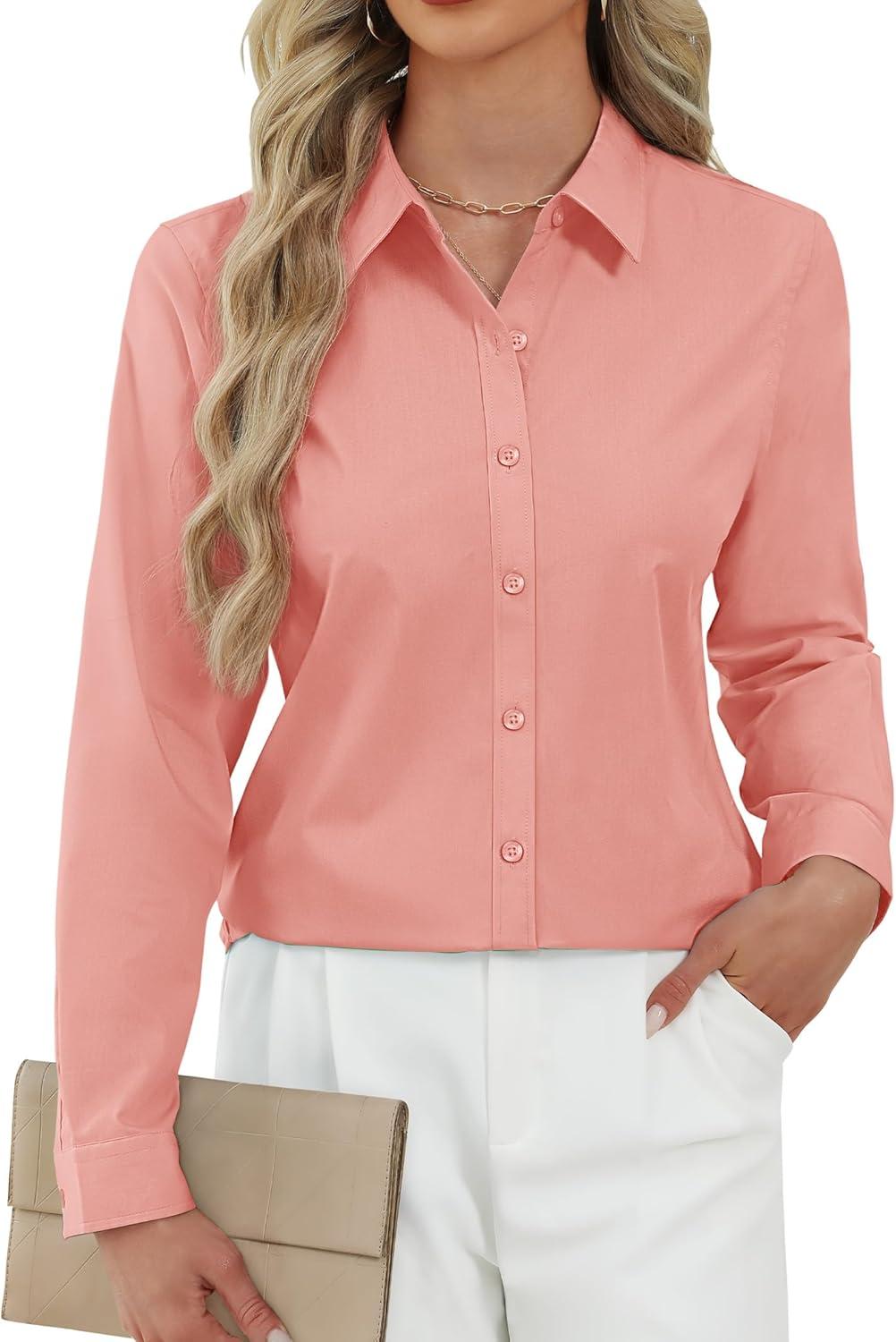 Save big on J.VER Button Down Shirts for Women Stretch Collared Cotton Long Sleeve Dress Shirt Business Casual Blouse for Work(Peach) and accessories during our BOGO sale. Buy one, get one 50% off!