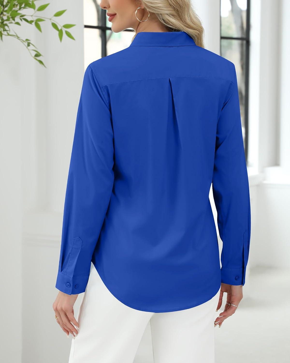 J.VER Button Down Shirts for Women Stretch Collared Cotton Long Sleeve Dress Shirt Business Casual Blouse for Work(Royal Blue)