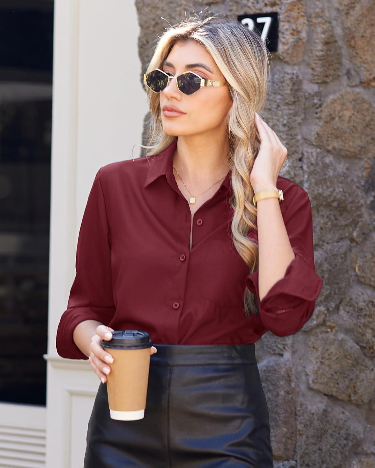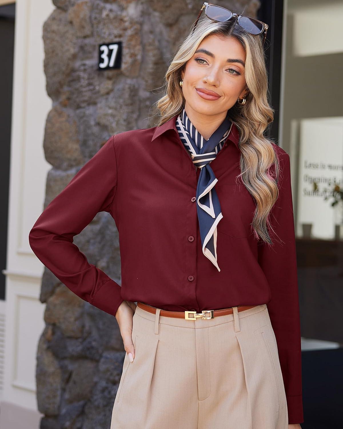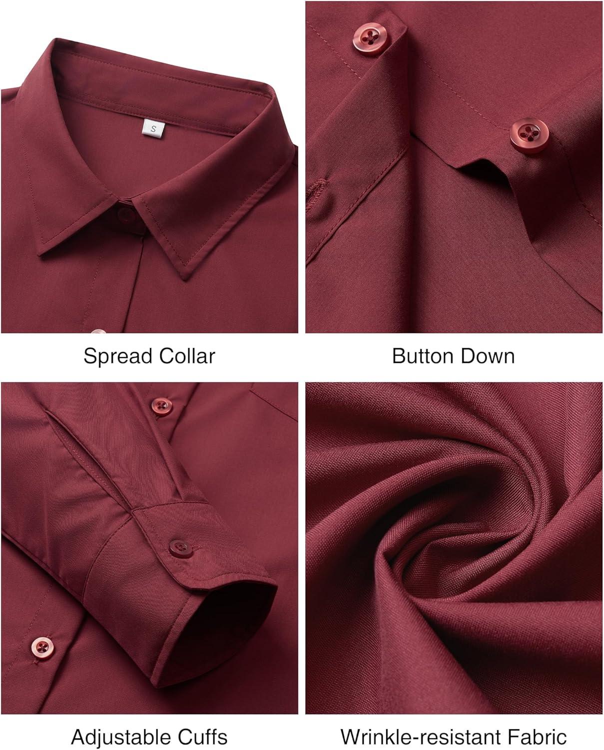 J.VER Button Down Shirts for Women Wrinkle Free Long Sleeve Dress Shirt Business Casual Work Blouse with Pocket(Burgundy)
