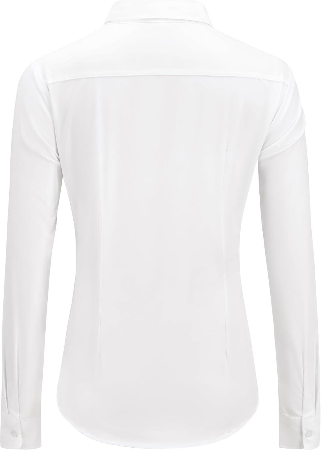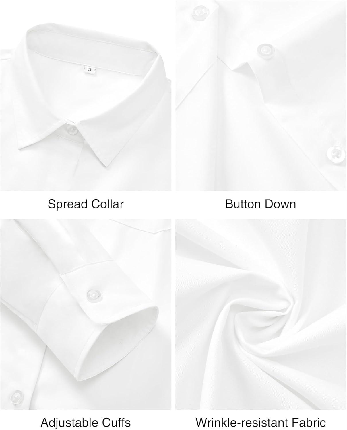 J.VER Button Down Shirts for Women Wrinkle Free Long Sleeve Dress Shirt Business Casual Work Blouse with Pocket(White)