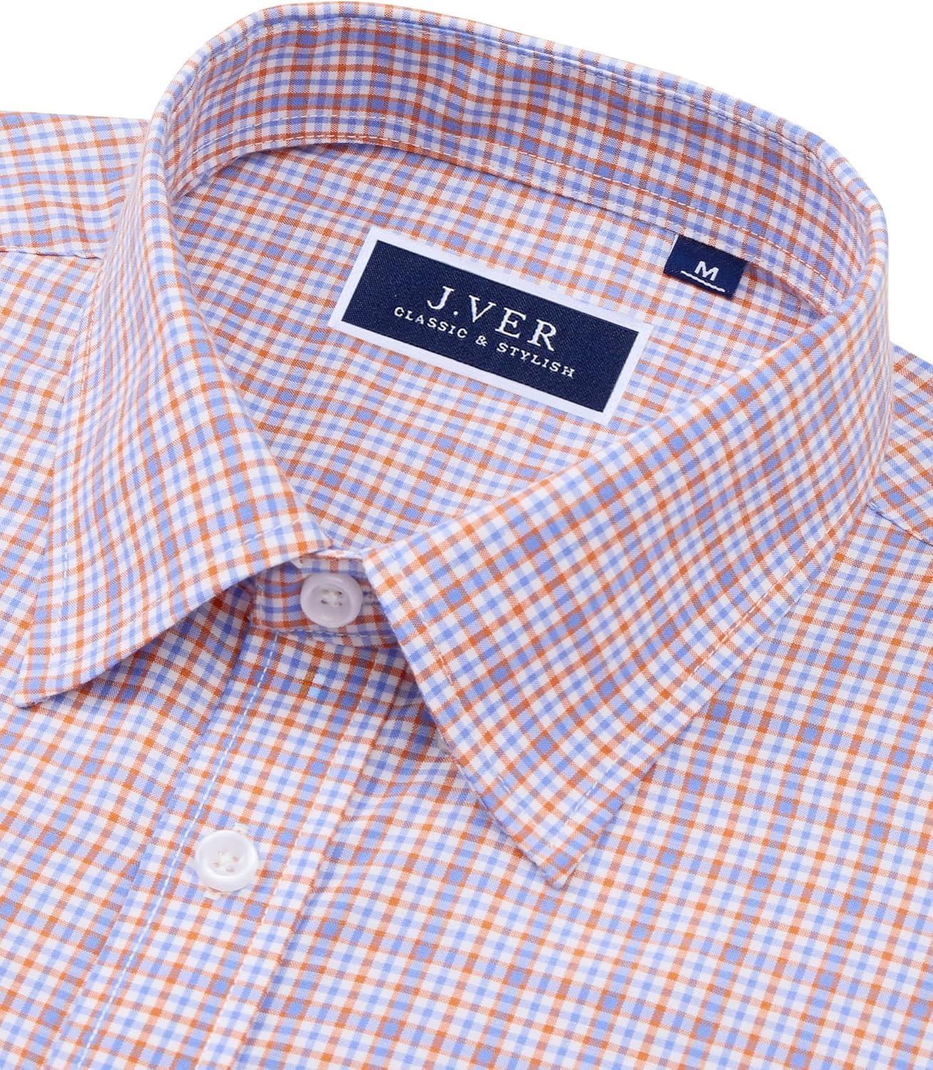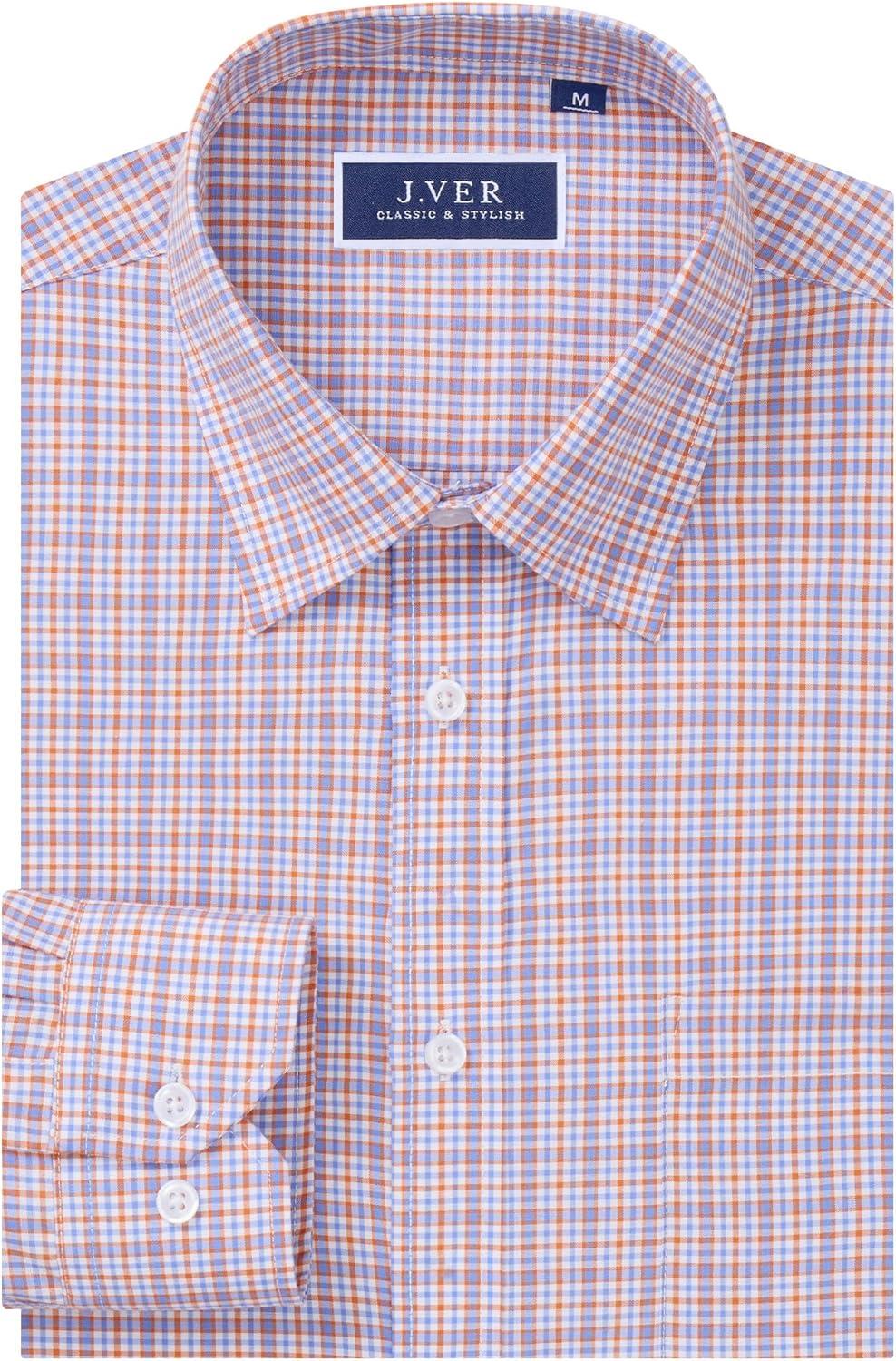 J.VER Dress Shirts for Men Cotton Long Sleeve Button Down Shirt Business Casual Classic Plaid Tops with Pocket(Blue Orange Plaid)