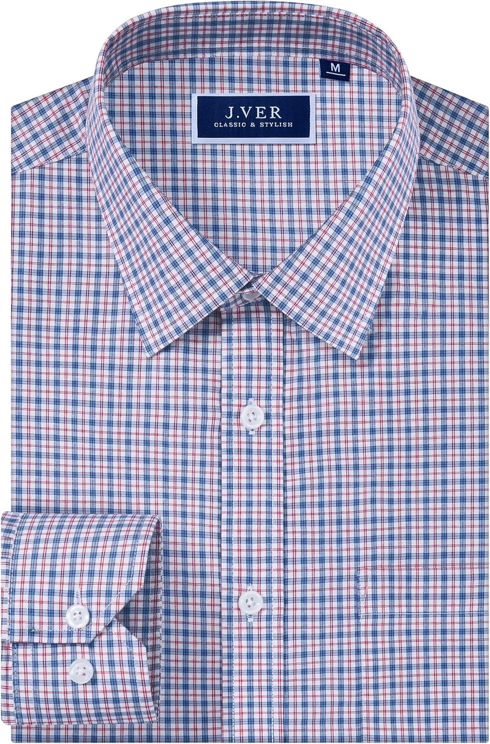 Get up to 50% off on J.VER Dress Shirts for Men Cotton Long Sleeve Button Down Shirt Business Casual Classic Plaid Tops with Pocket(Blue Red Plaid) styles during our spring sale event.