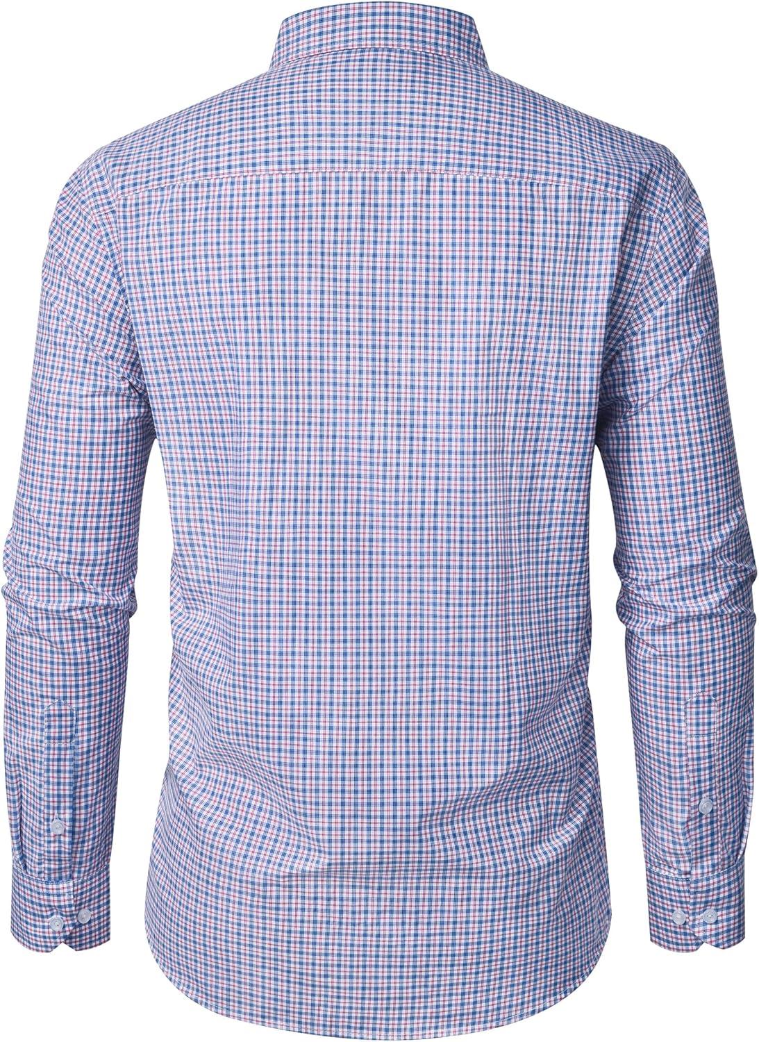 J.VER Dress Shirts for Men Cotton Long Sleeve Button Down Shirt Business Casual Classic Plaid Tops with Pocket(Blue Red Gingham)