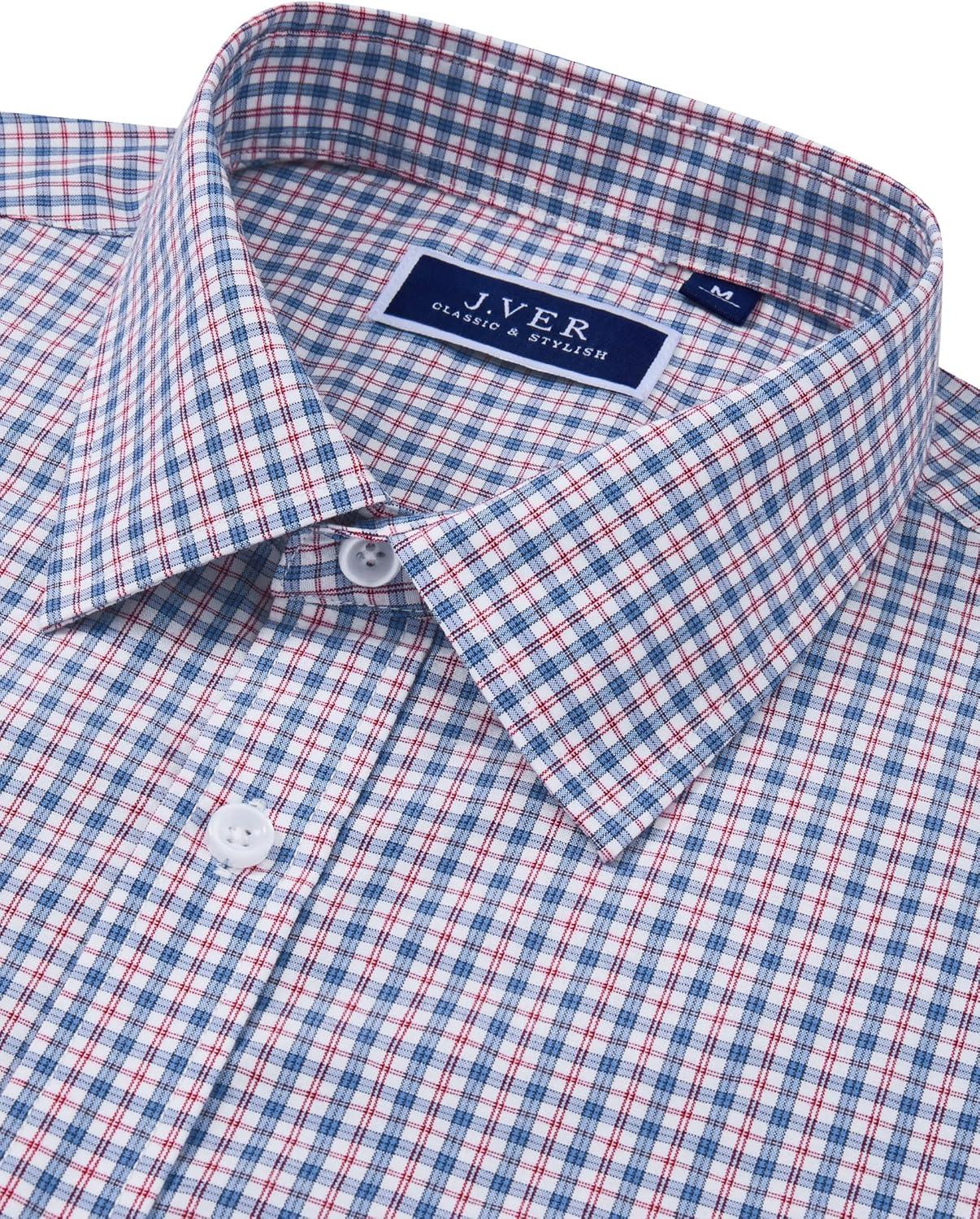 J.VER Dress Shirts for Men Cotton Long Sleeve Button Down Shirt Business Casual Classic Plaid Tops with Pocket(Blue Red Plaid)