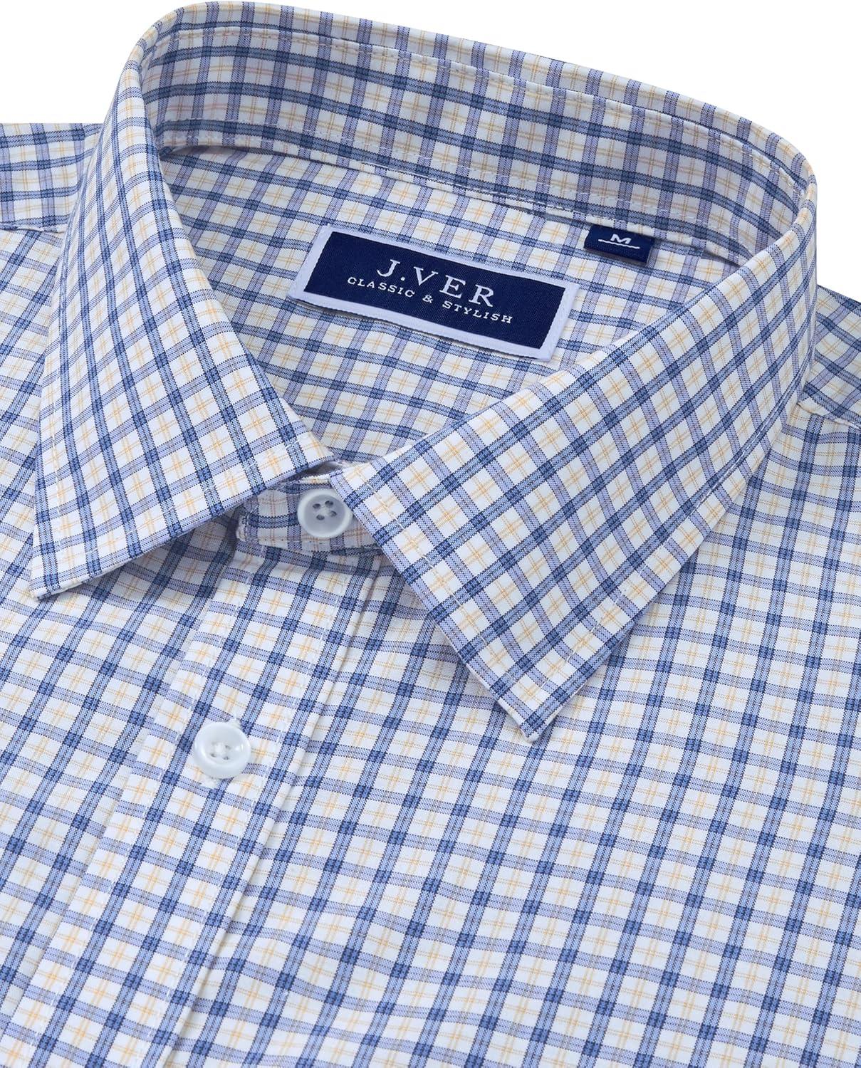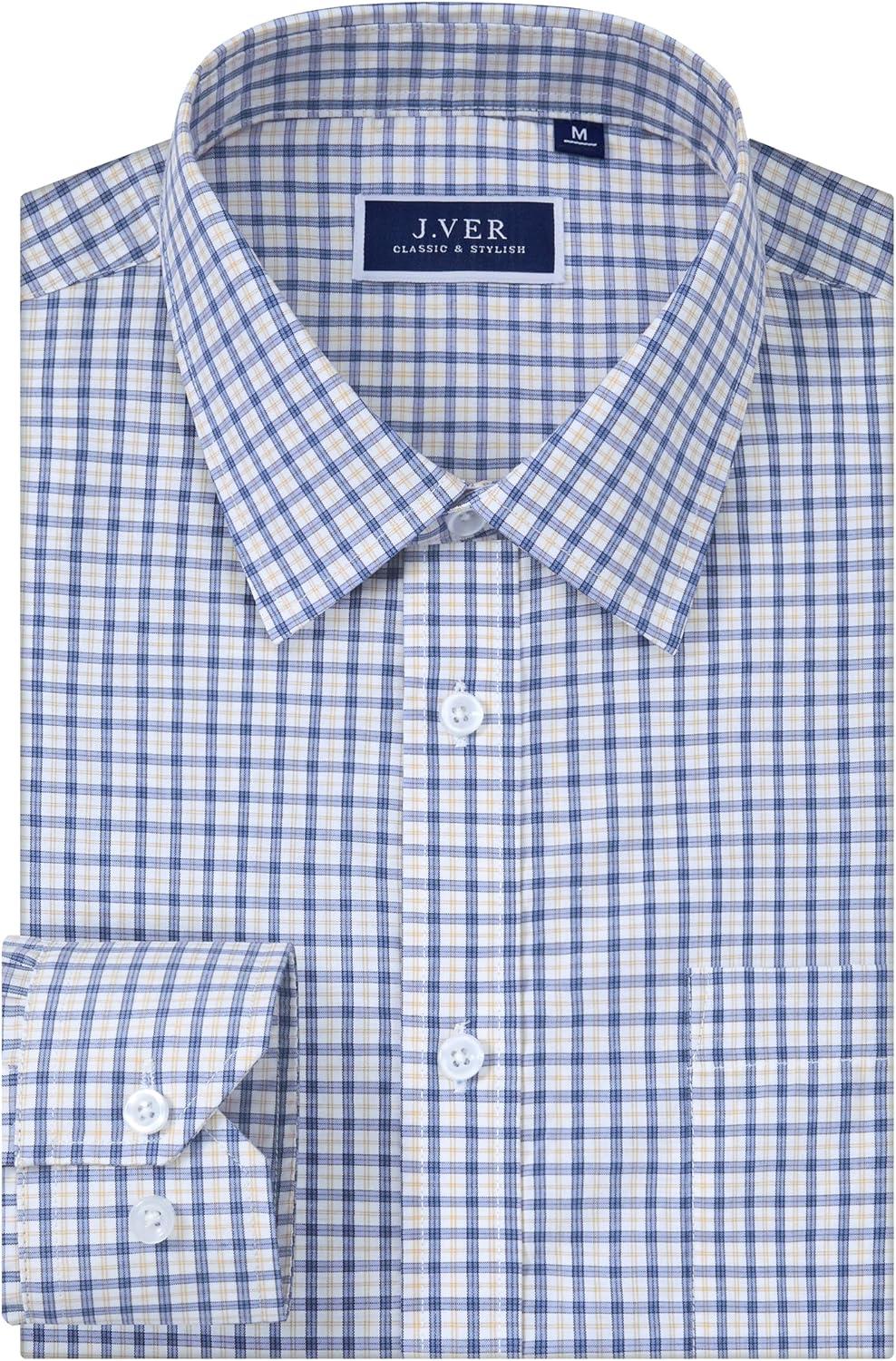 J.VER Dress Shirts for Men Cotton Long Sleeve Button Down Shirt Business Casual Classic Plaid Tops with Pocket(Blue Yellow Plaid)