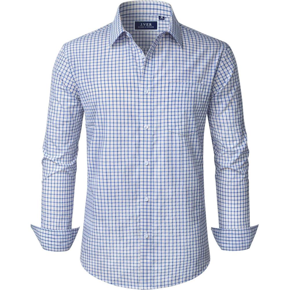 J.VER Dress Shirts for Men Cotton Long Sleeve Button Down Shirt Business Casual Classic Plaid Tops with Pocket(Grey Gingham)