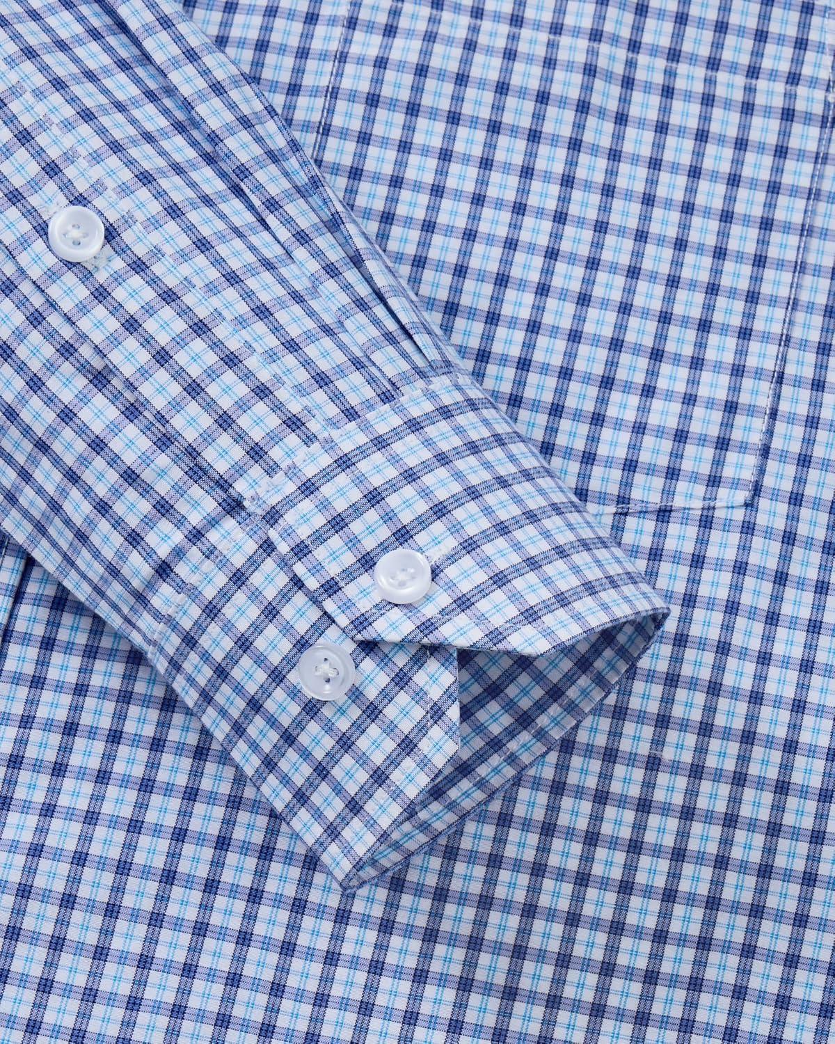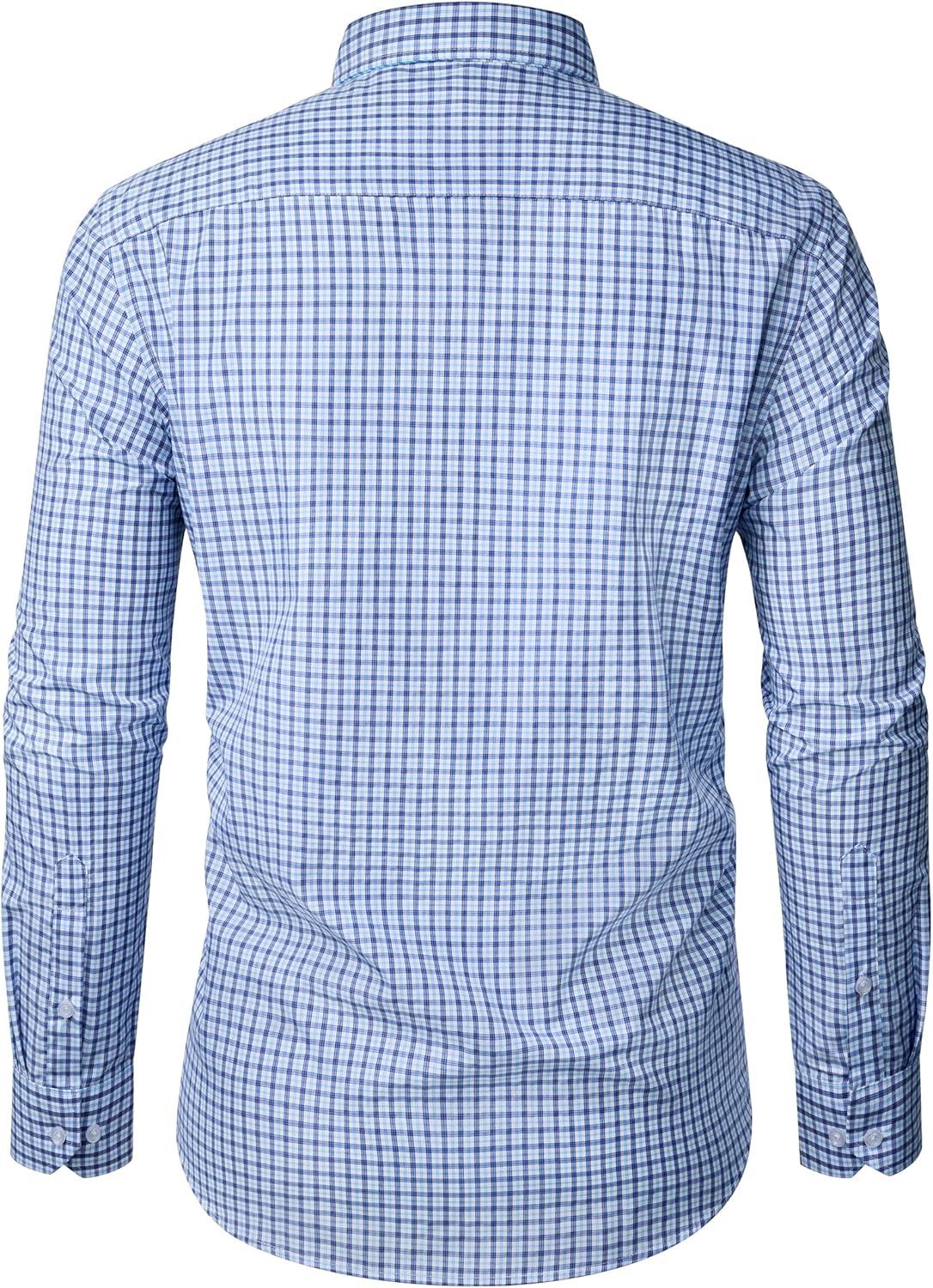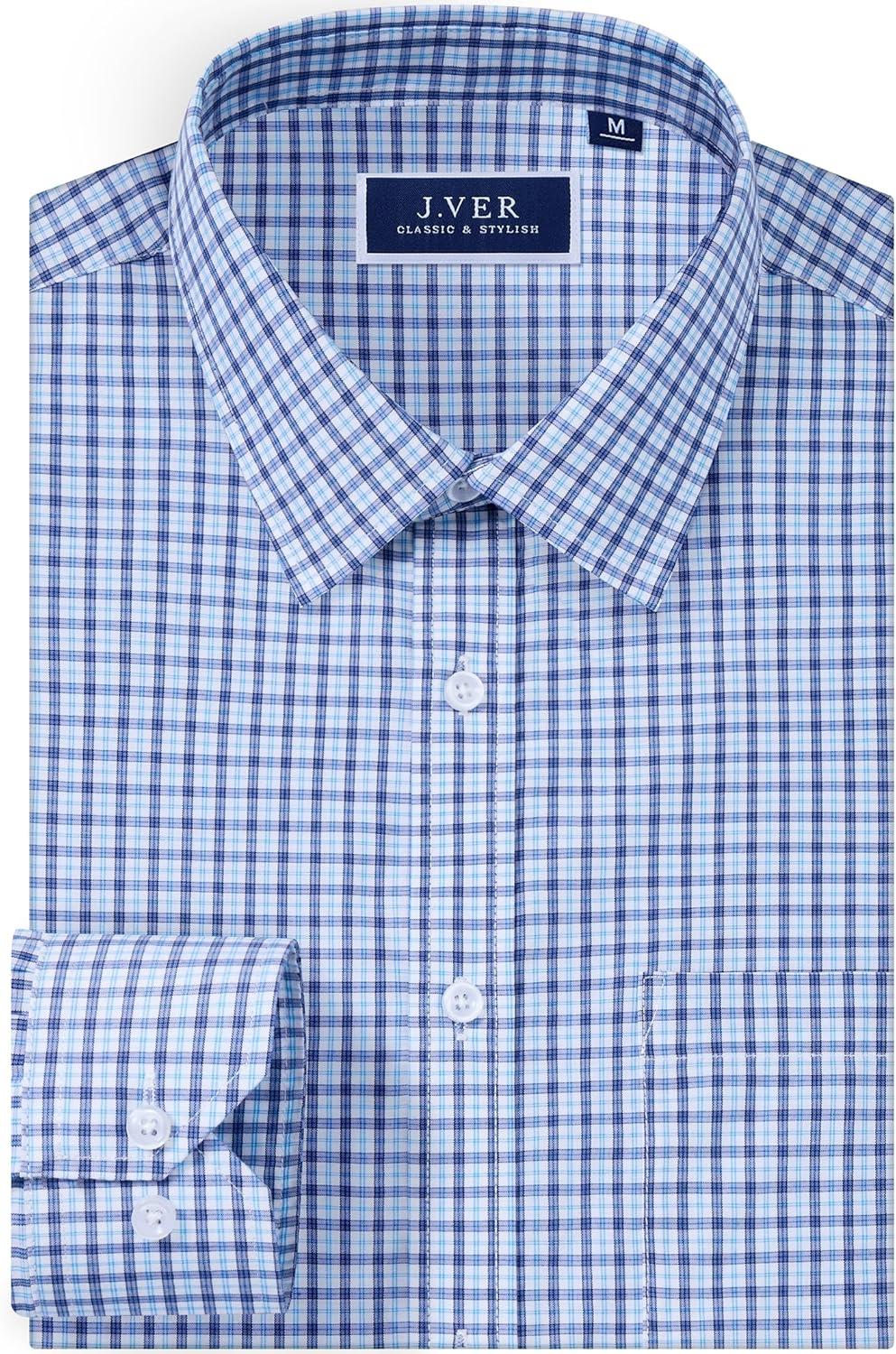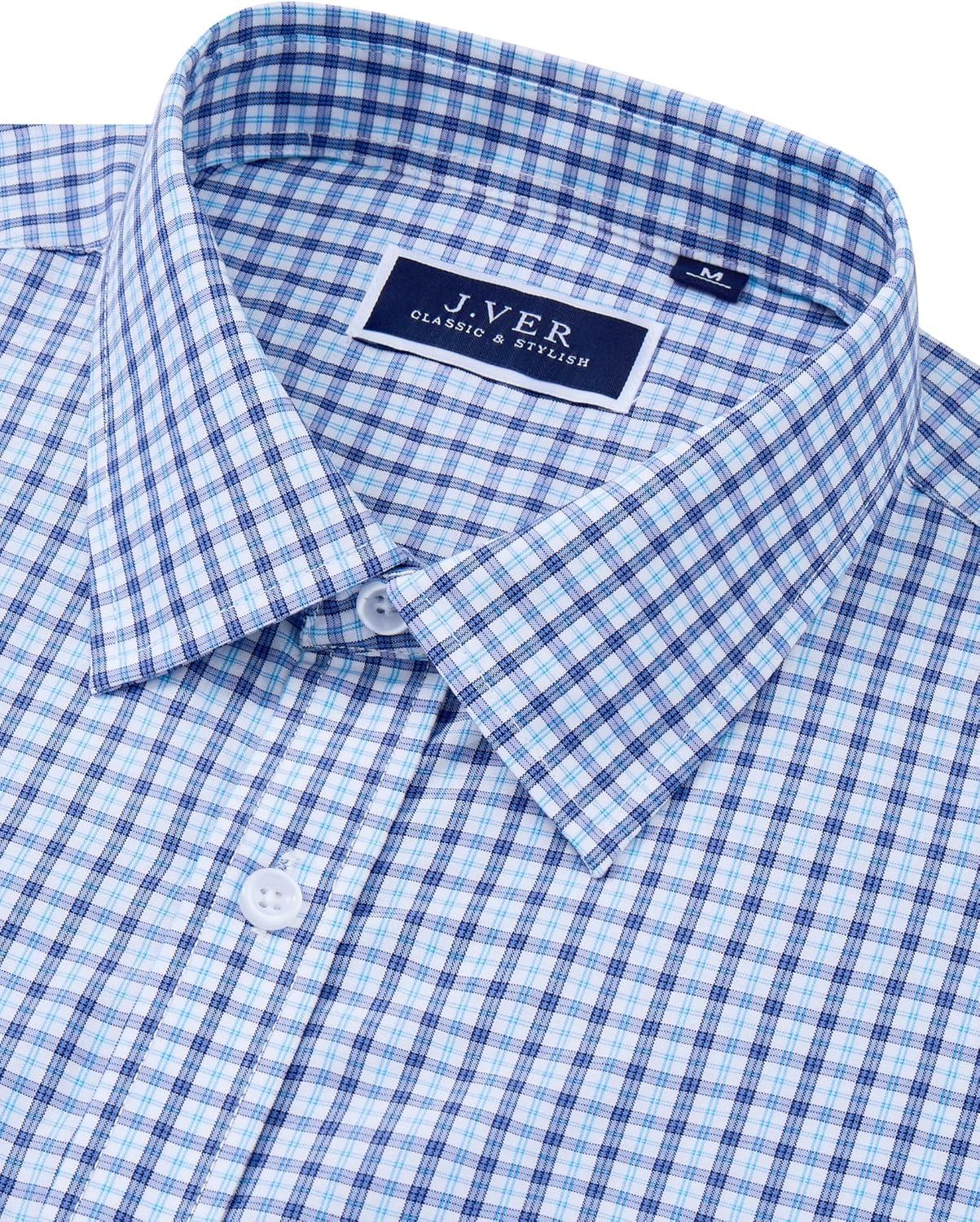 J.VER Dress Shirts for Men Cotton Long Sleeve Button Down Shirt Business Casual Classic Plaid Tops with Pocket(Light Blue Plaid)