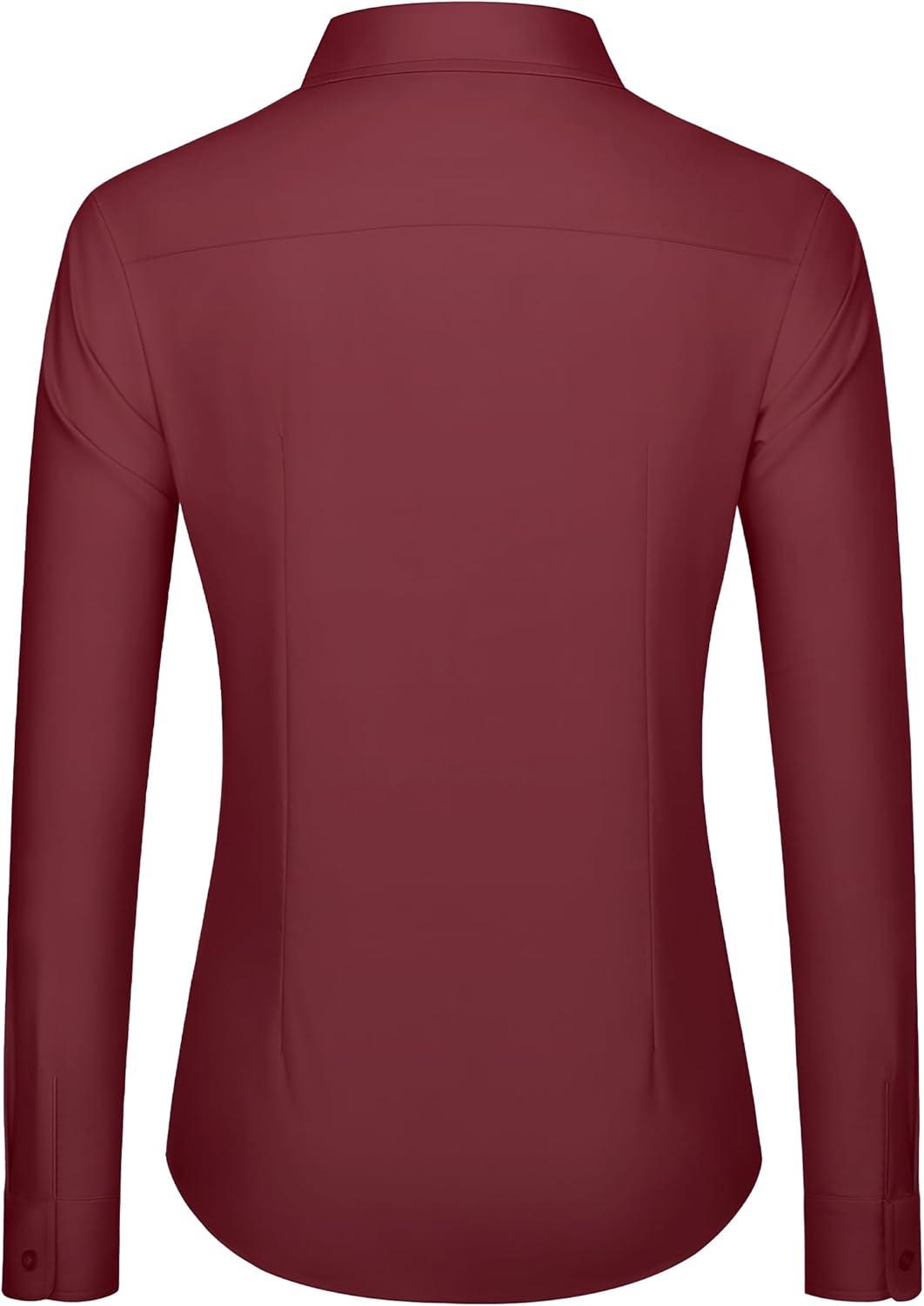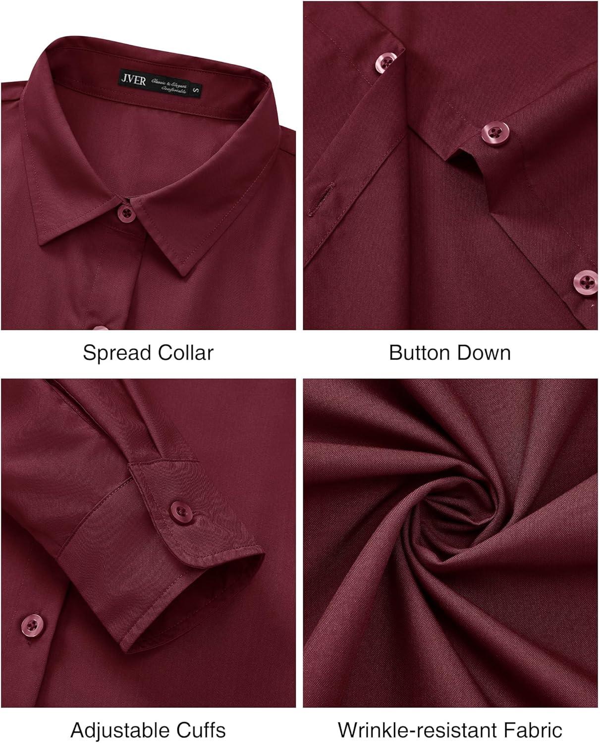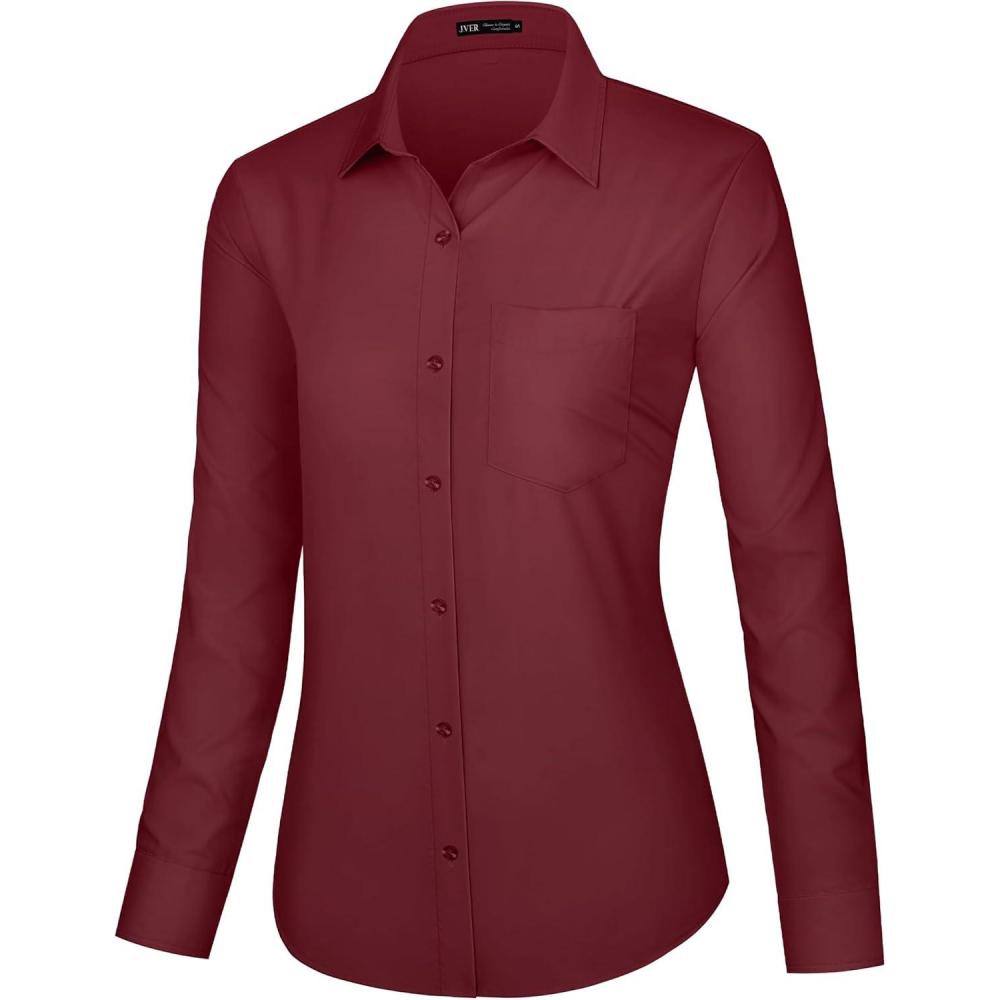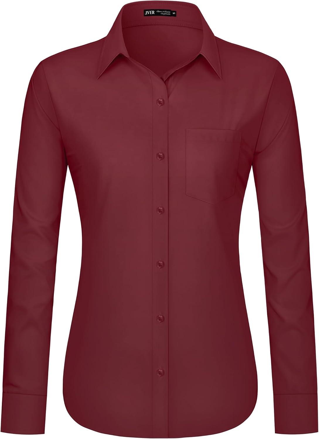 J.VER Dress Shirts for Women Button Down Wrinkle Free Shirt Business Casual Long Sleeve Work Blouse with Pocket(Burgundy)