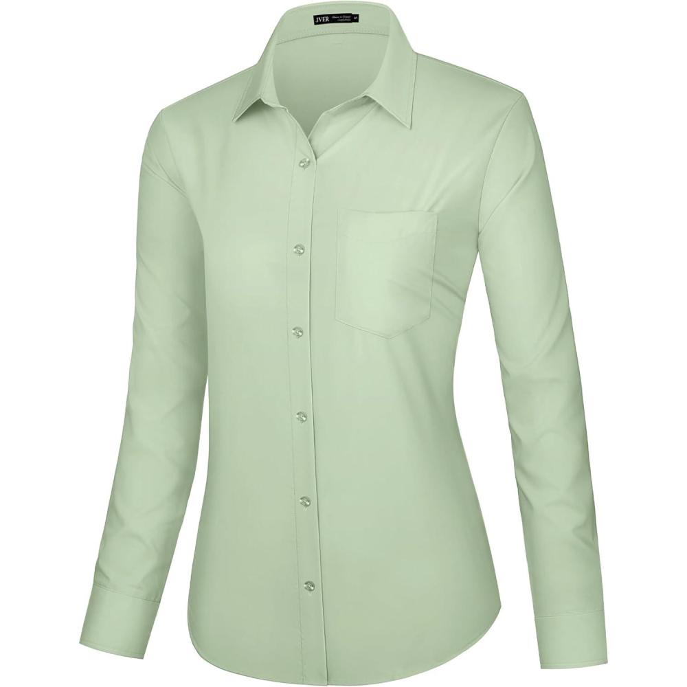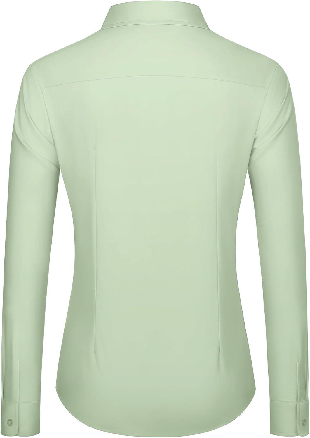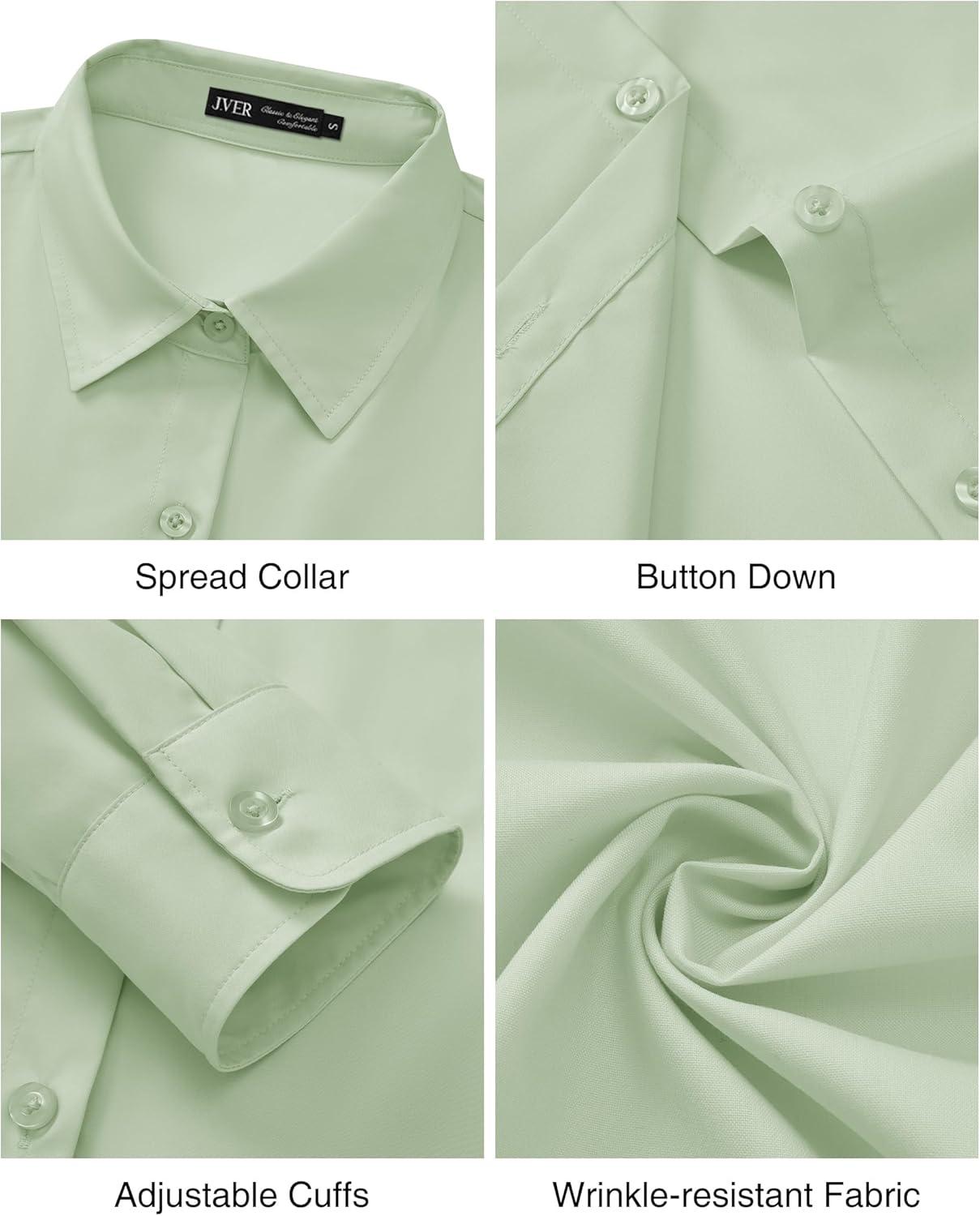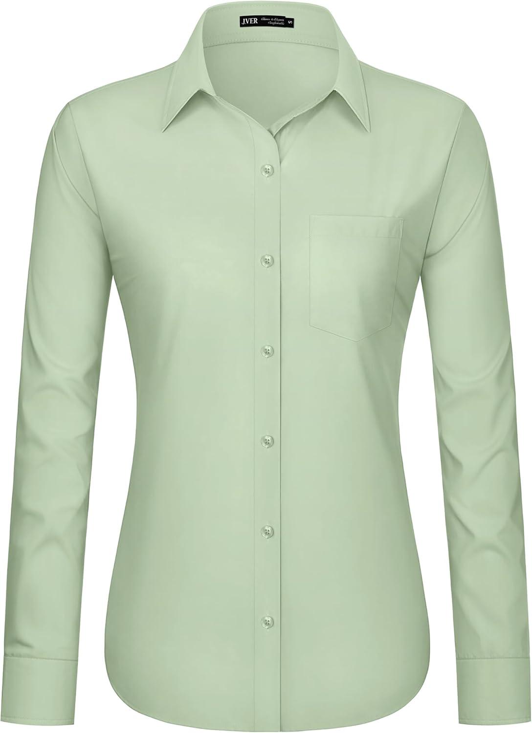 J.VER Dress Shirts for Women Button Down Wrinkle Free Shirt Business Casual Long Sleeve Work Blouse with Pocket(Light Green)