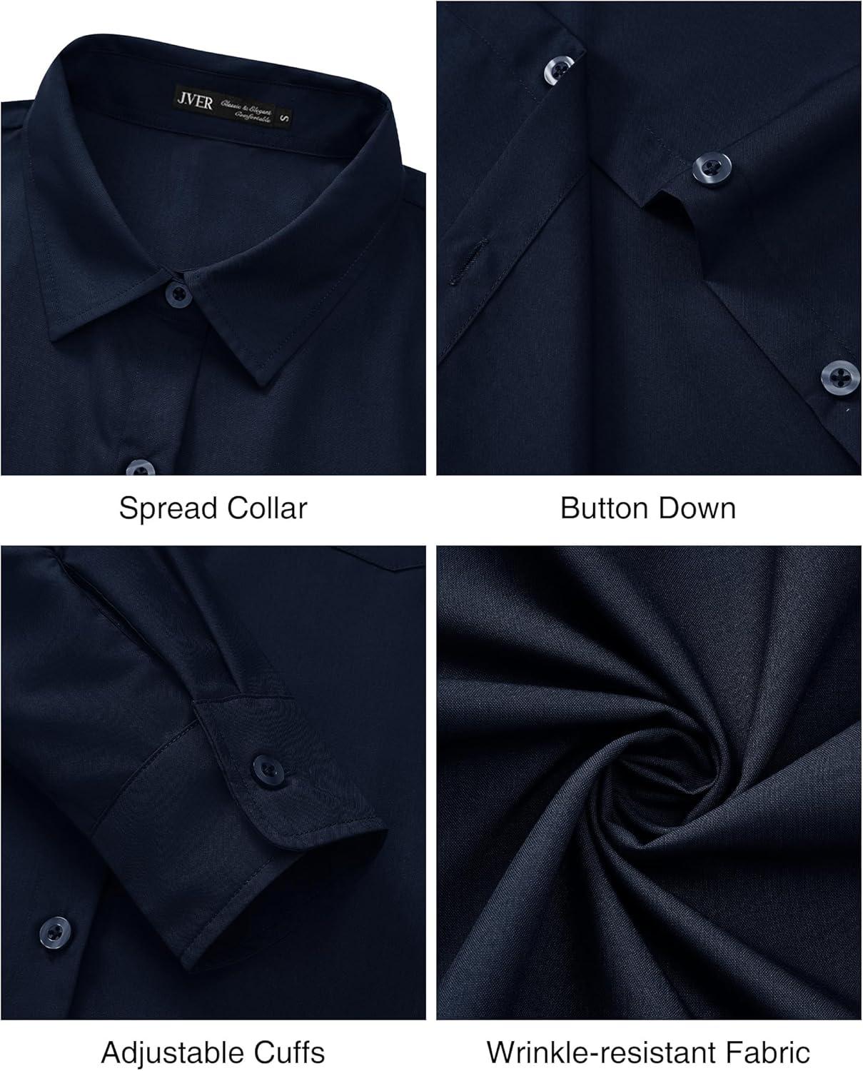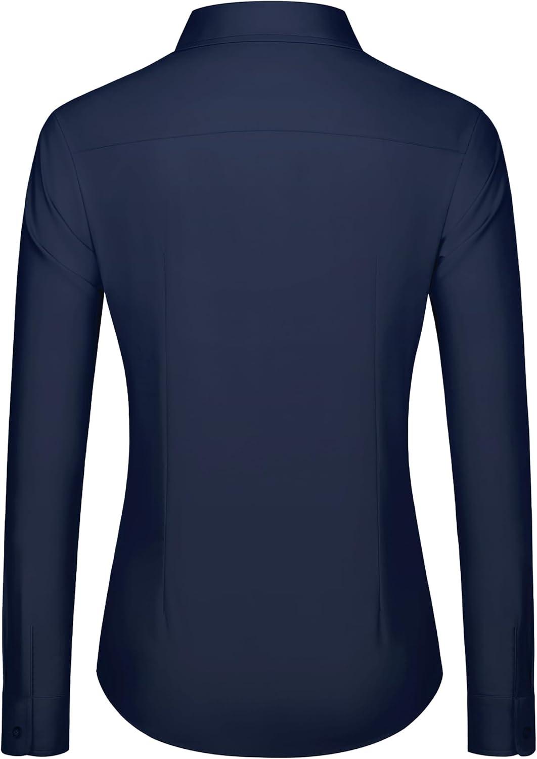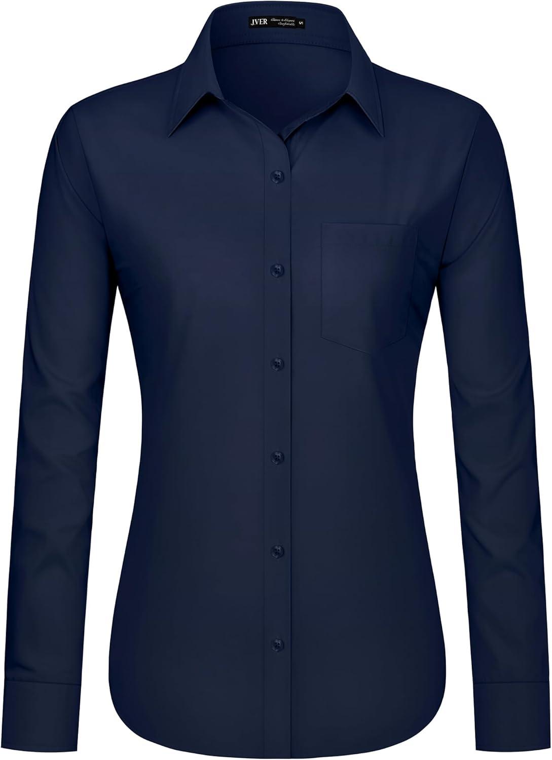 J.VER Dress Shirts for Women Button Down Wrinkle Free Shirt Business Casual Long Sleeve Work Blouse with Pocket(Navy Blue)
