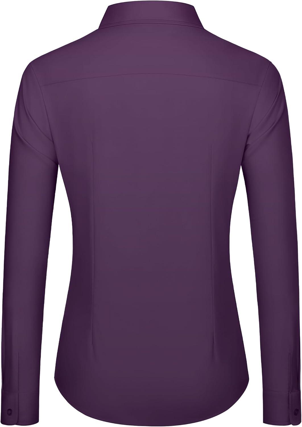 J.VER Dress Shirts for Women Button Down Wrinkle Free Shirt Business Casual Long Sleeve Work Blouse with Pocket(Purple)