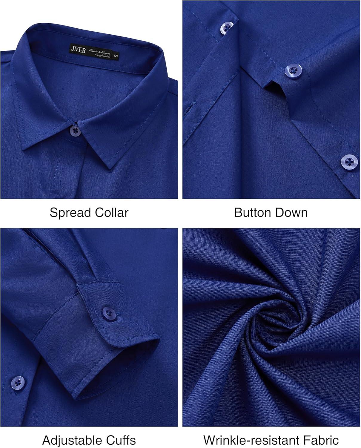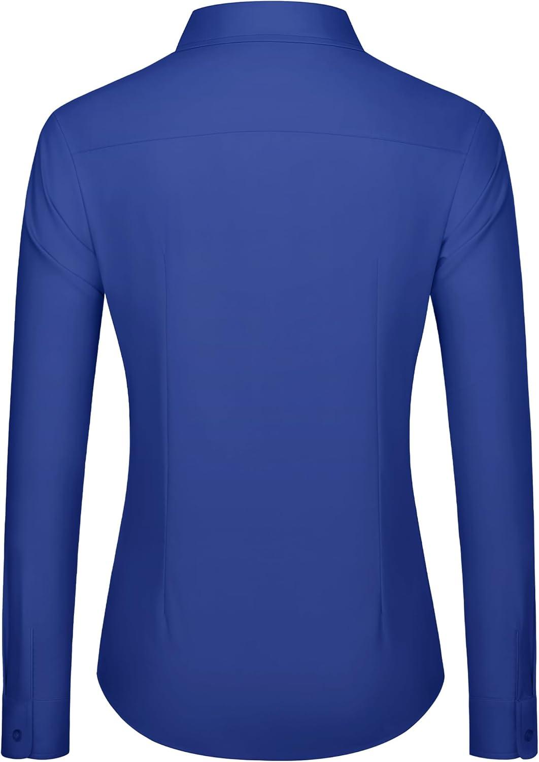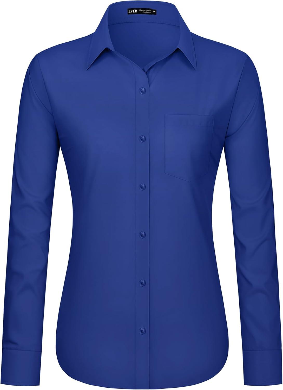 J.VER Dress Shirts for Women Button Down Wrinkle Free Shirt Business Casual Long Sleeve Work Blouse with Pocket(Royal Blue)