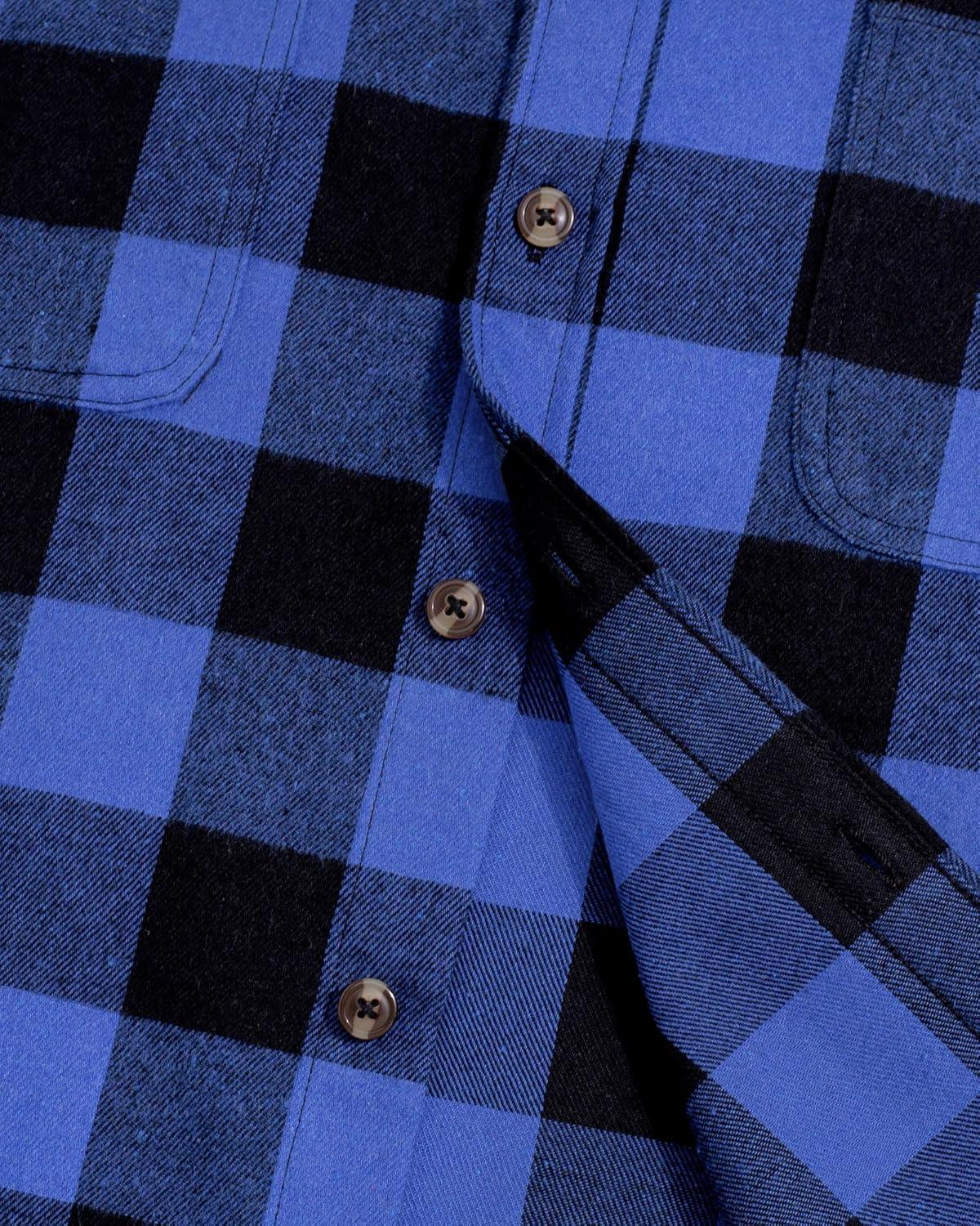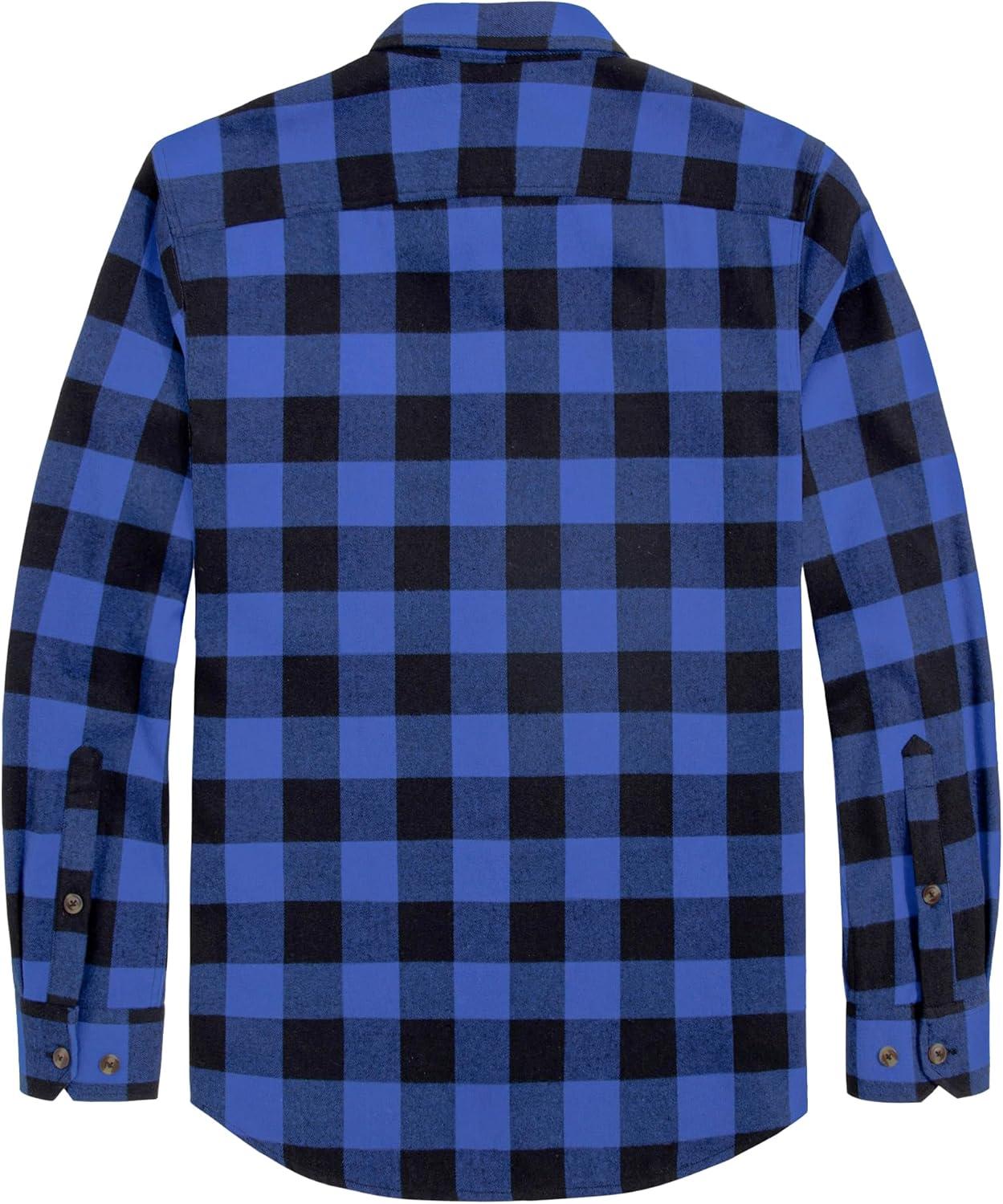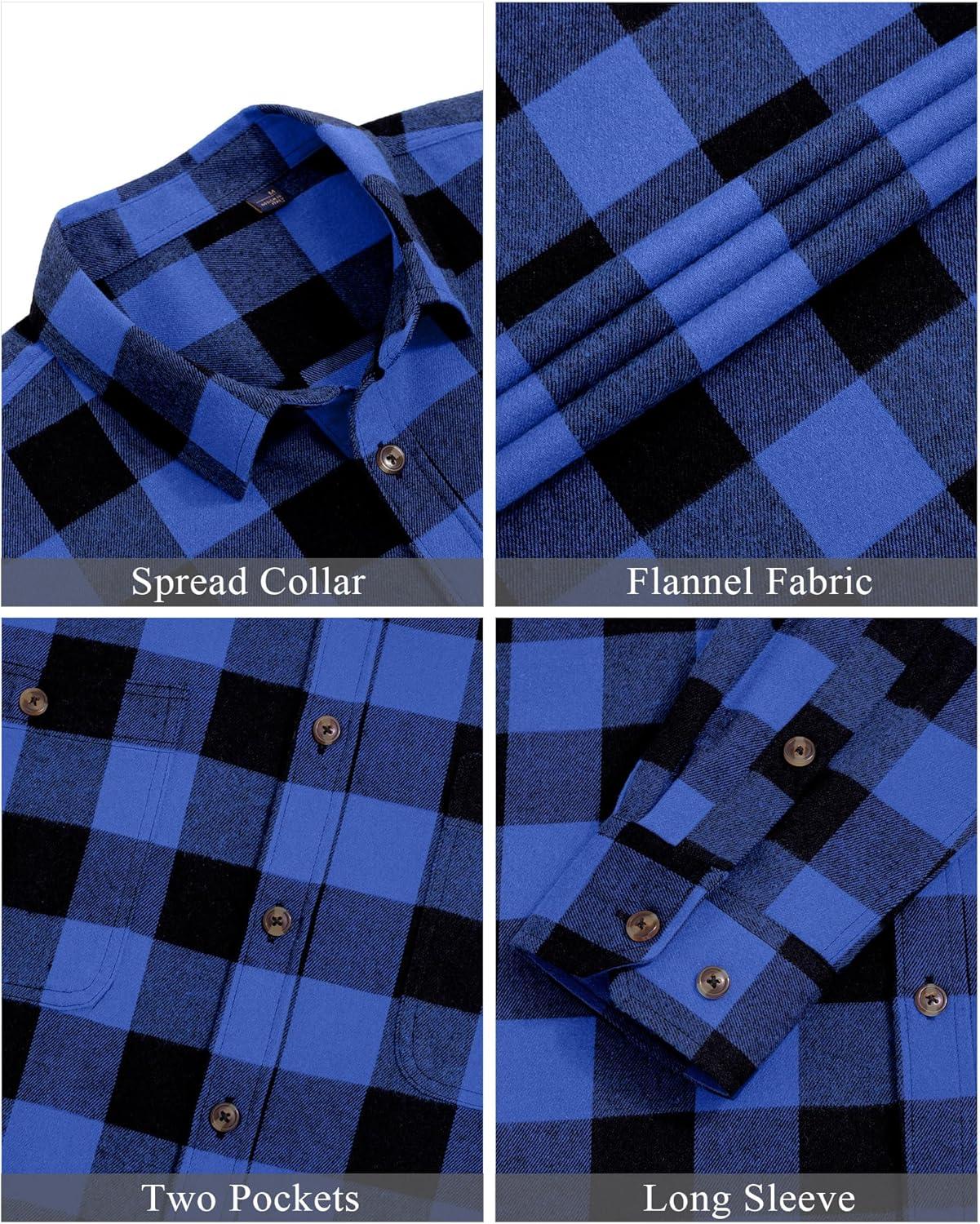 J.VER Flannel Shirt for Men Plaid Long Sleeve Casual Button Down Shirts Regular Fit Cotton Buffalo Checkered Top with Pockets(Blue)