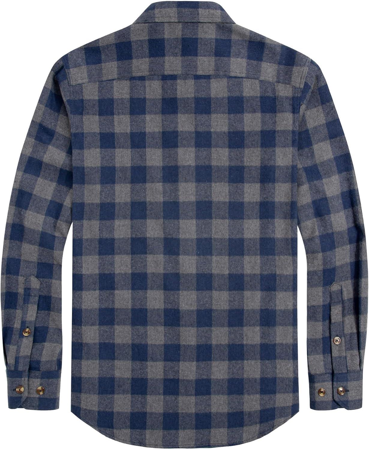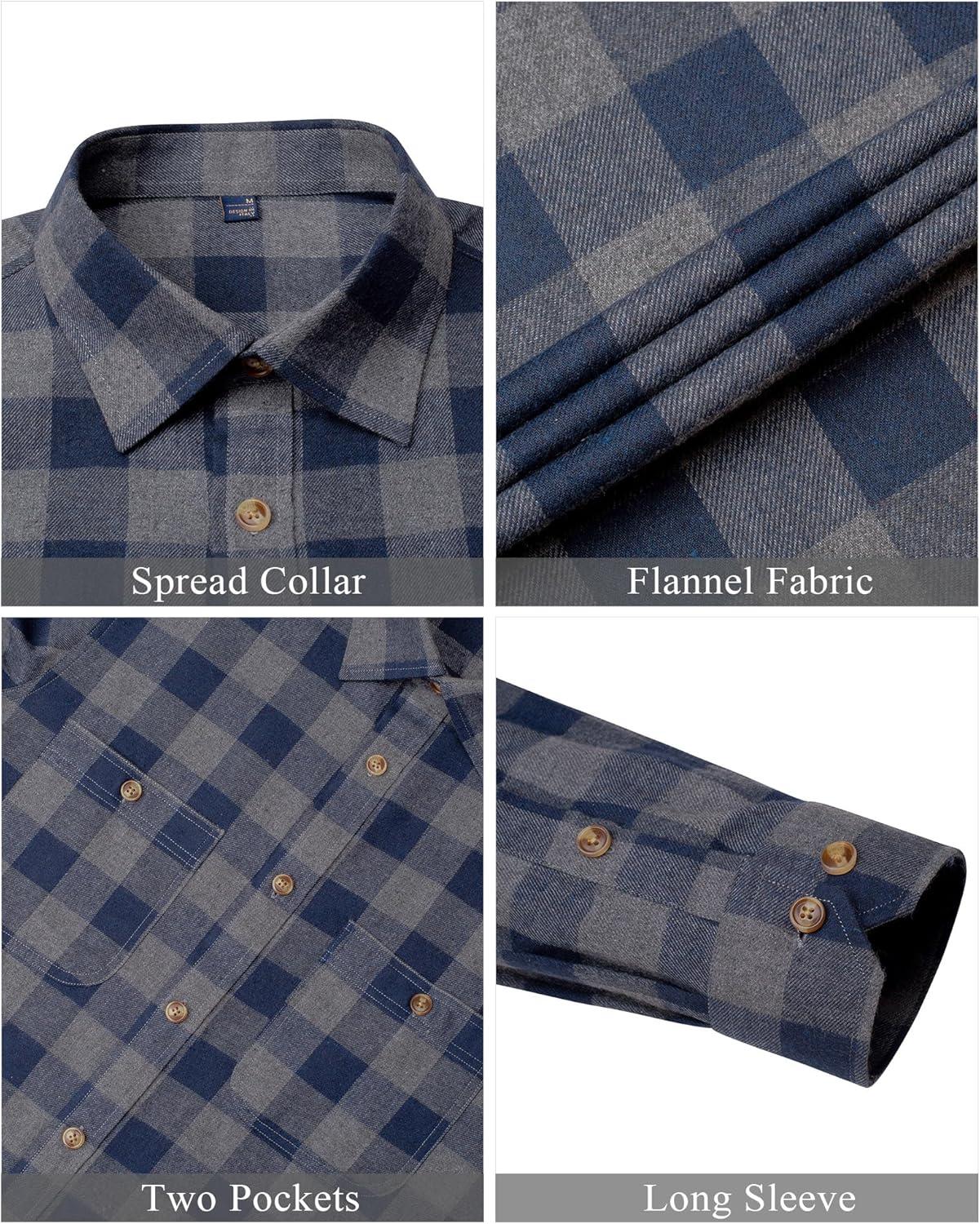 J.VER Flannel Shirt for Men Plaid Long Sleeve Casual Button Down Shirts Regular Fit Cotton Buffalo Checkered Top with Pockets(Grey Navy)
