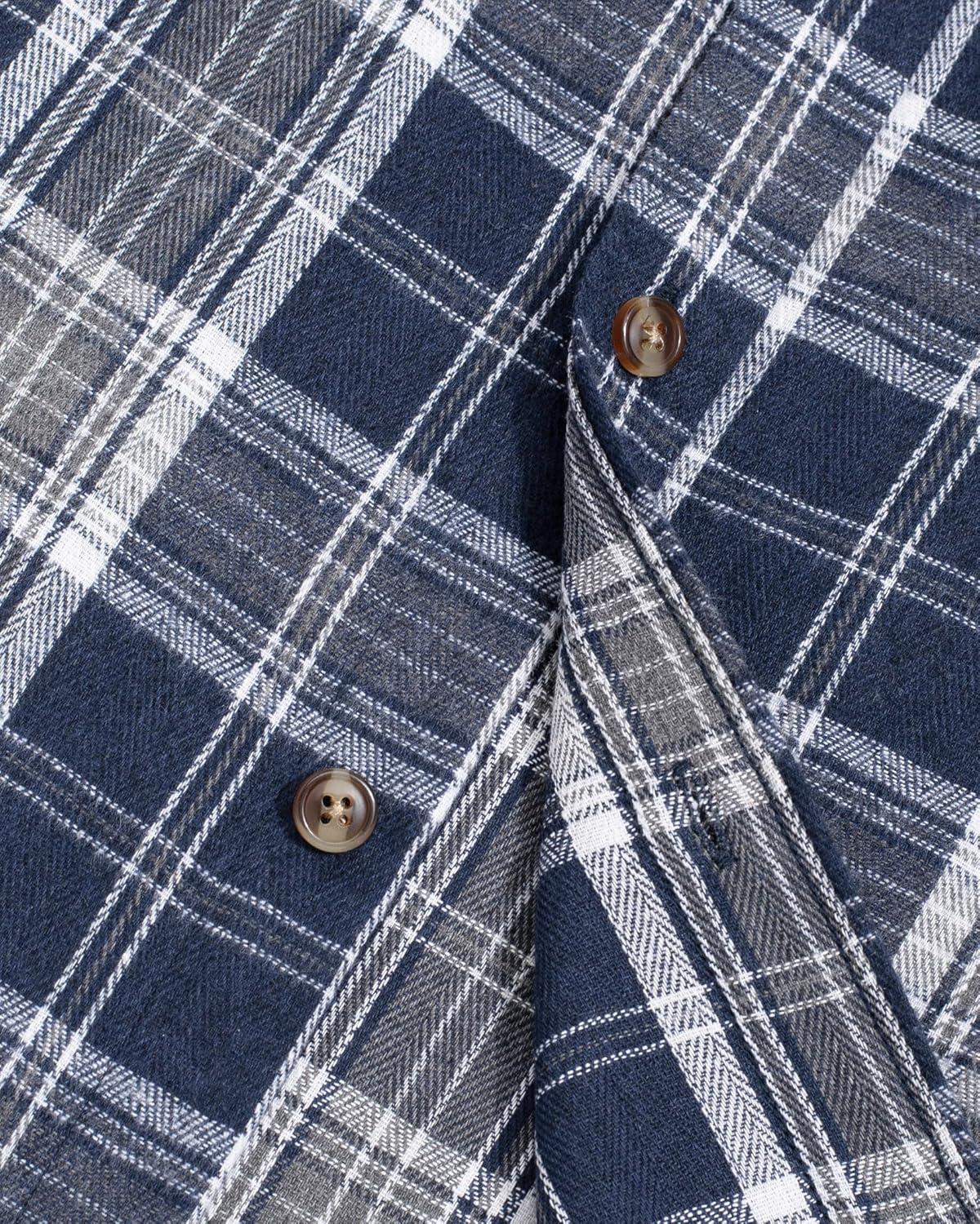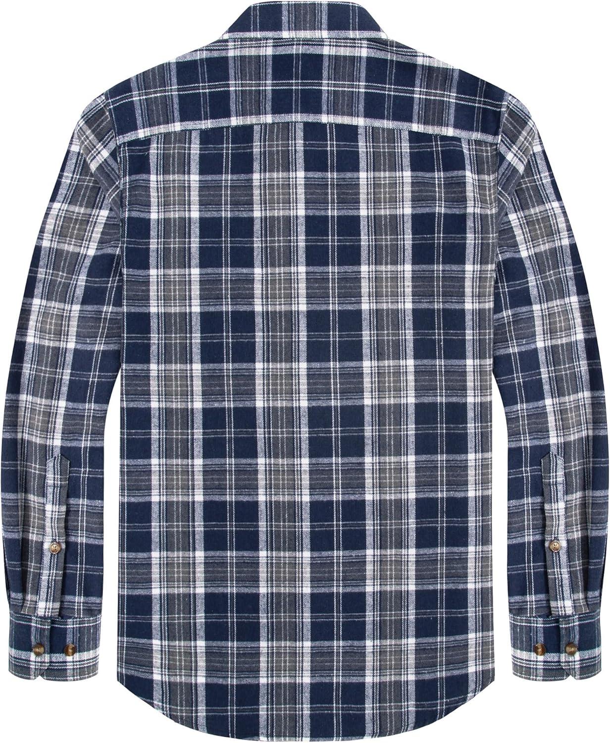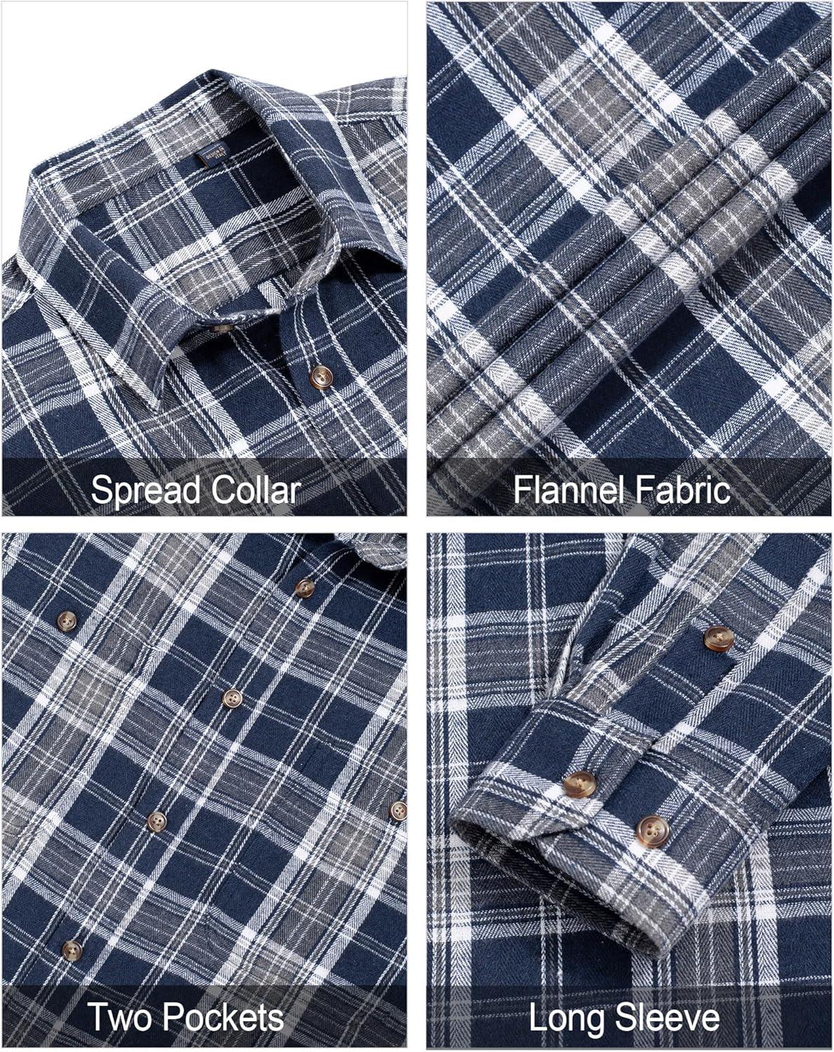 J.VER Flannel Shirt for Men Plaid Long Sleeve Casual Button Down Shirts Regular Fit Cotton Buffalo Checkered Top with Pockets(Navy Brown)