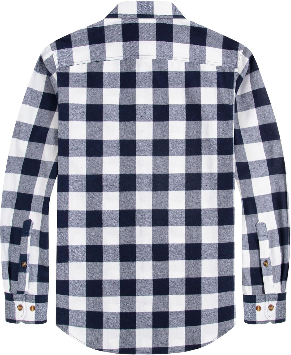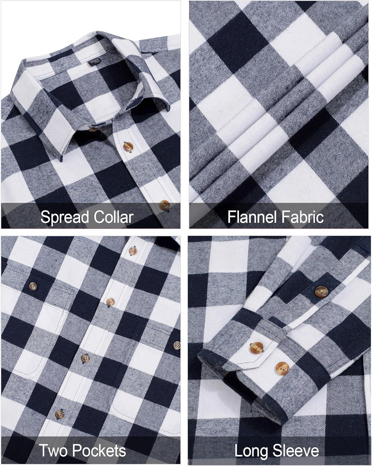 J.VER Flannel Shirt for Men Plaid Long Sleeve Casual Button Down Shirts Regular Fit Cotton Buffalo Checkered Top with Pockets(Navy White)