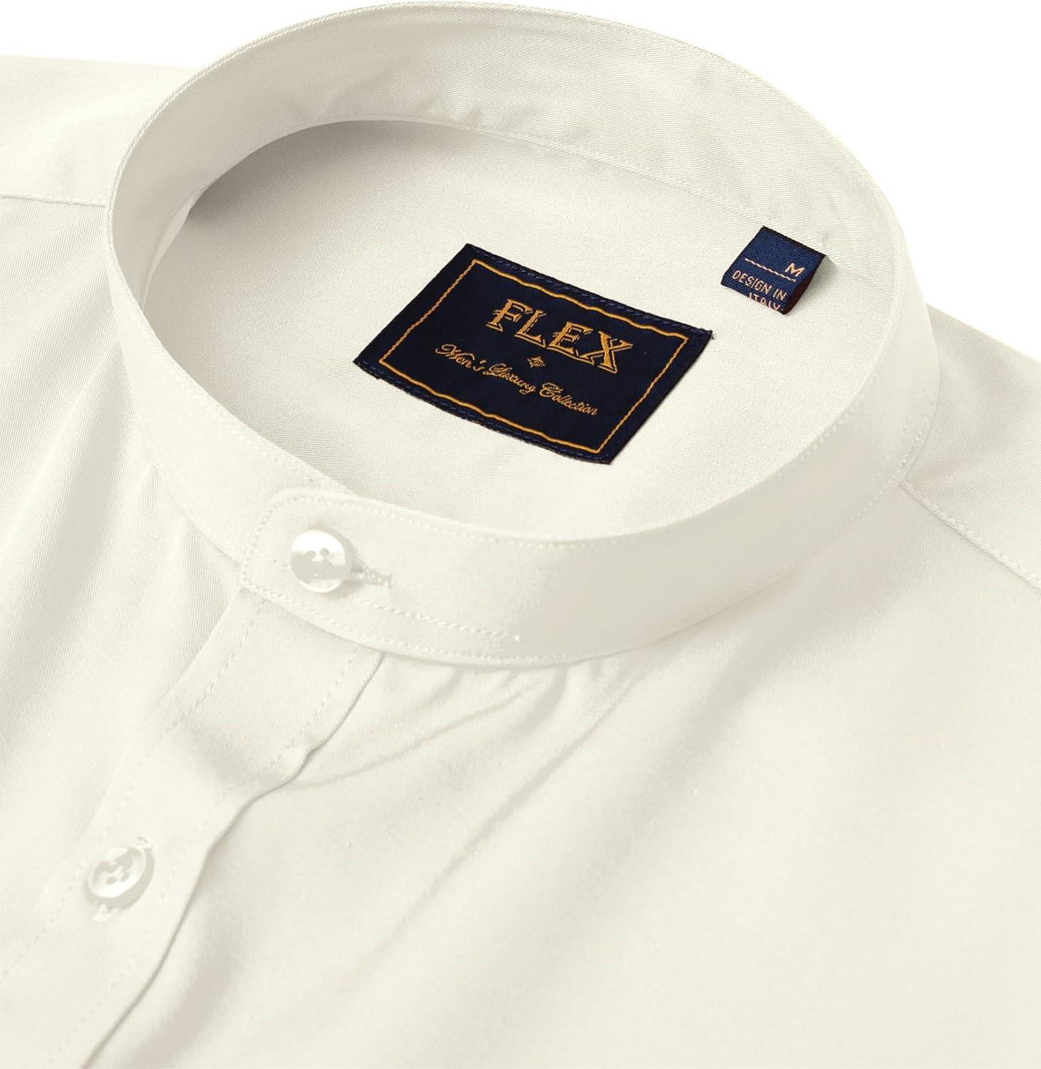 J.VER Mandarin Collar Shirts for Men Stretchy Long Sleeve Collarless Button Down Dress Shirt with Pocket(Grey)