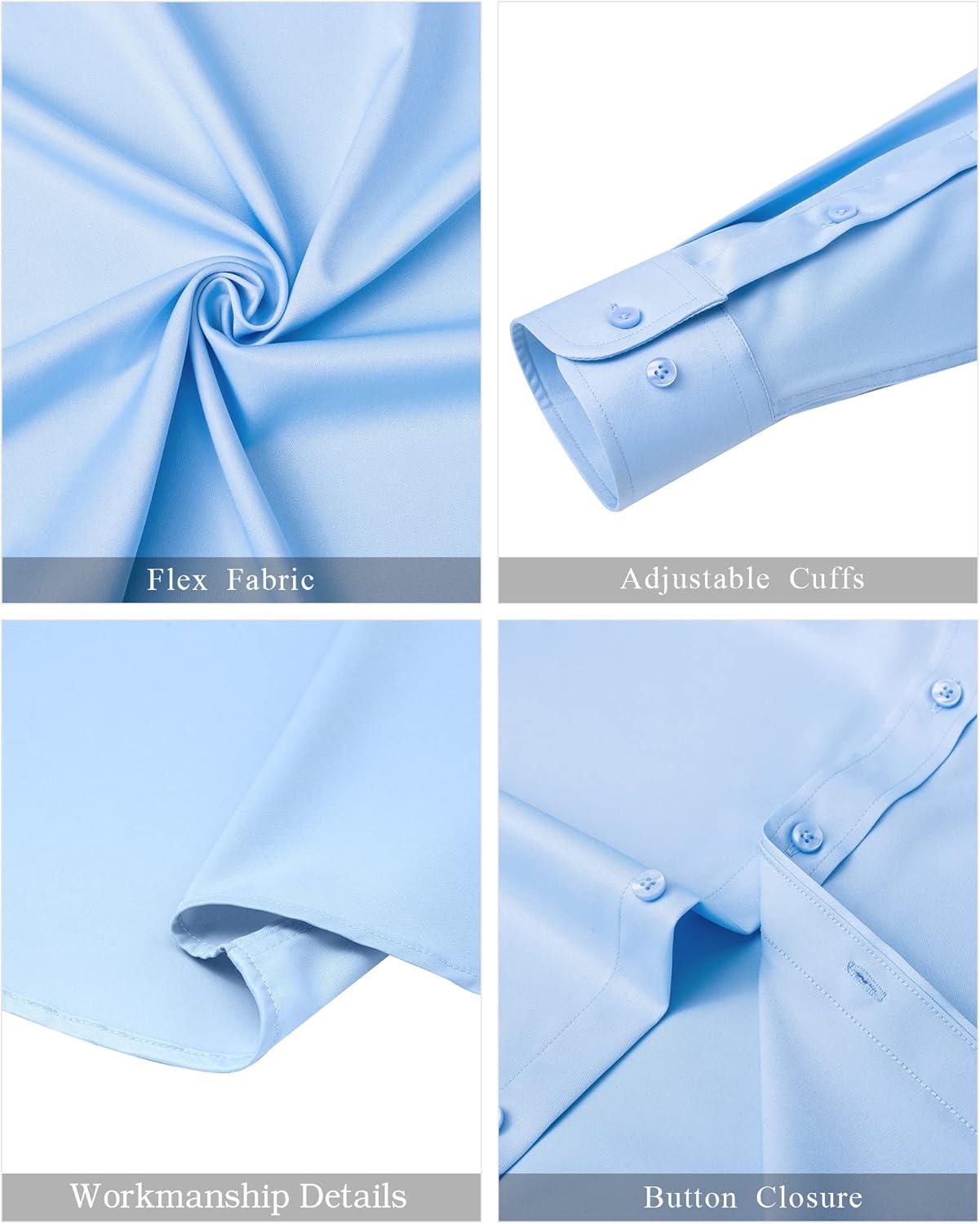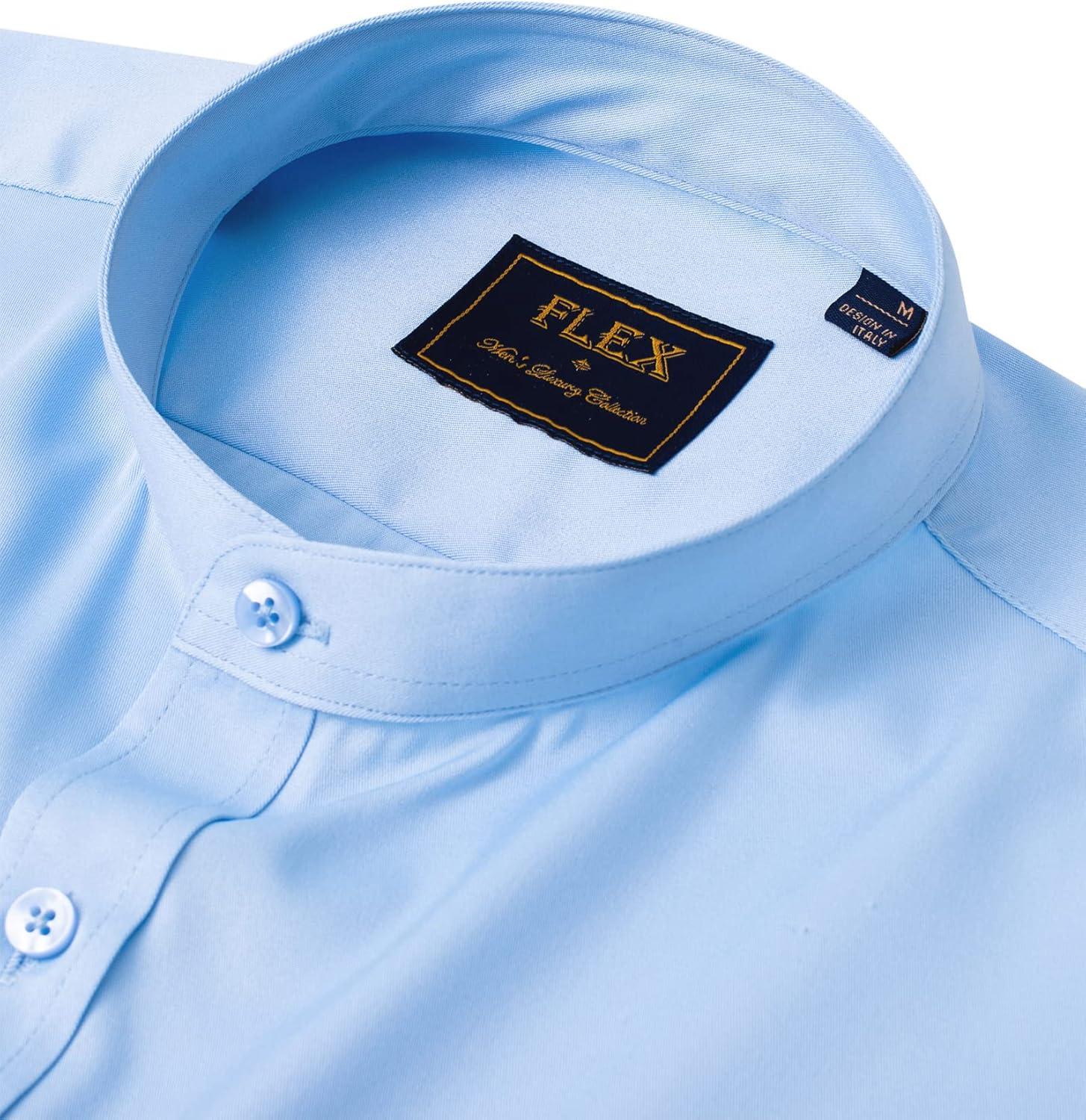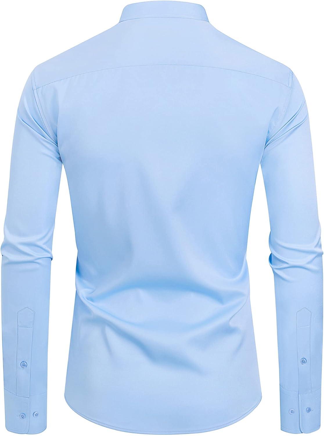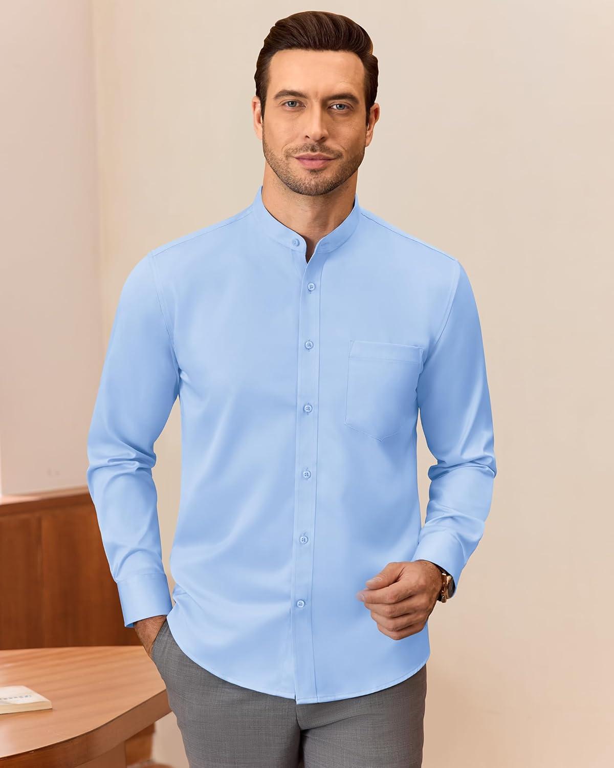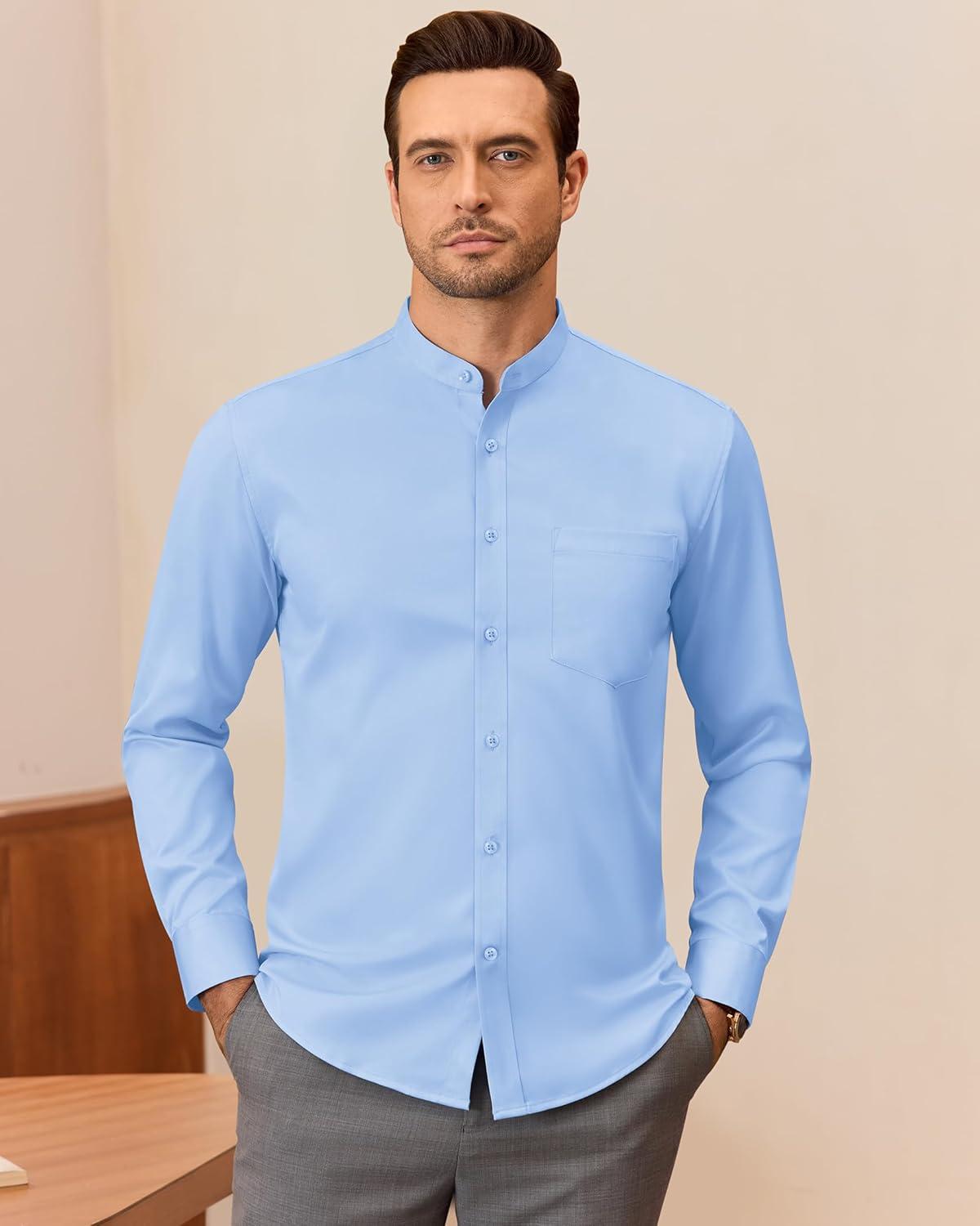 J.VER Mandarin Collar Shirts for Men Stretchy Long Sleeve Collarless Button Down Dress Shirt with Pocket(Blue)