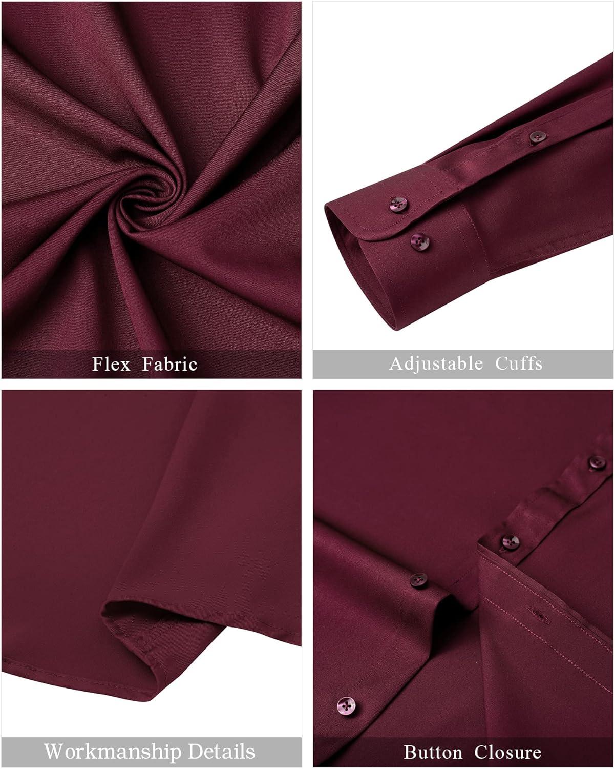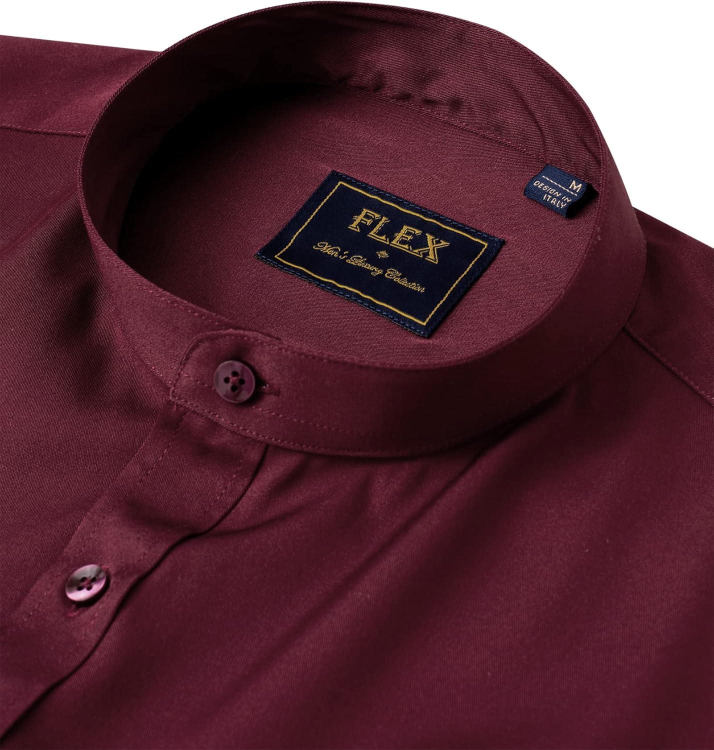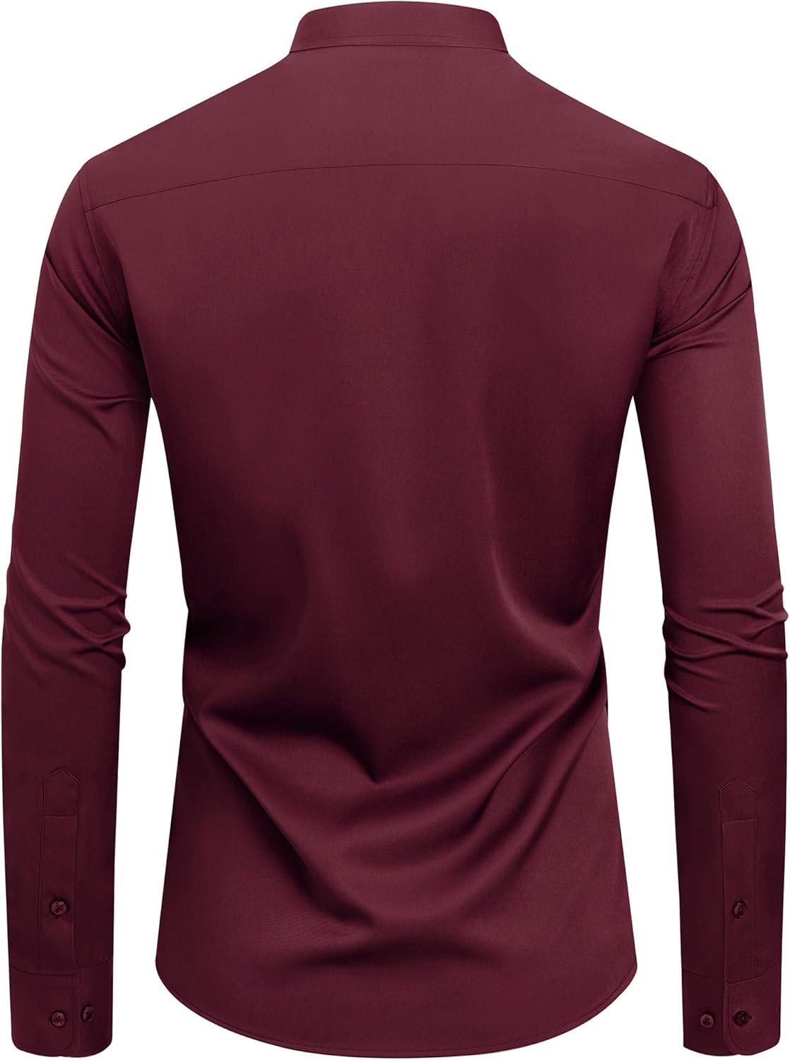 J.VER Mandarin Collar Shirts for Men Stretchy Long Sleeve Collarless Button Down Dress Shirt with Pocket(Burgundy)