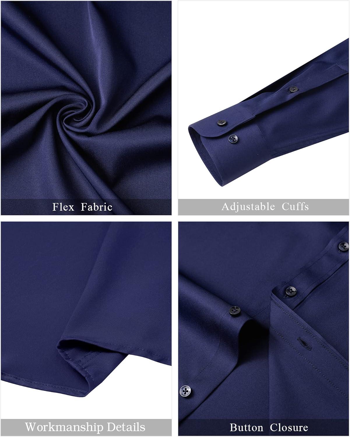 imageJVER Mandarin Collar Shirts for Men Stretchy Long Sleeve Collarless Button Down Dress Shirt with PocketNavy Blue