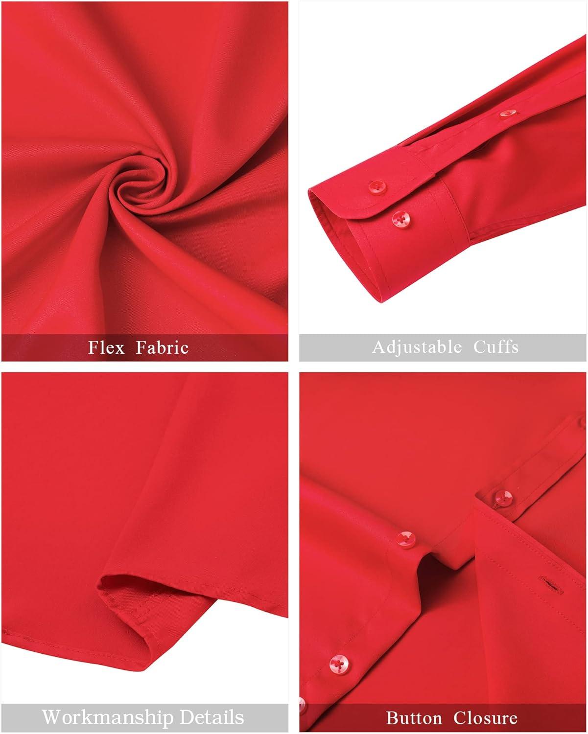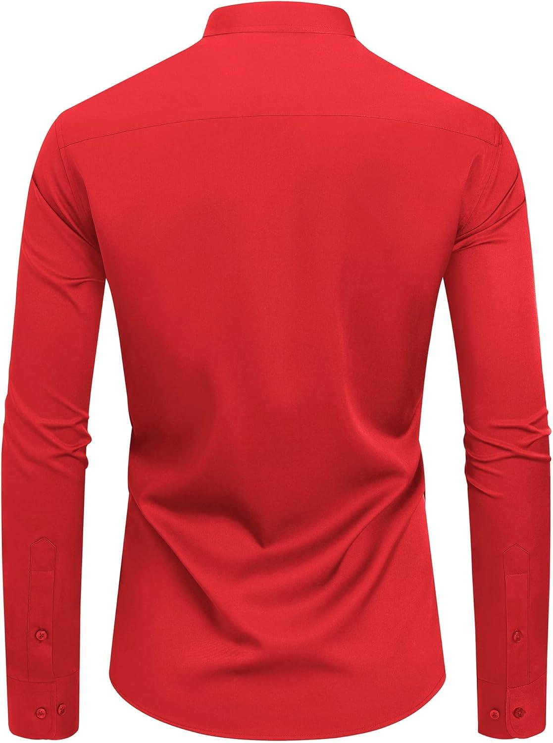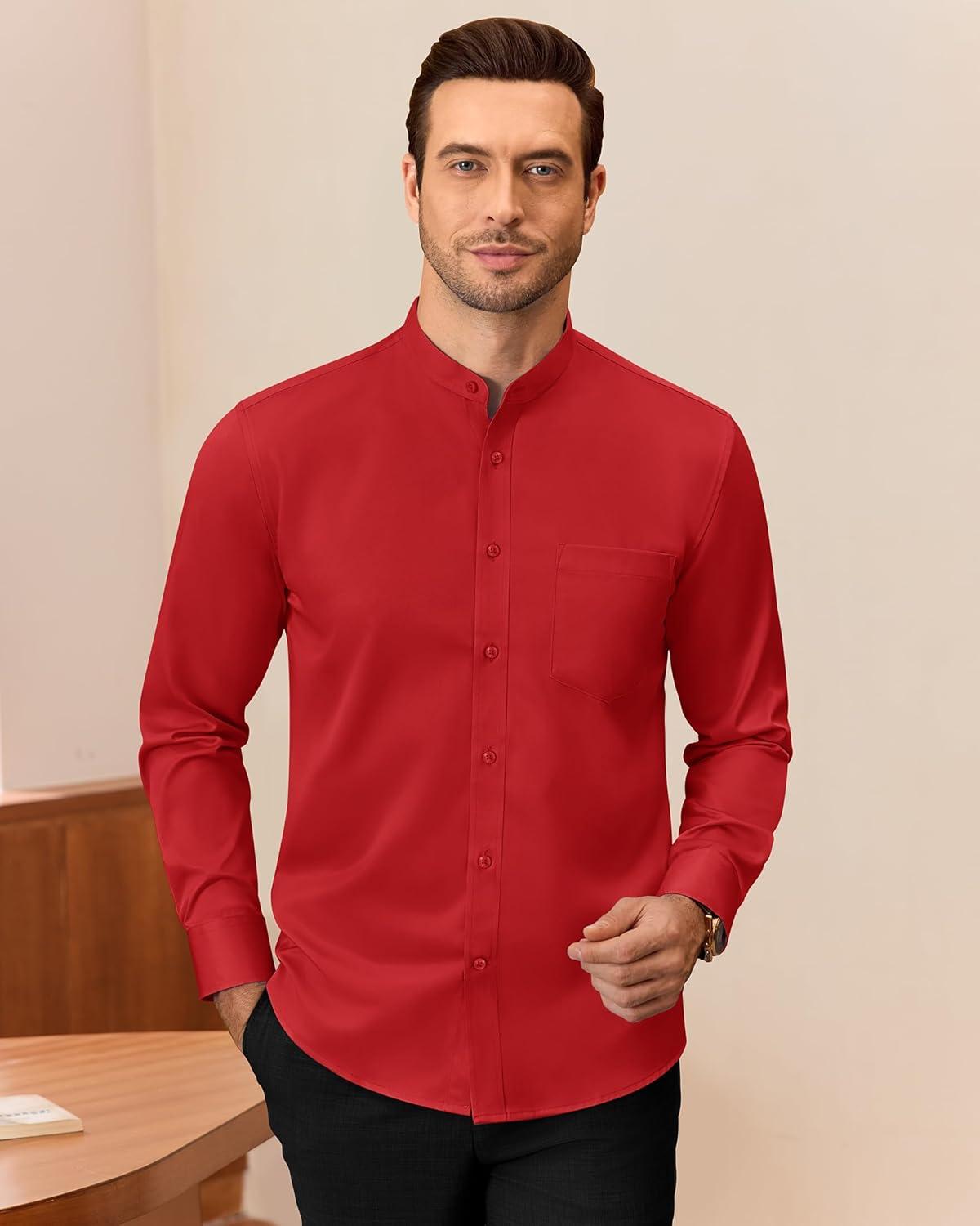 J.VER Mandarin Collar Shirts for Men Stretchy Long Sleeve Collarless Button Down Dress Shirt with Pocket(Red)