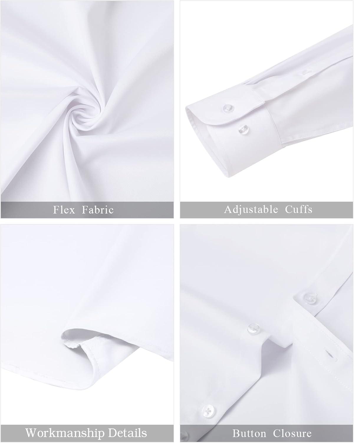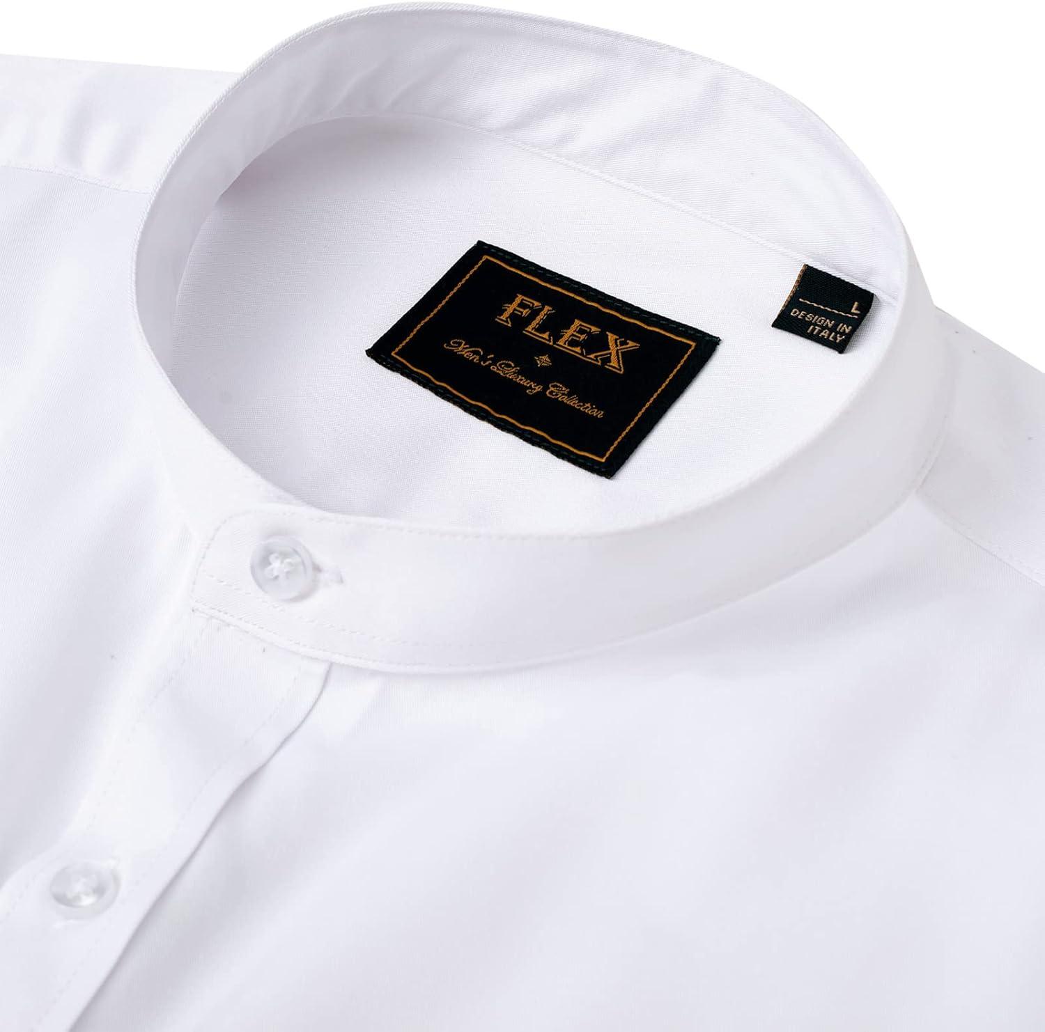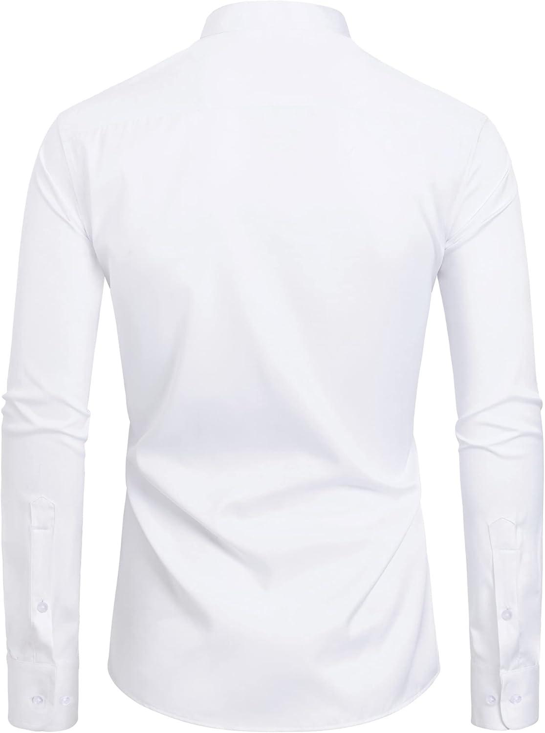 J.VER Mandarin Collar Shirts for Men Stretchy Long Sleeve Collarless Button Down Dress Shirt with Pocket(White)