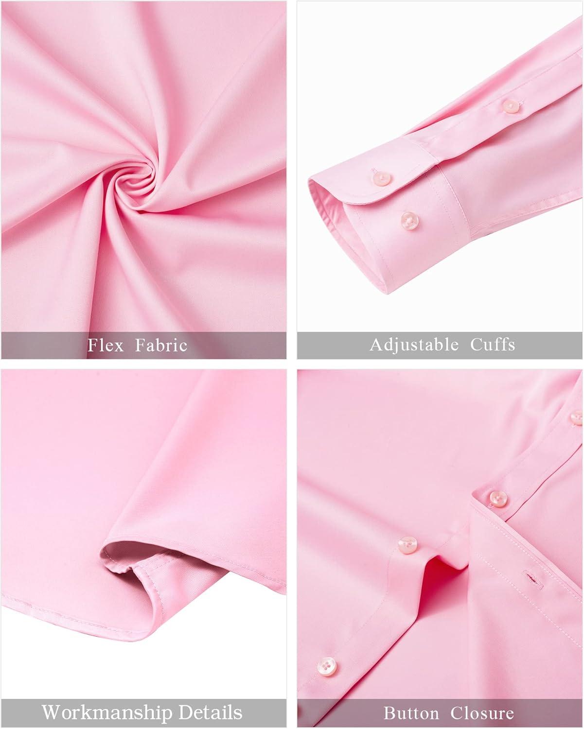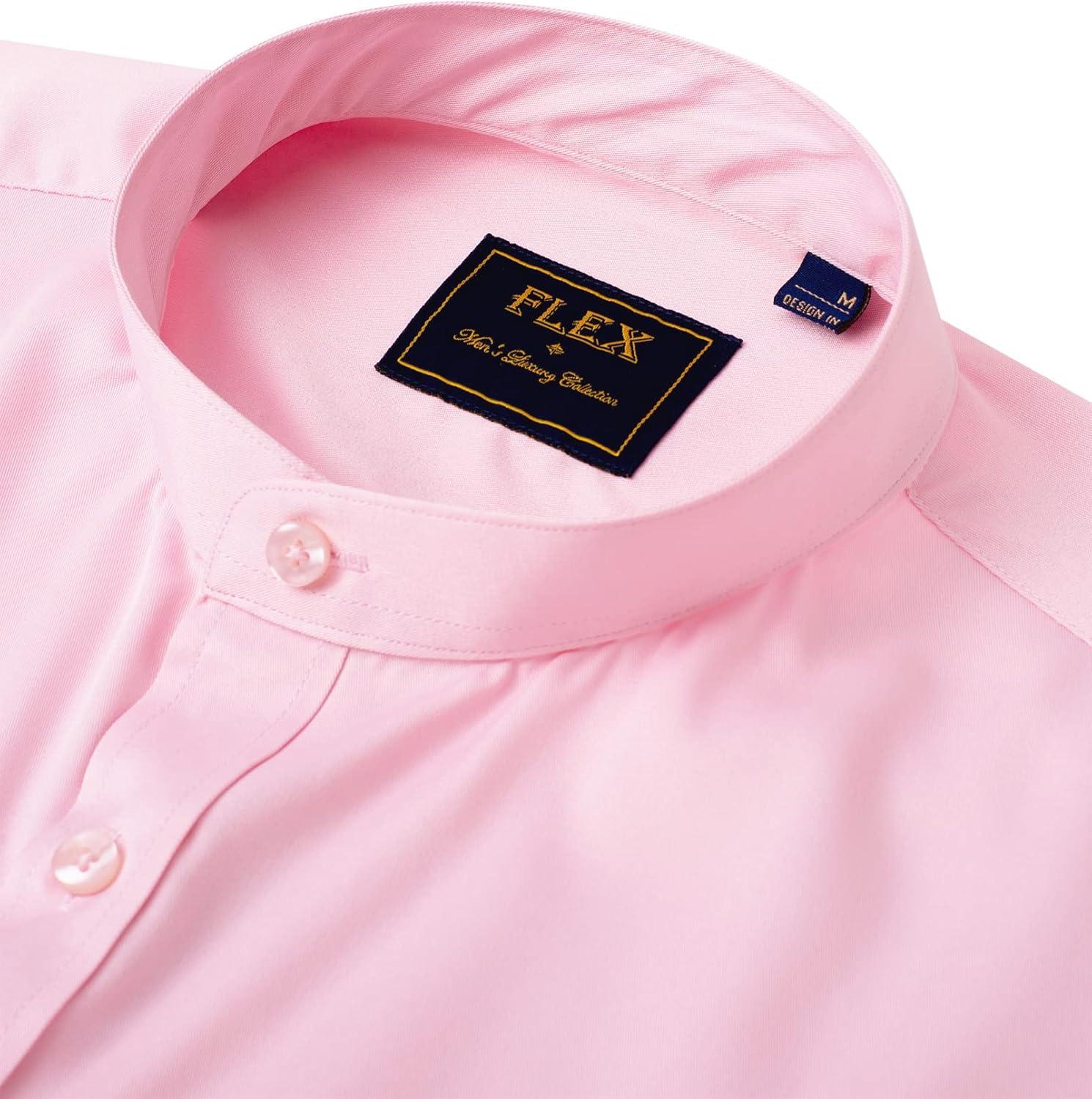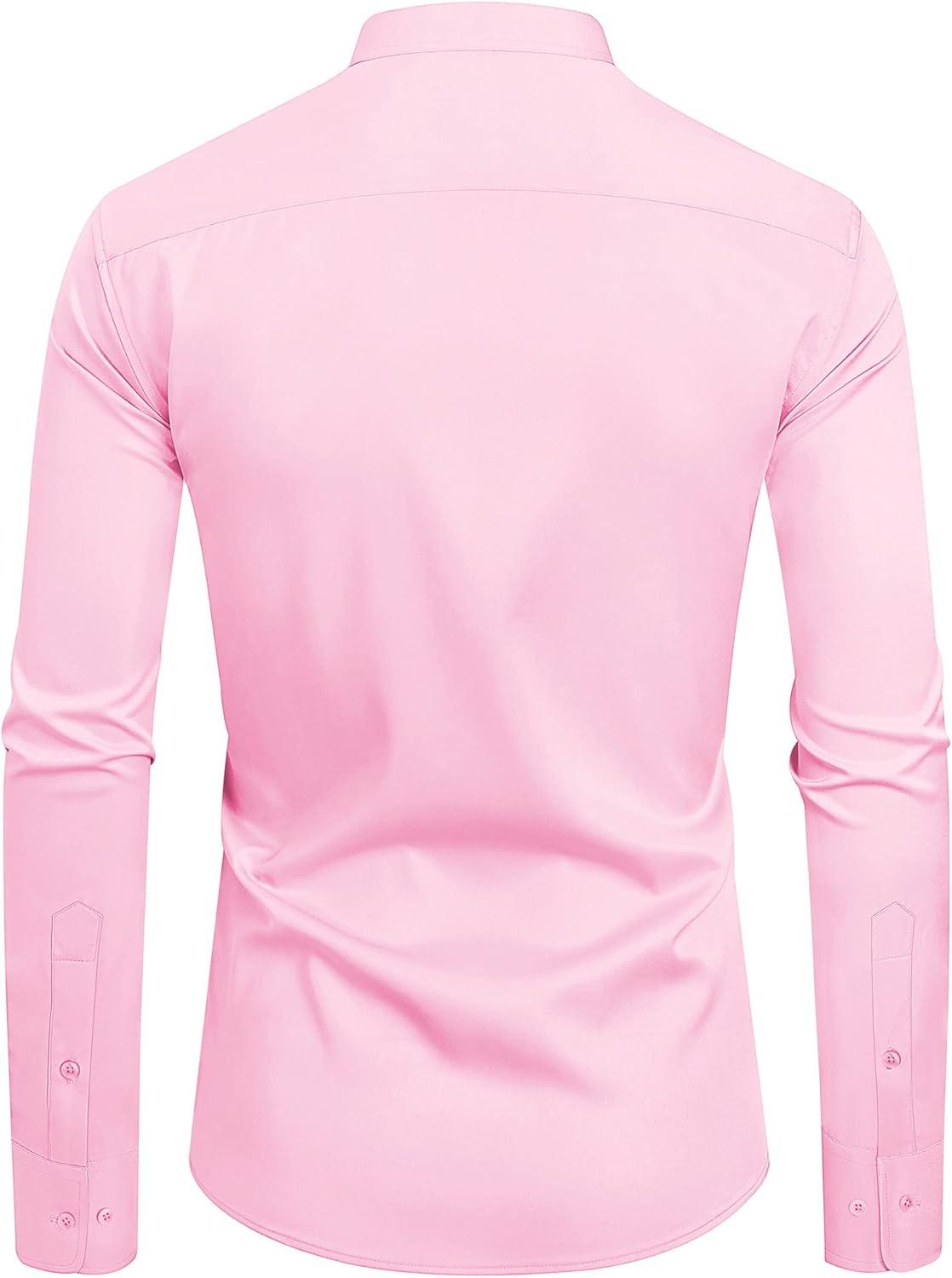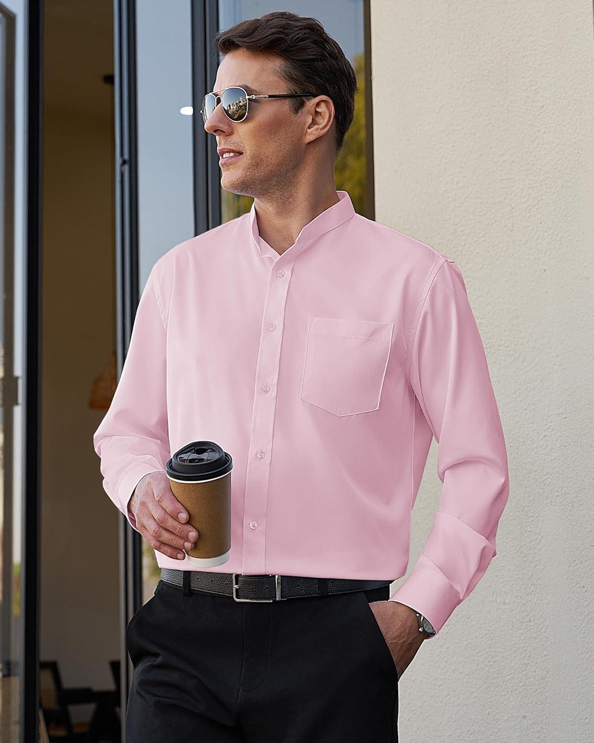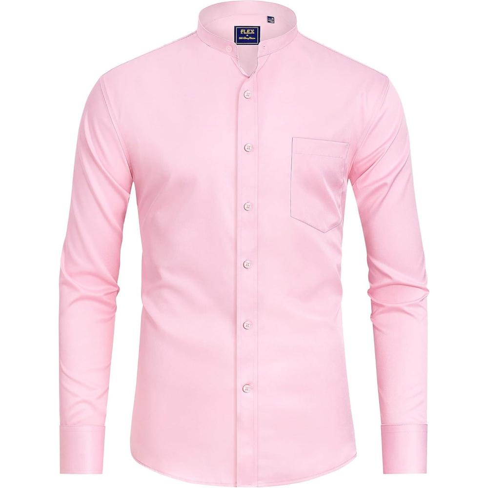 J.VER Men’s Banded Collar Dress Shirt Mandarin Long Sleeve Button Down Shirts Stretch Collarless Tops with Pocket(Pink)