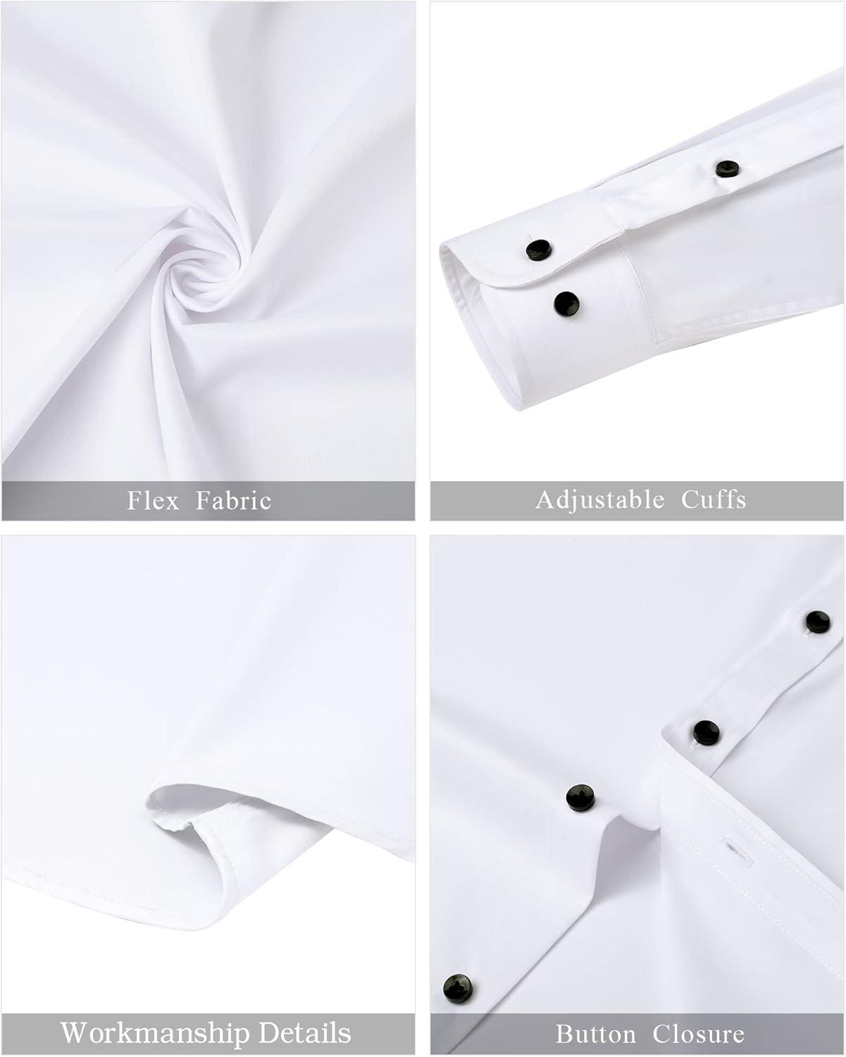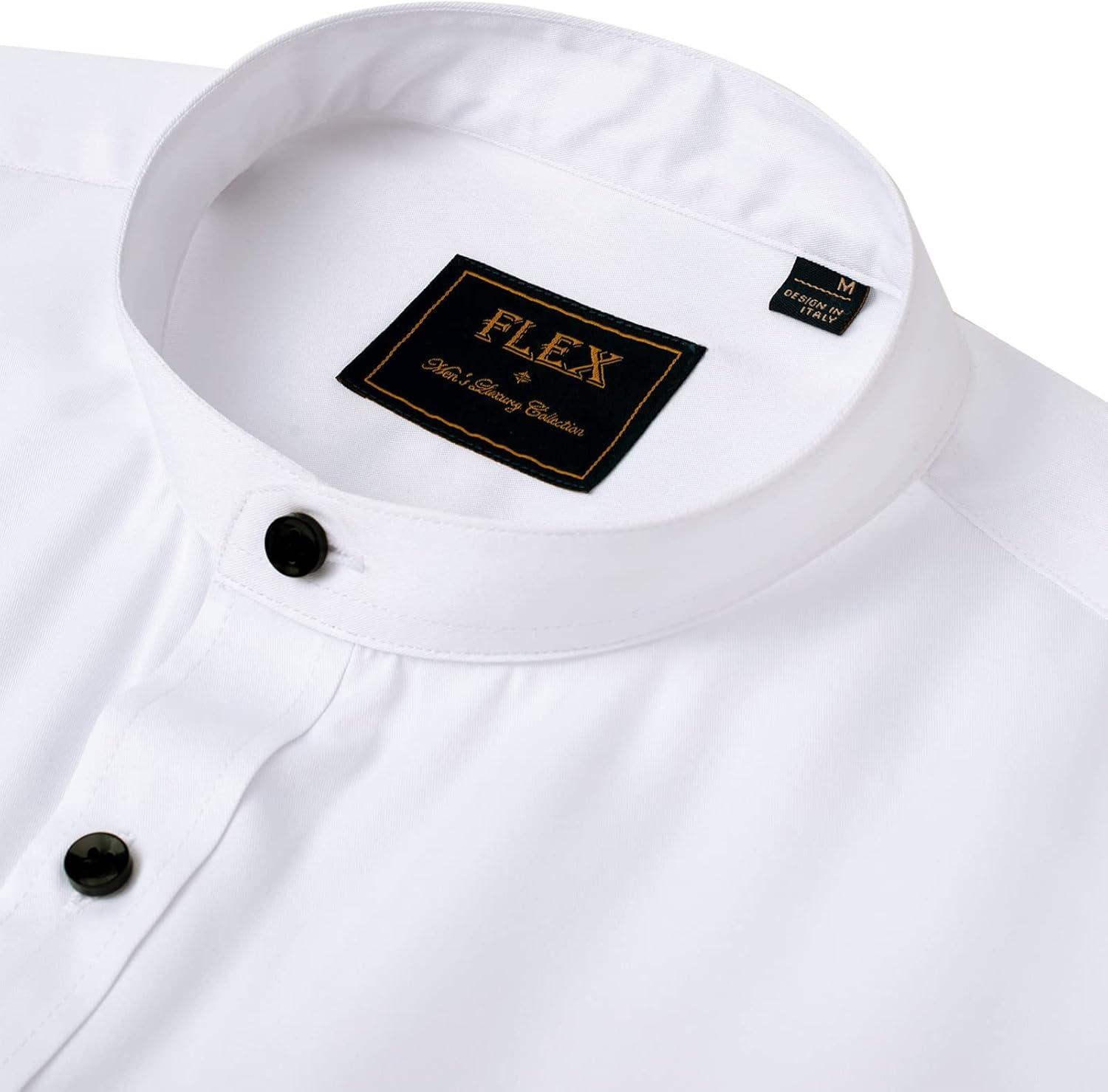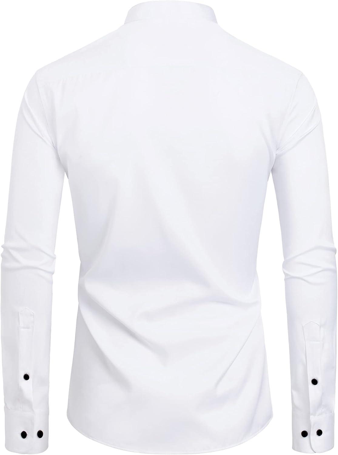 J.VER Men’s Banded Collar Dress Shirt Mandarin Long Sleeve Button Down Shirts Stretch Collarless Tops with Pocket(White Black)