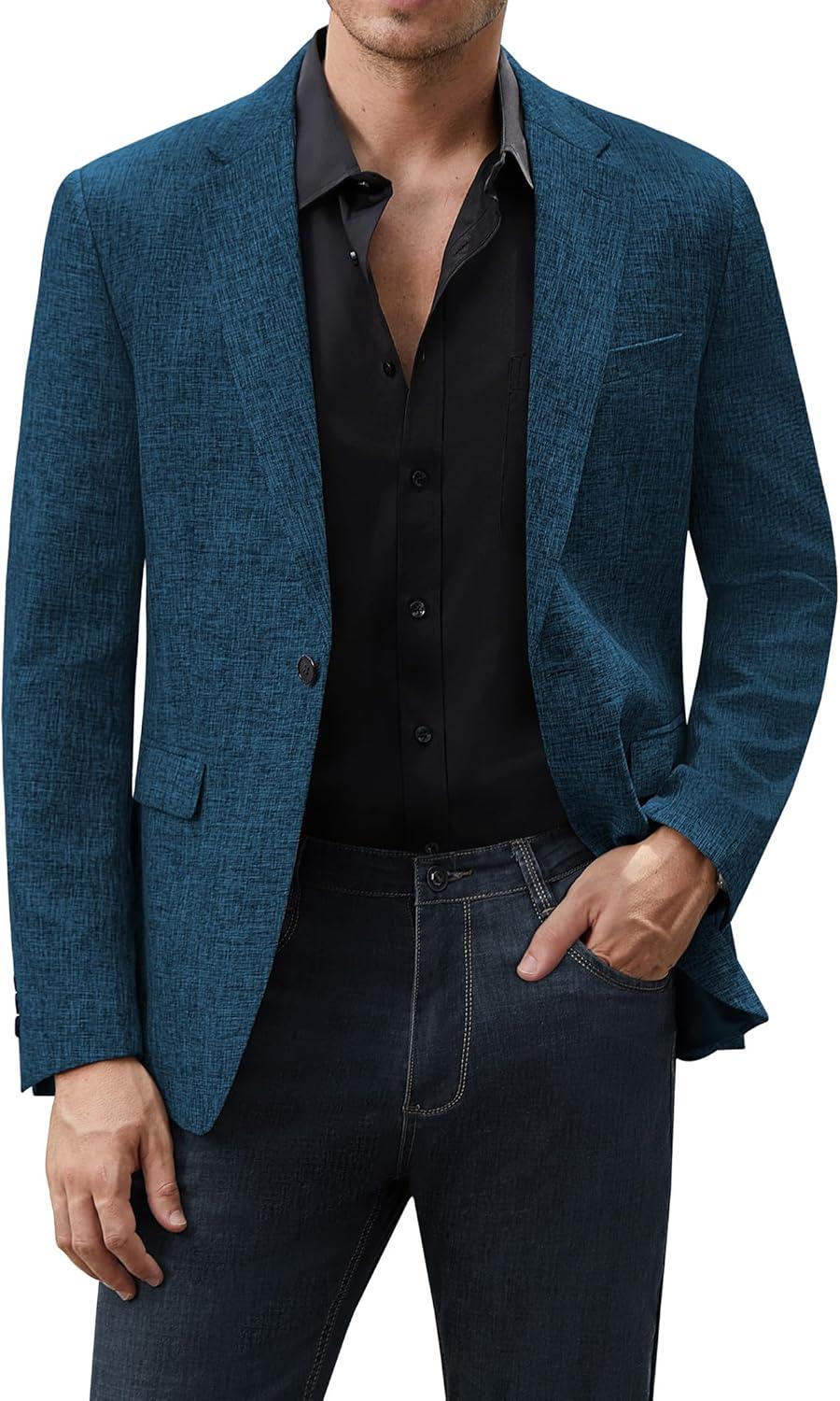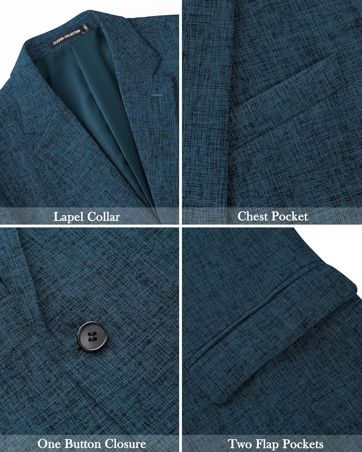 J.VER Mens Casual Blazer Sport Coat One Button Business Stylish Suit Jacket(Teal)
