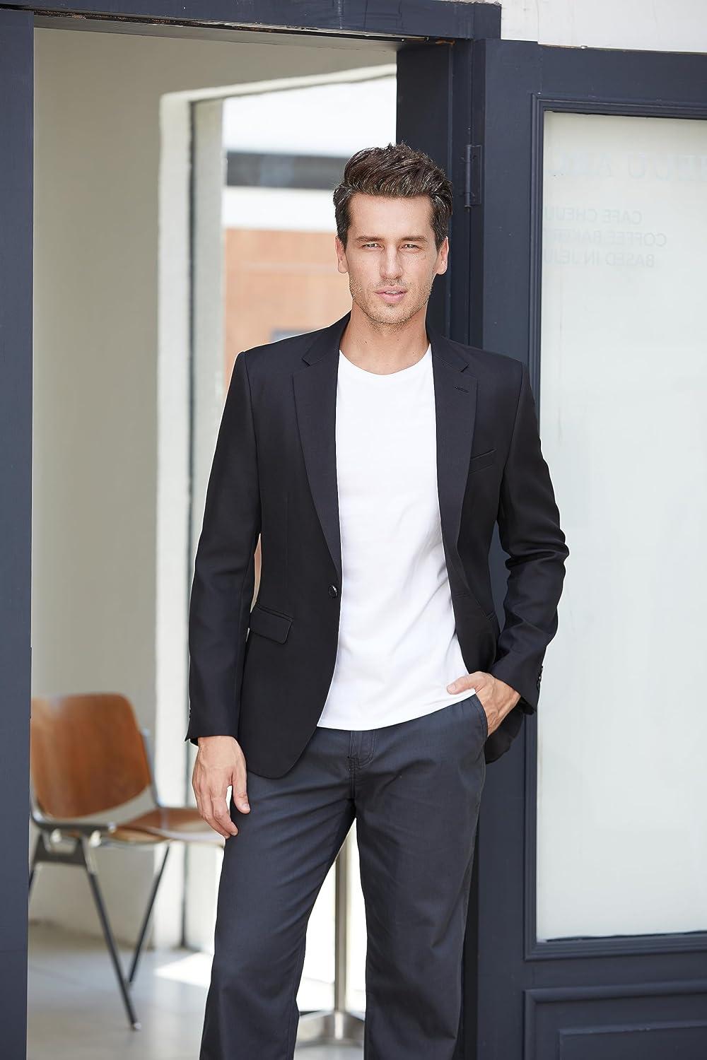 J.VER Mens Casual Blazer Sport Coat One Button Business Stylish Suit Jacket(Navy Blue)