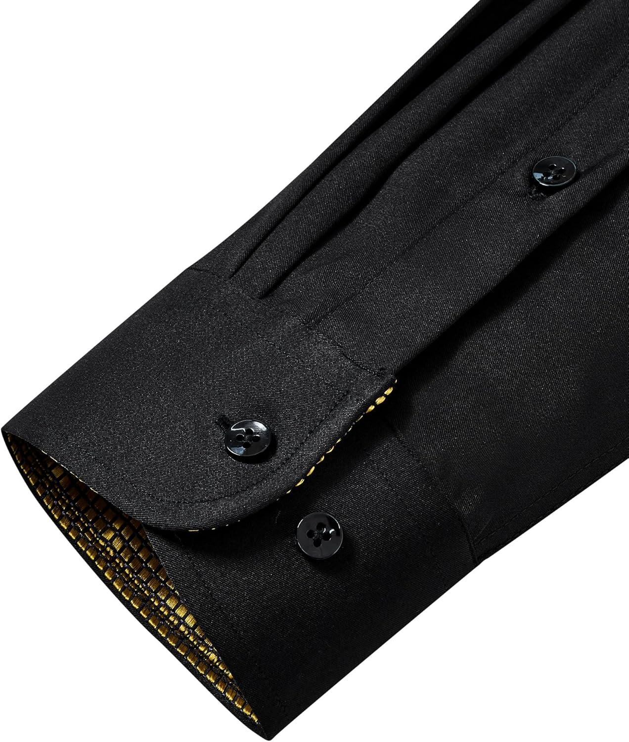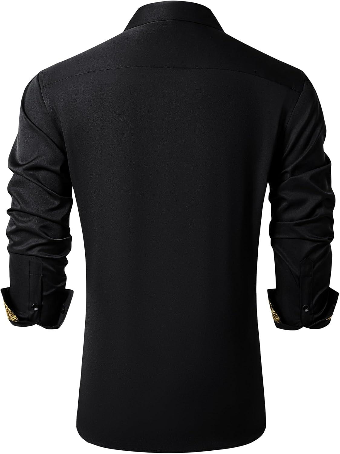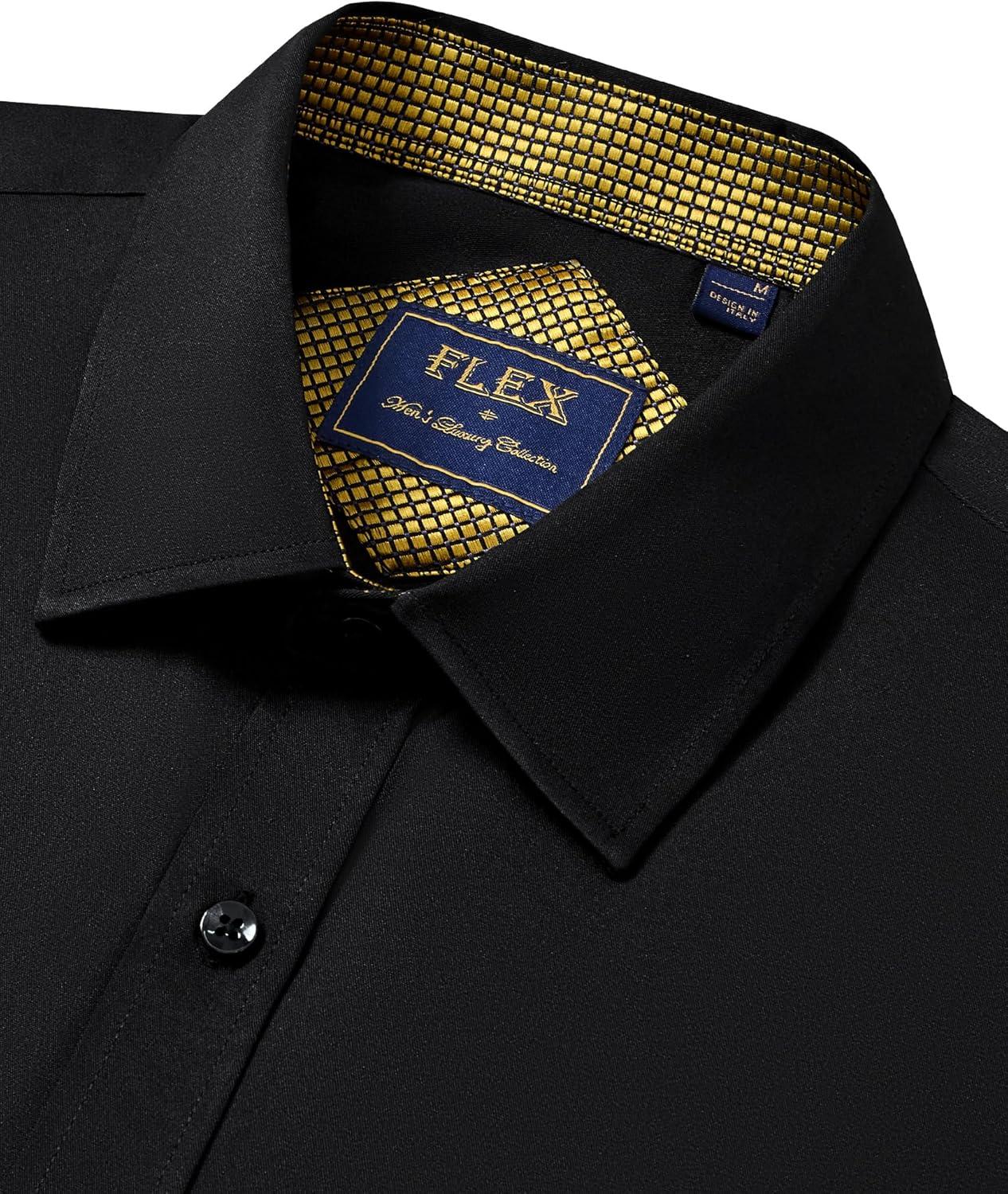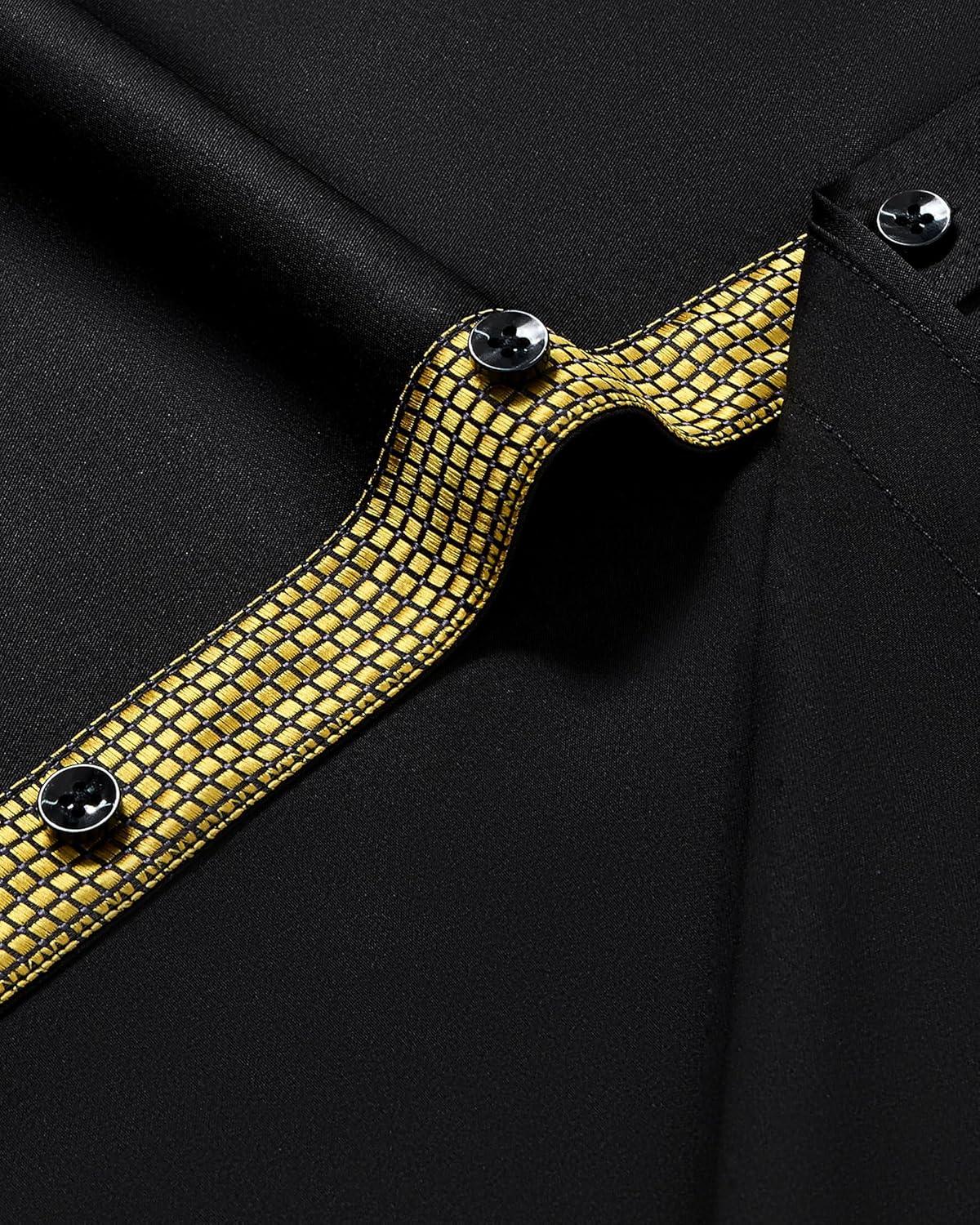 J.VER Men's Casual Long Sleeve Stretch Dress Shirt Wrinkle-Free Regular Fit Button Down Shirts(Black Gold)