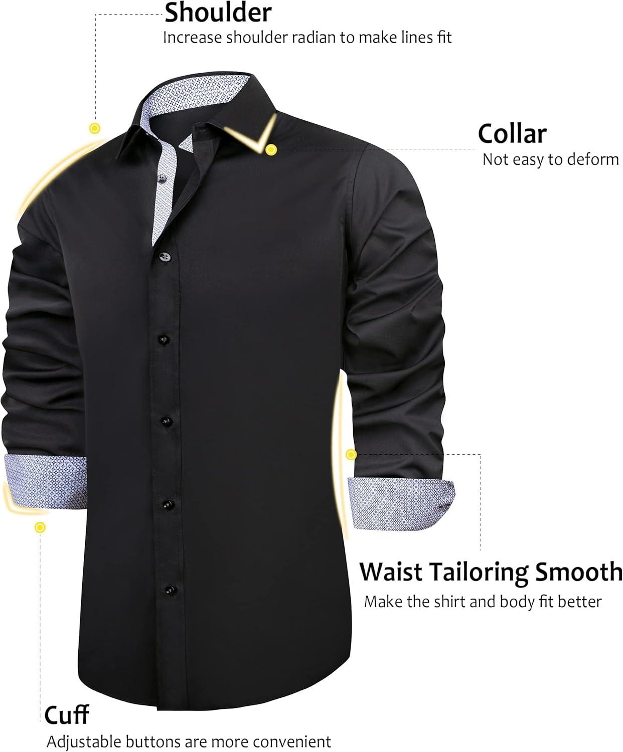 J.VER Men’s Casual Long Sleeve Stretch Dress Shirt Wrinkle-Free Regular Fit Button Down Shirts(Black Gold)