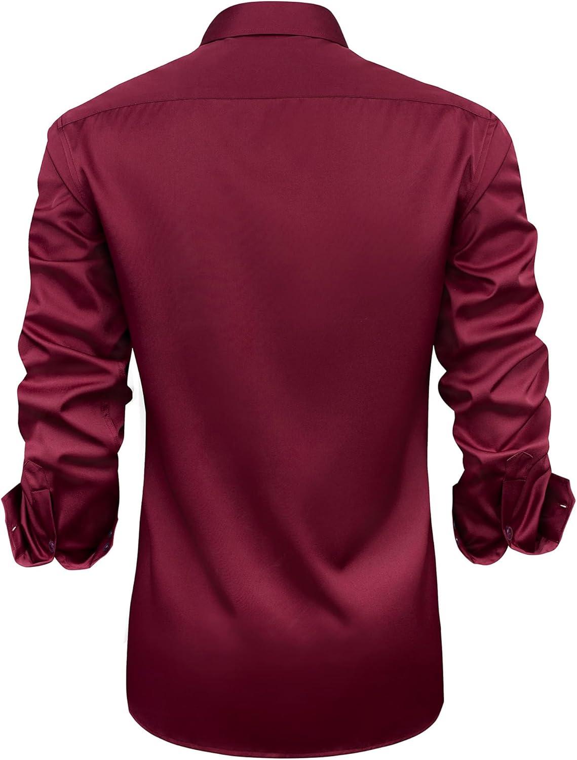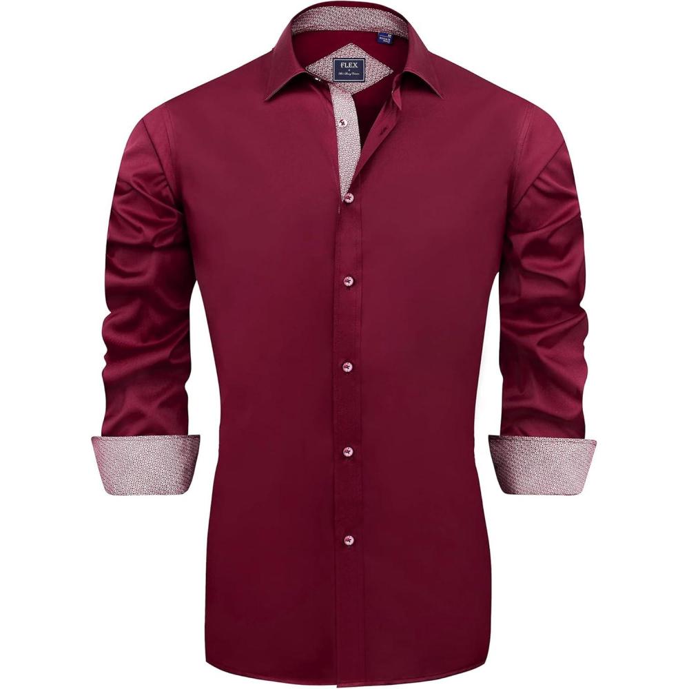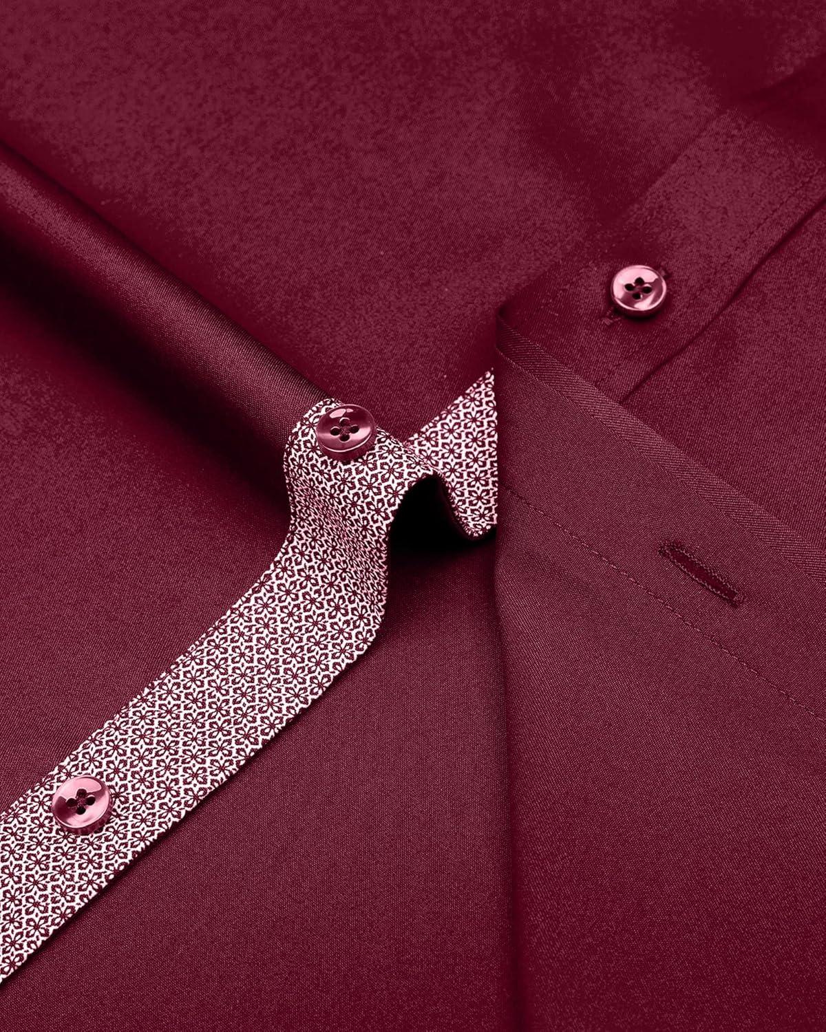J.VER Men's Casual Long Sleeve Stretch Dress Shirt Wrinkle-Free Regular Fit Button Down Shirts(Burgundy Red)