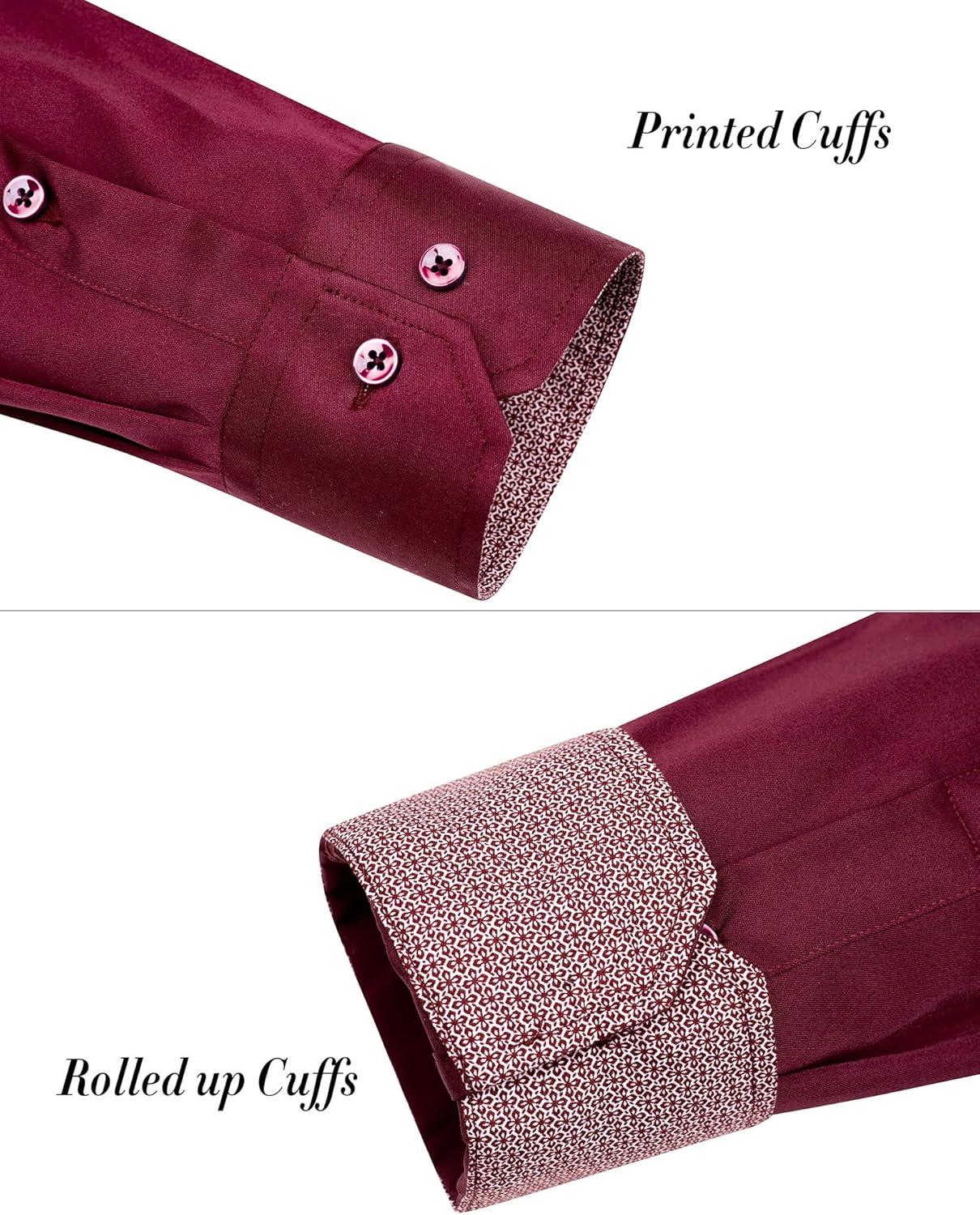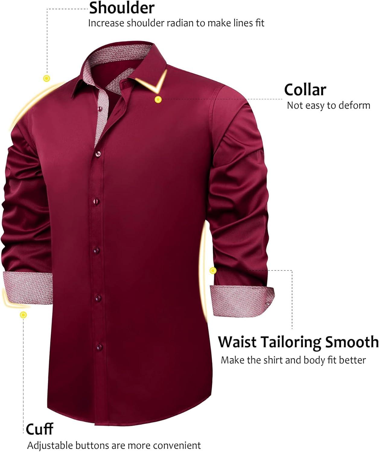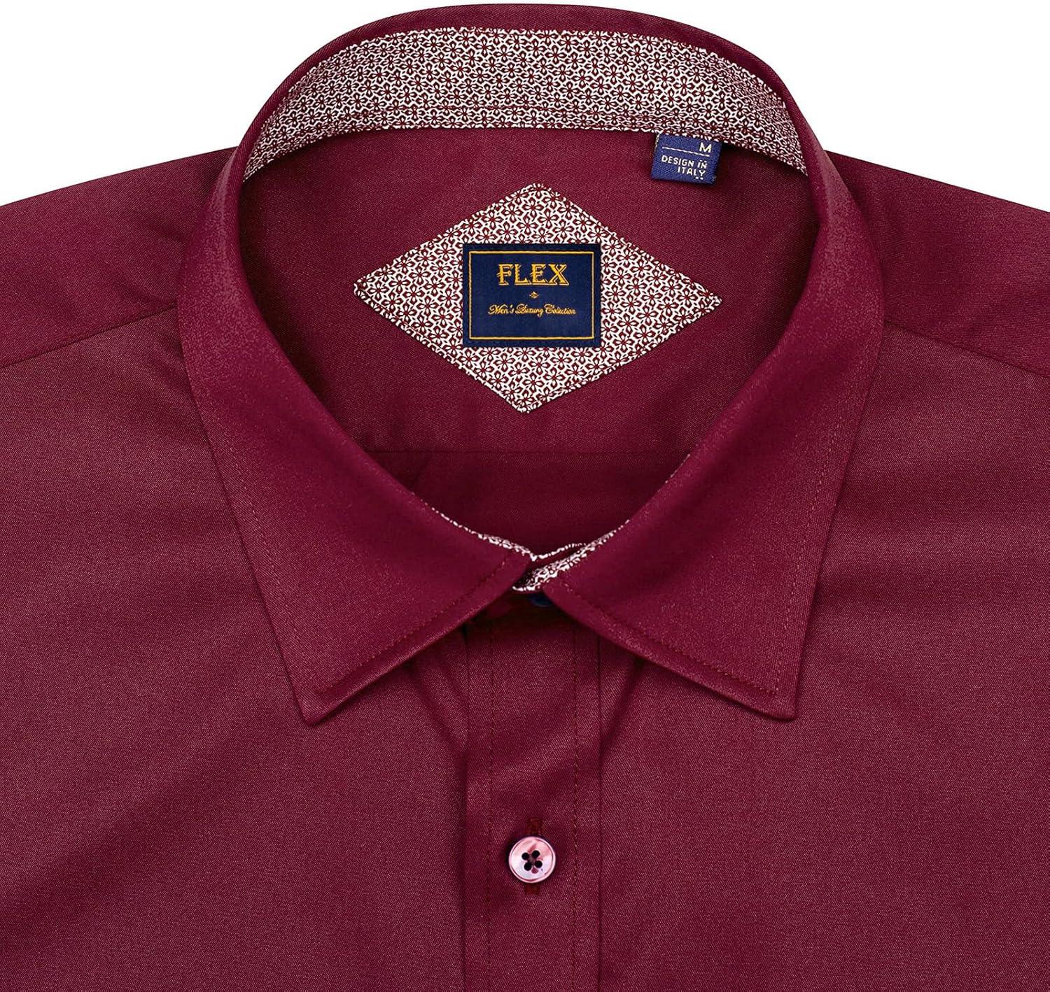 J.VER Men's Casual Long Sleeve Stretch Dress Shirt Wrinkle-Free Regular Fit Button Down Shirts(Burgundy Red)