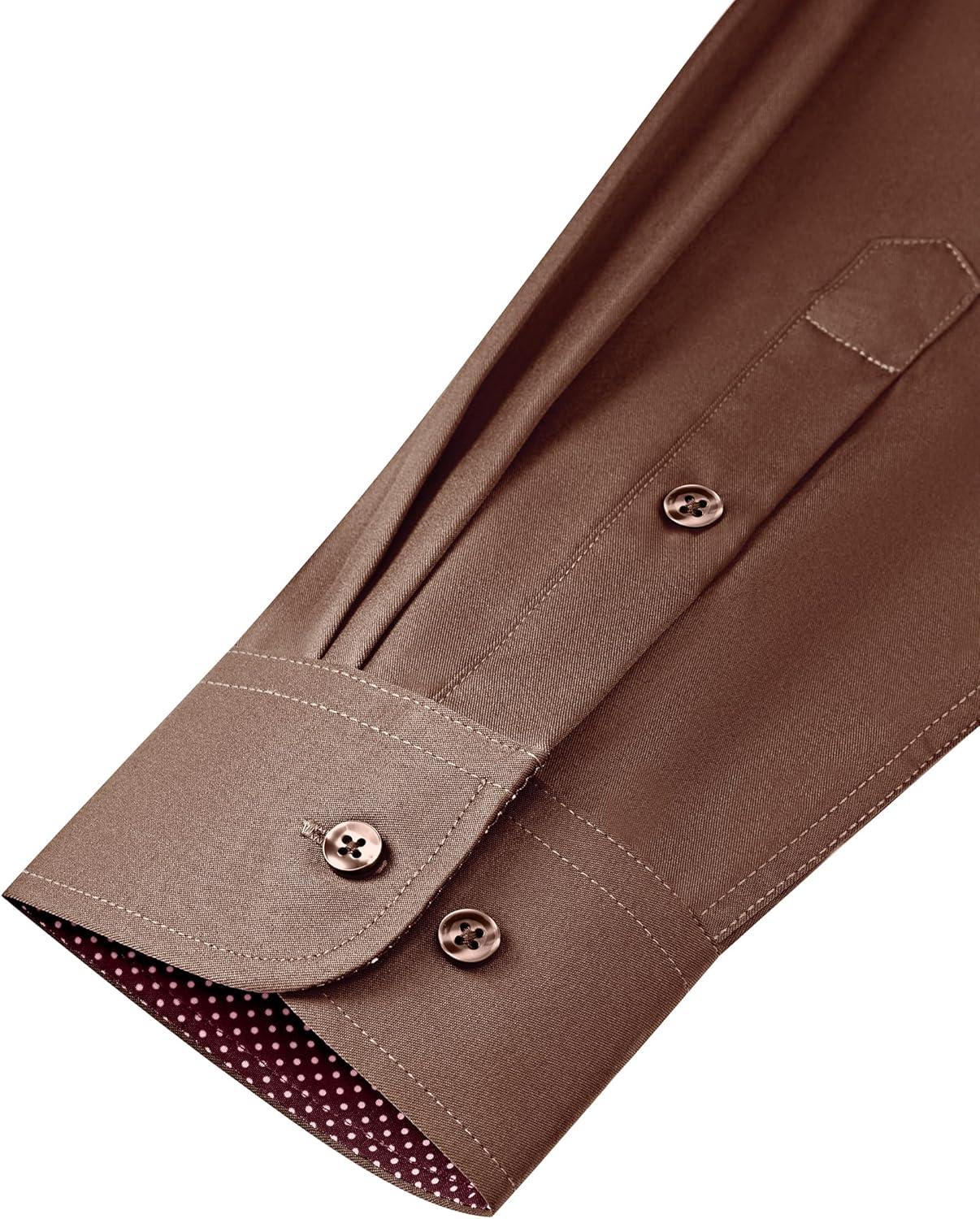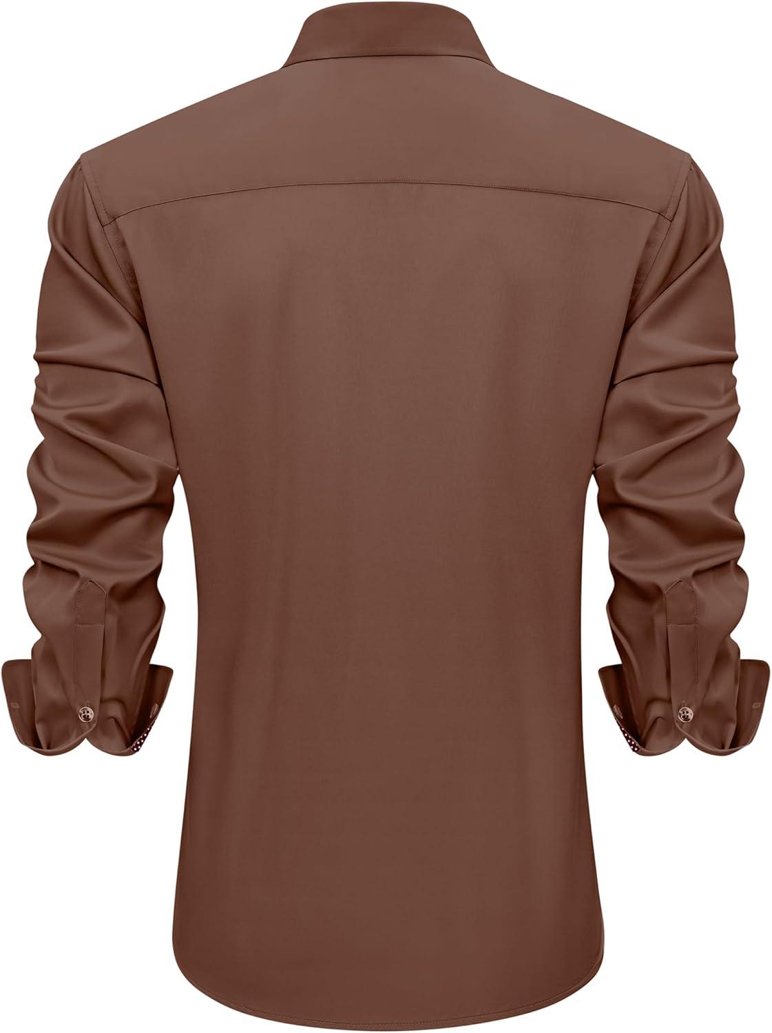 J.VER Men's Casual Long Sleeve Stretch Dress Shirt Wrinkle-Free Regular Fit Button Down Shirts(Chocolate Brown)