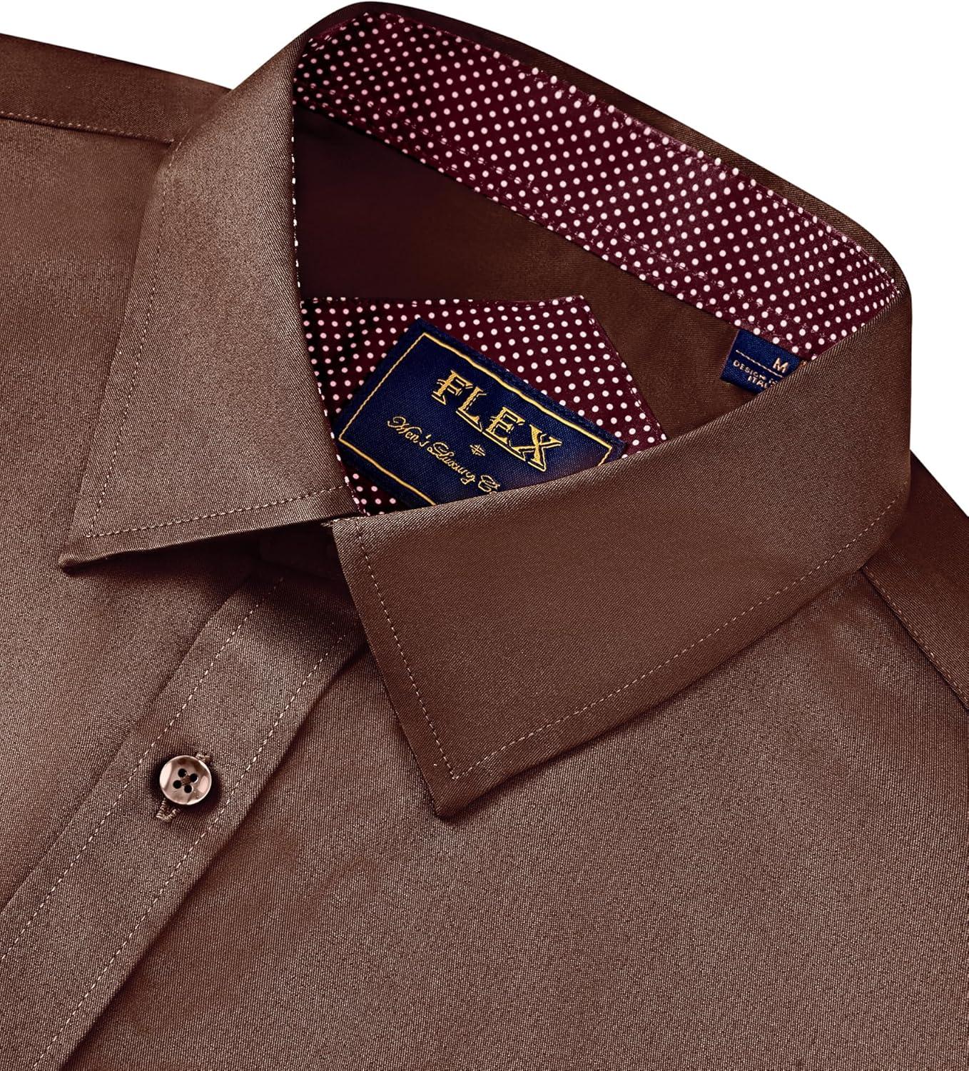 J.VER Men’s Casual Long Sleeve Stretch Dress Shirt Wrinkle-Free Regular Fit Button Down Shirts(Chocolate Brown)