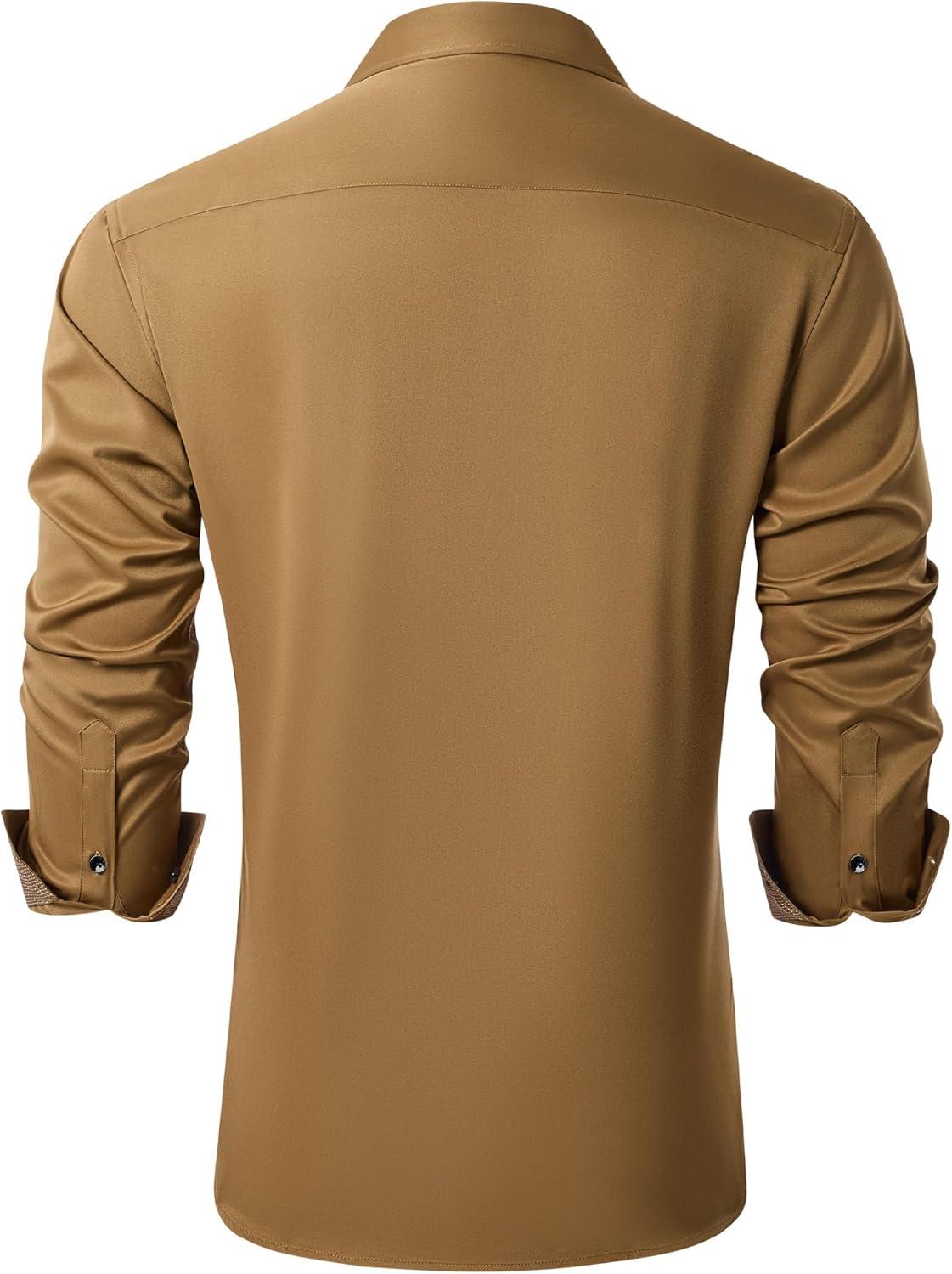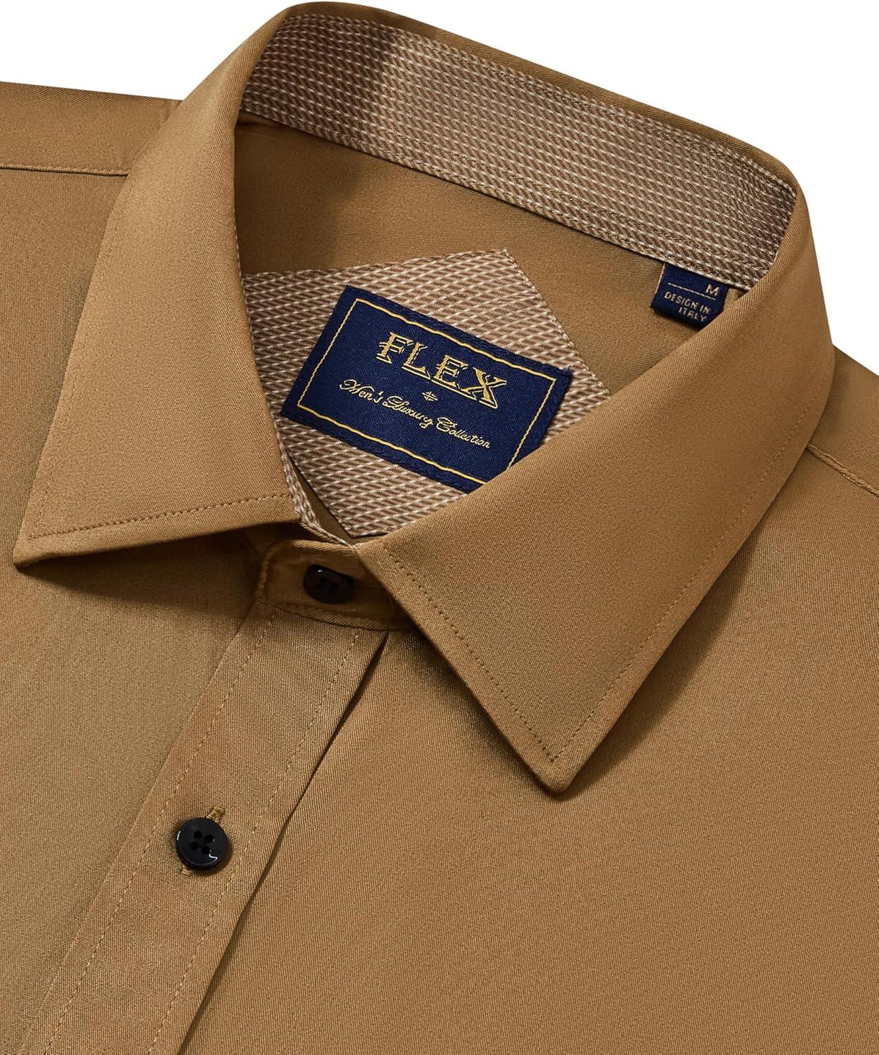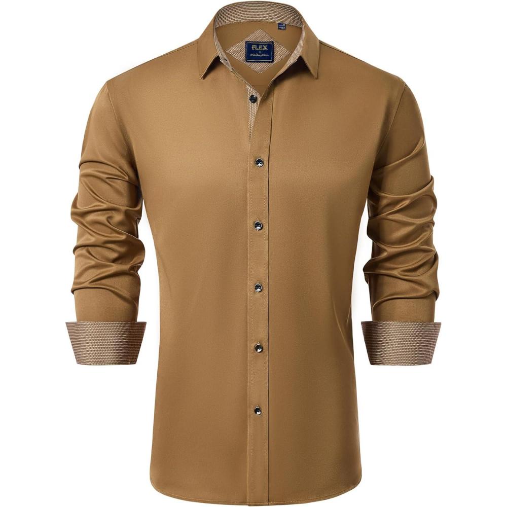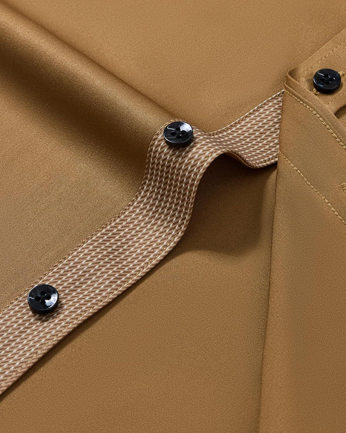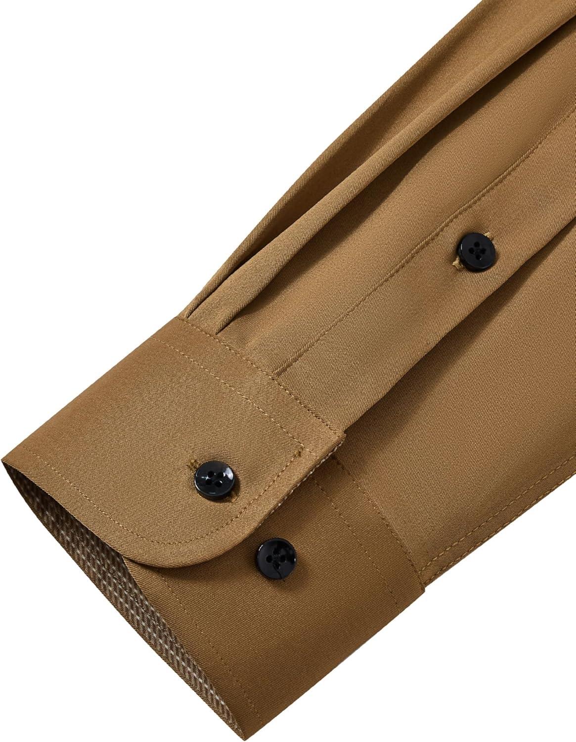 J.VER Men's Casual Long Sleeve Stretch Dress Shirt Wrinkle-Free Regular Fit Button Down Shirts(Earthen Brown)