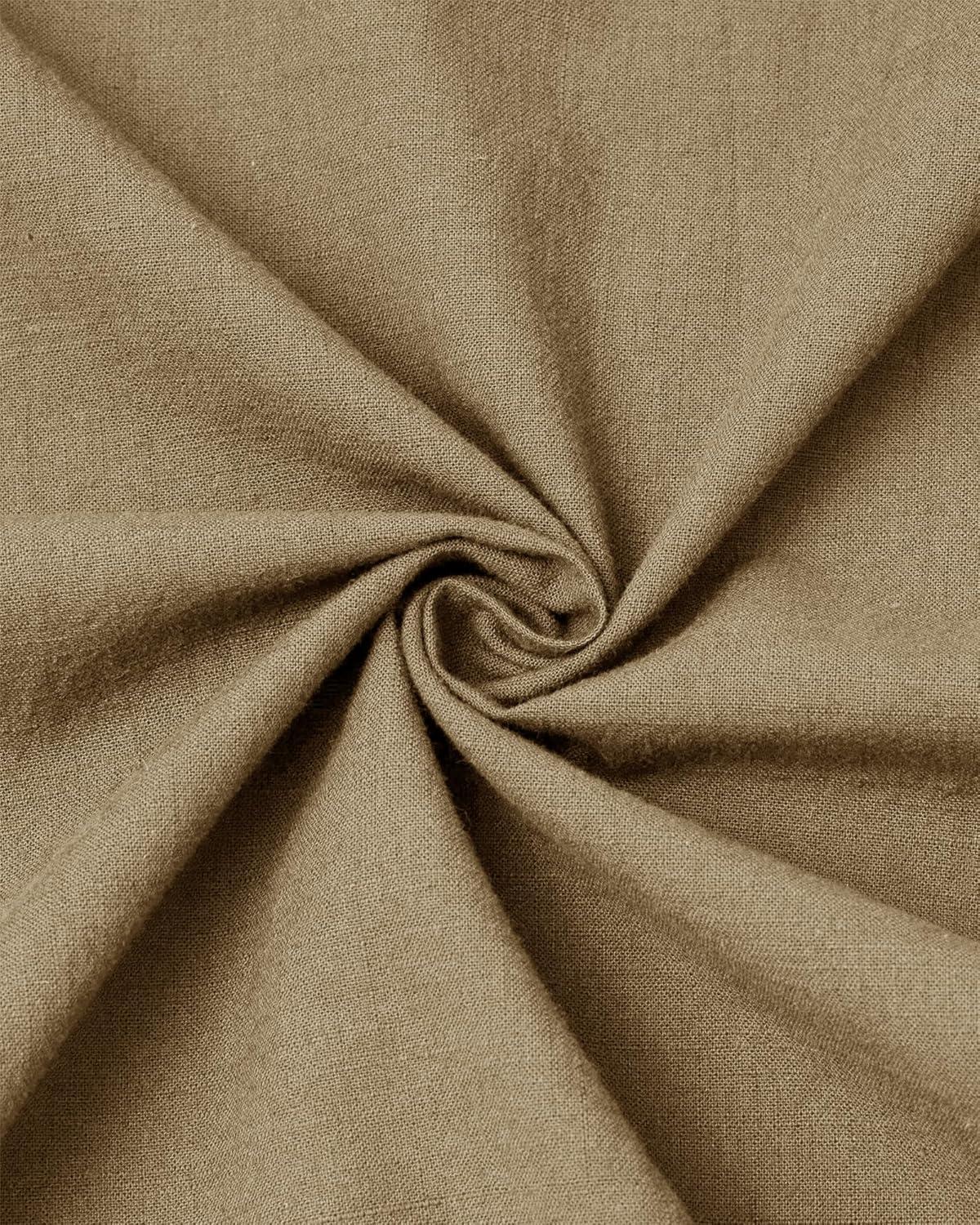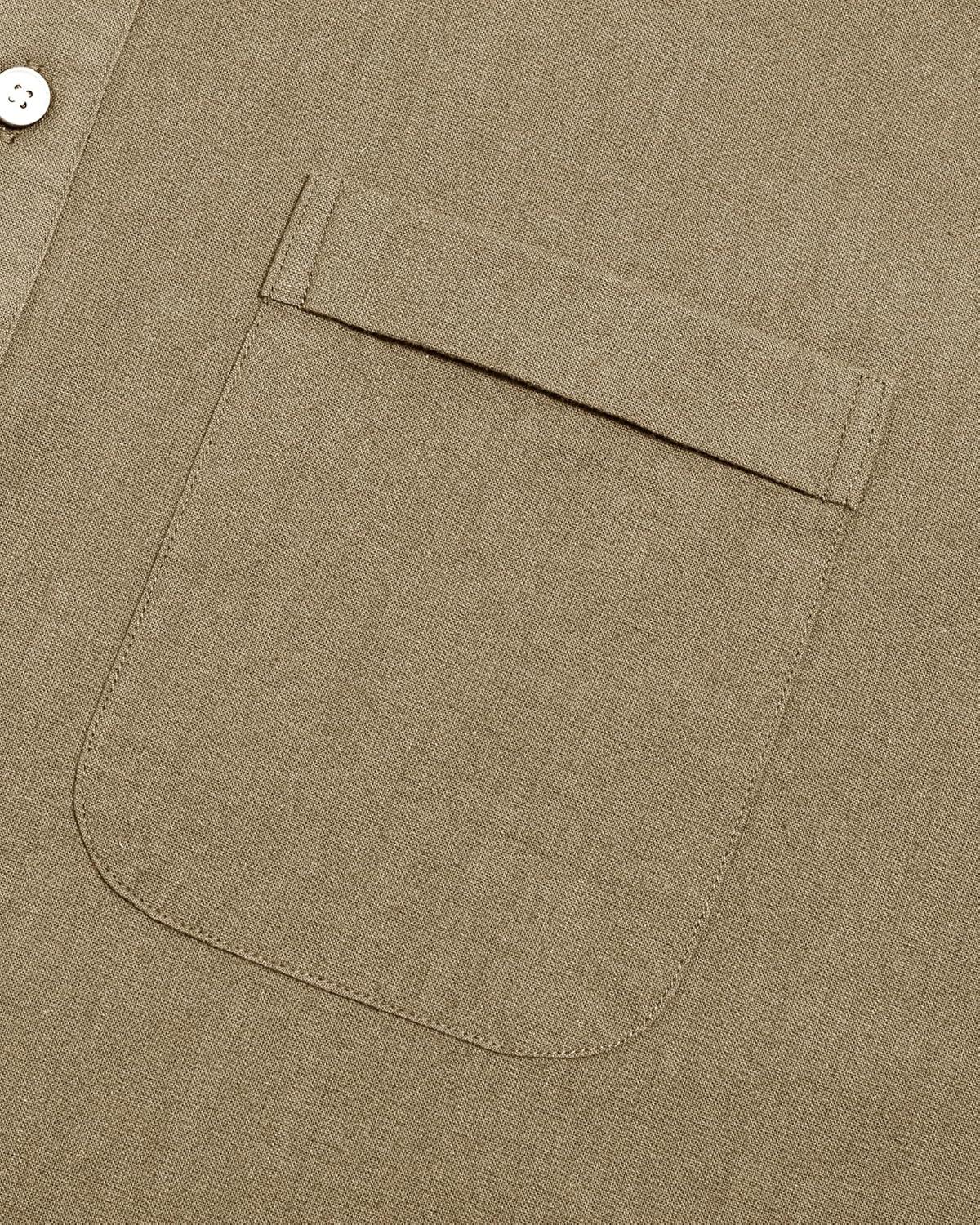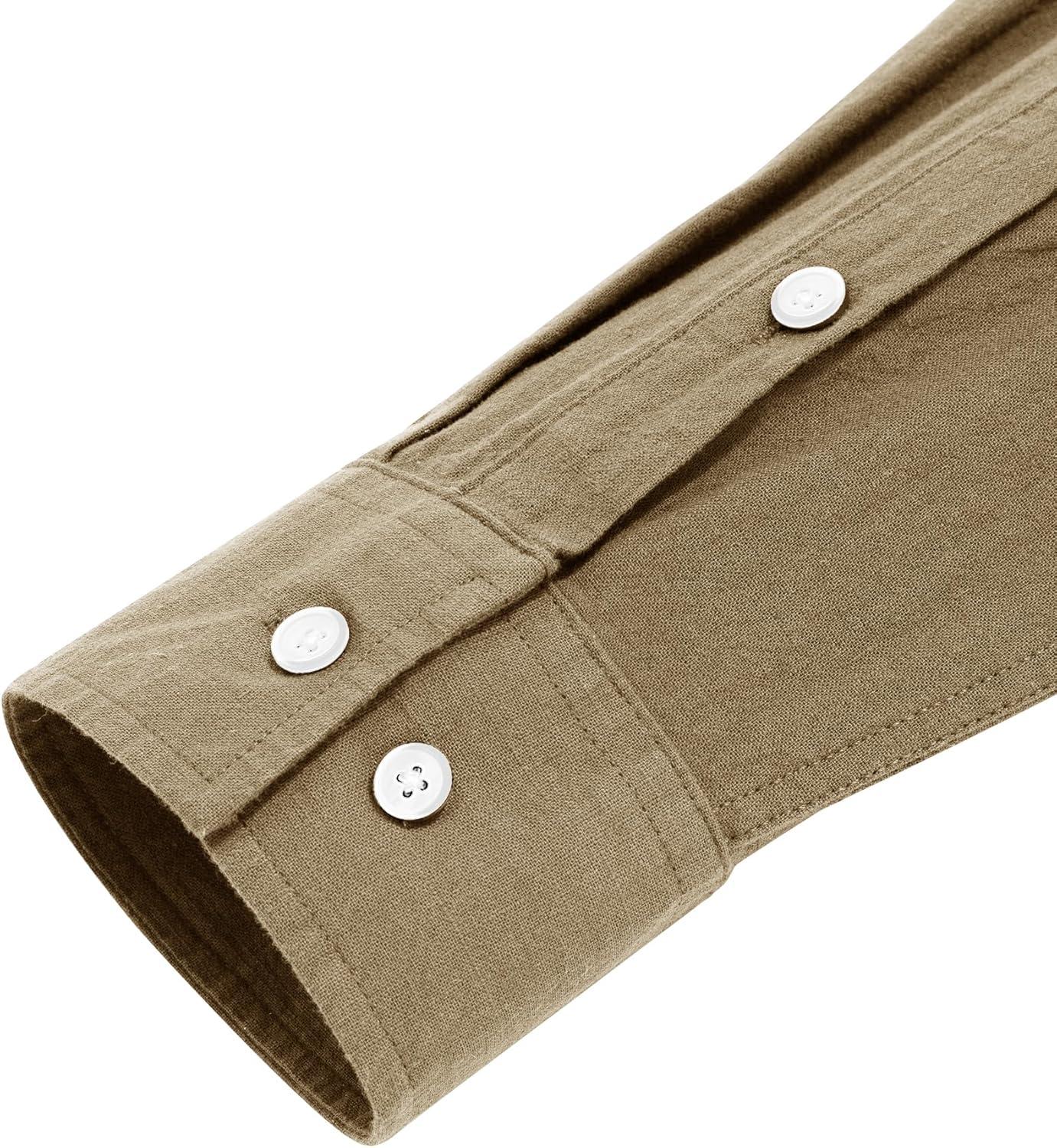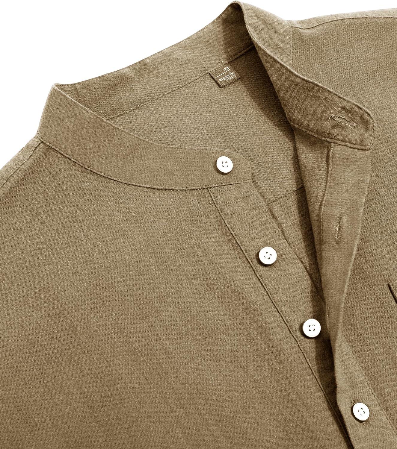J.VER Men's Cotton Linen Long Sleeve Shirts Casual Button Down Banded Collar Shirt Beach Summer Tops with Pocket(Dark Khaki)