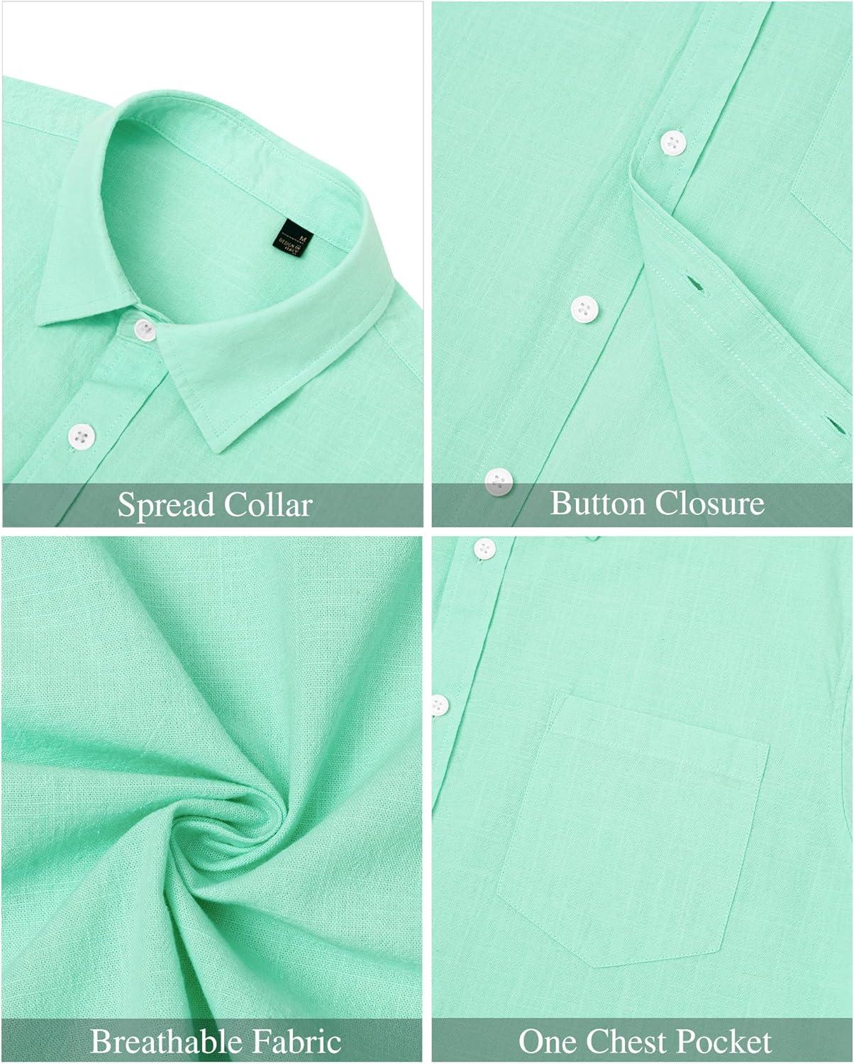 J.VER Men’s Cotton Linen Short Sleeve Shirts Casual Lightweight Button Down Shirts Vacation Beach Summer Tops with Pocket(Mint Green)