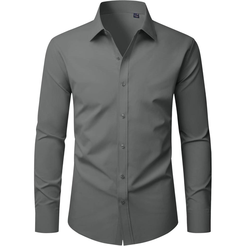 J.VER Mens Dress Shirts Long Sleeve Solid Formal Shirt Stretch Business Casual Wedding Button Down Shirts(Grey)