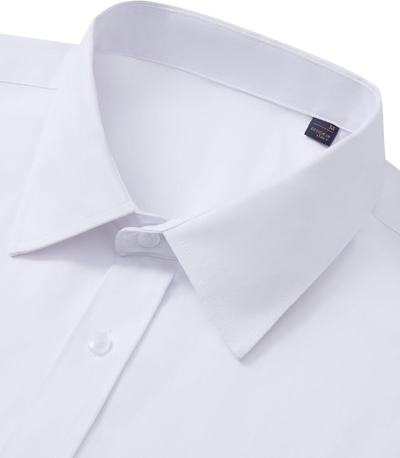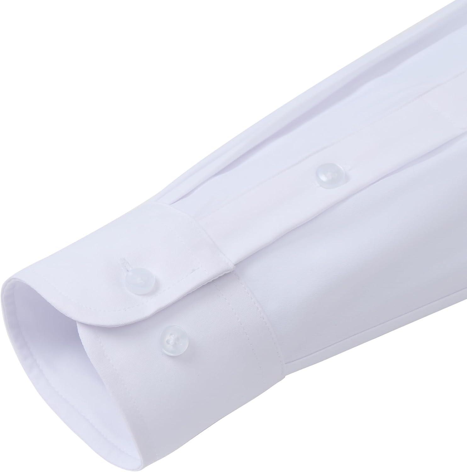 J.VER Mens Dress Shirts Long Sleeve Solid Formal Shirt Stretch Business Casual Wedding Button Down Shirts(White)