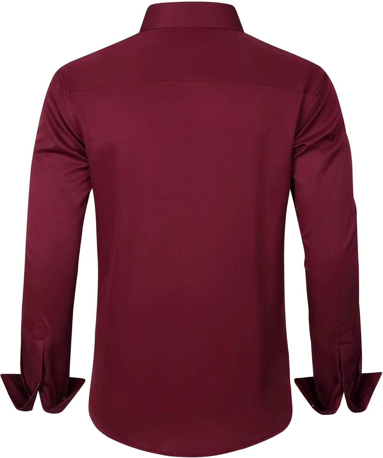 J.VER Men's Dress Shirts Solid Long Sleeve Stretch Wrinkle-Free Formal Shirt Business Casual Button Down Shirts(Burgundy)