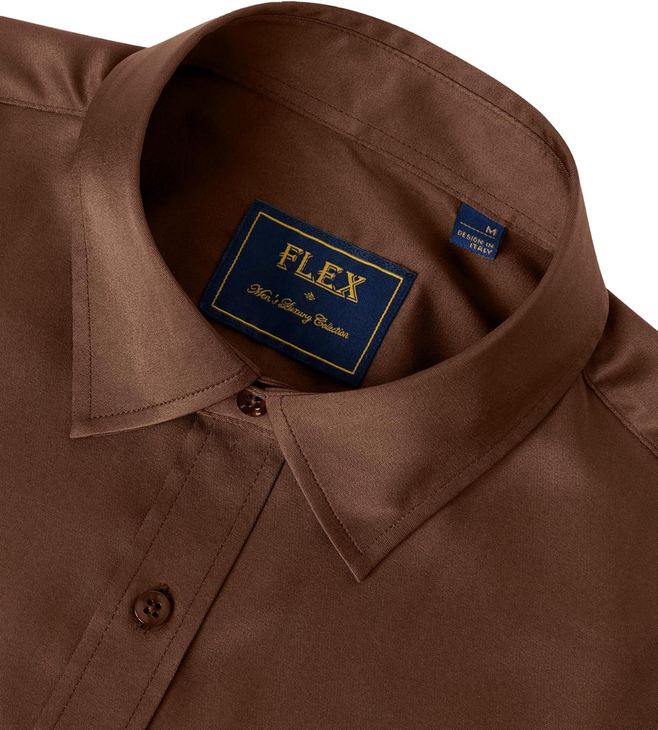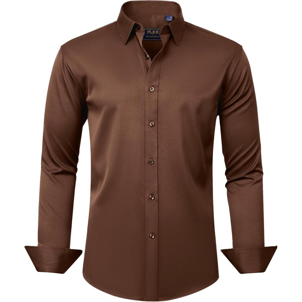 J.VER Men’s Dress Shirts Solid Long Sleeve Stretch Wrinkle-Free Formal Shirt Business Casual Button Down Shirts(Chocolate Brown)