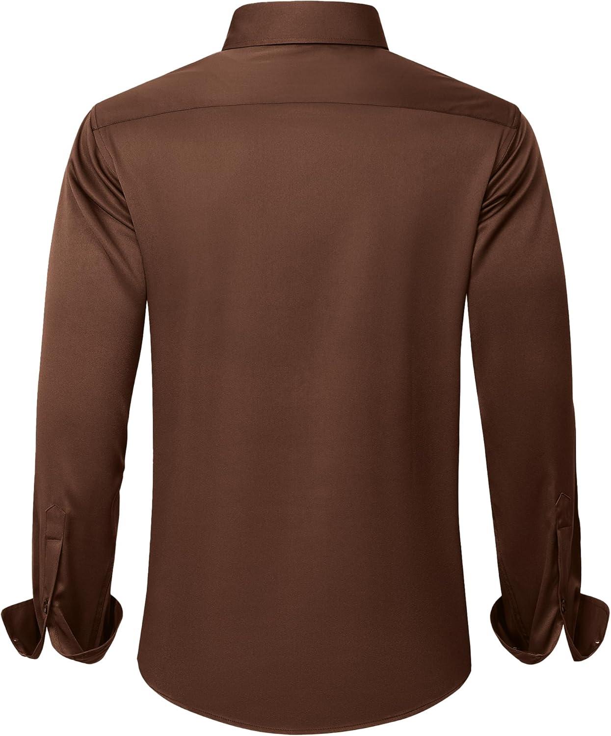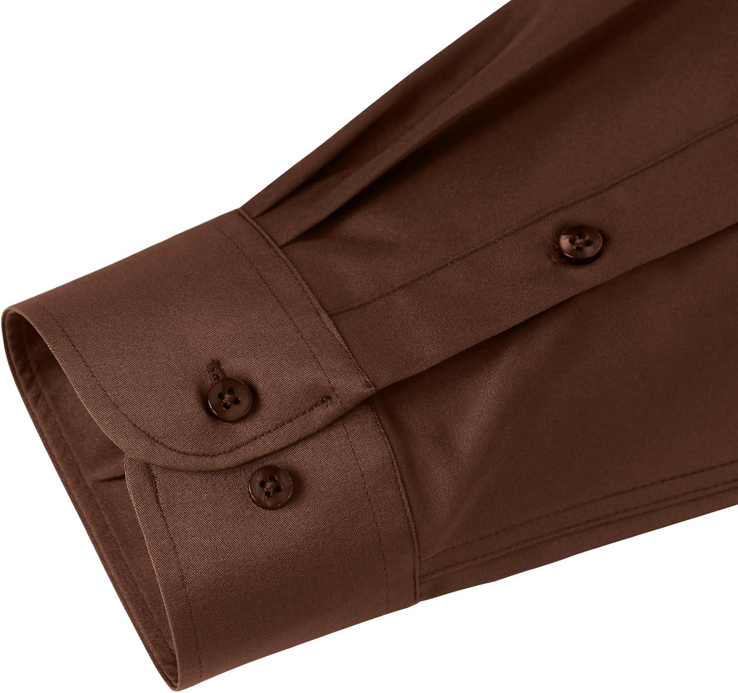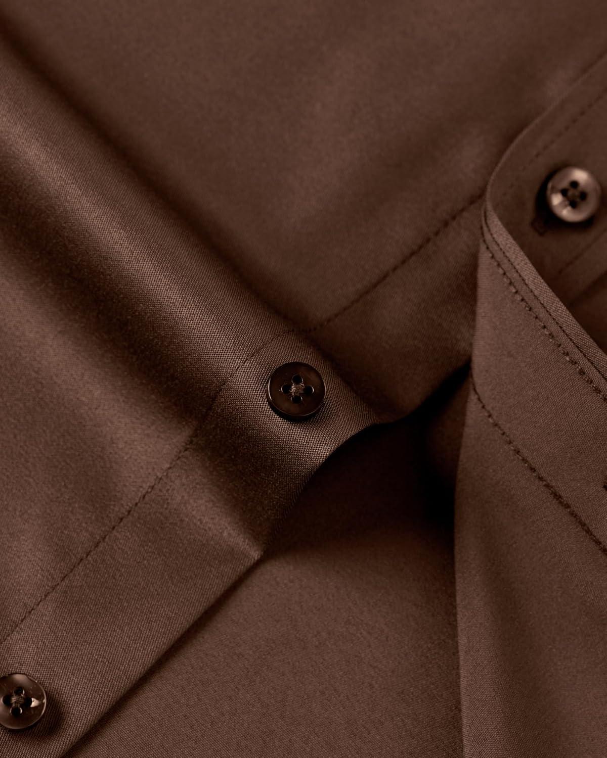 J.VER Men's Dress Shirts Solid Long Sleeve Stretch Wrinkle-Free Formal Shirt Business Casual Button Down Shirts(Chocolate Brown)